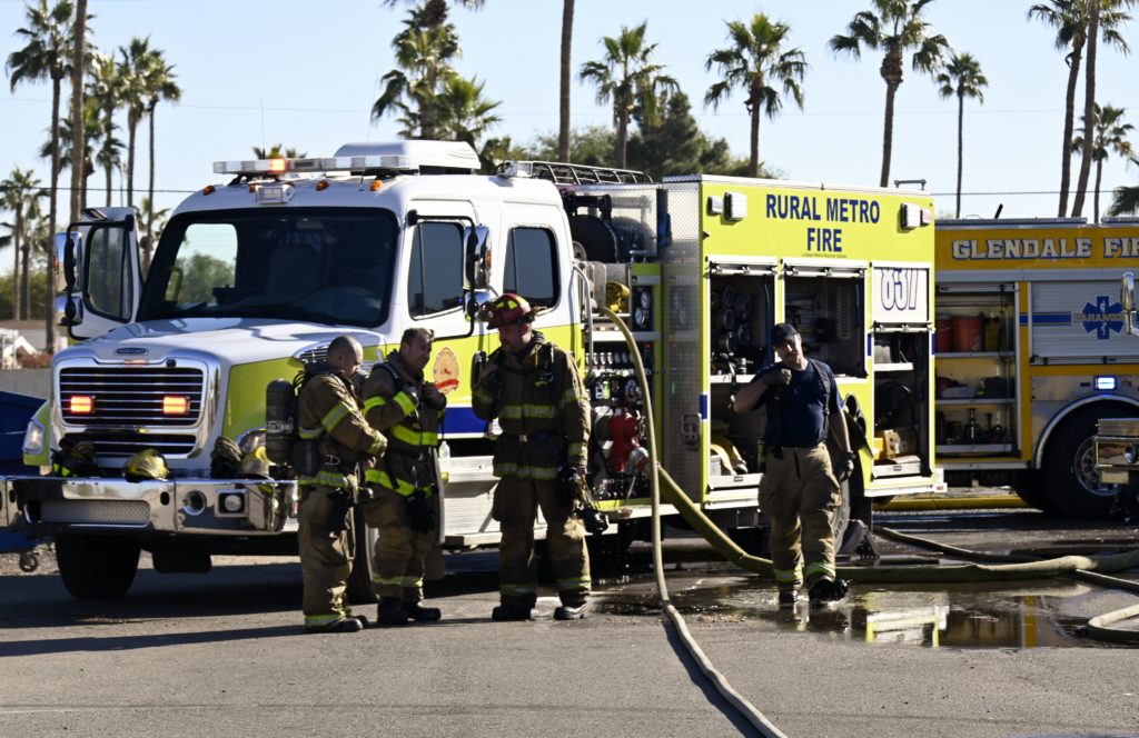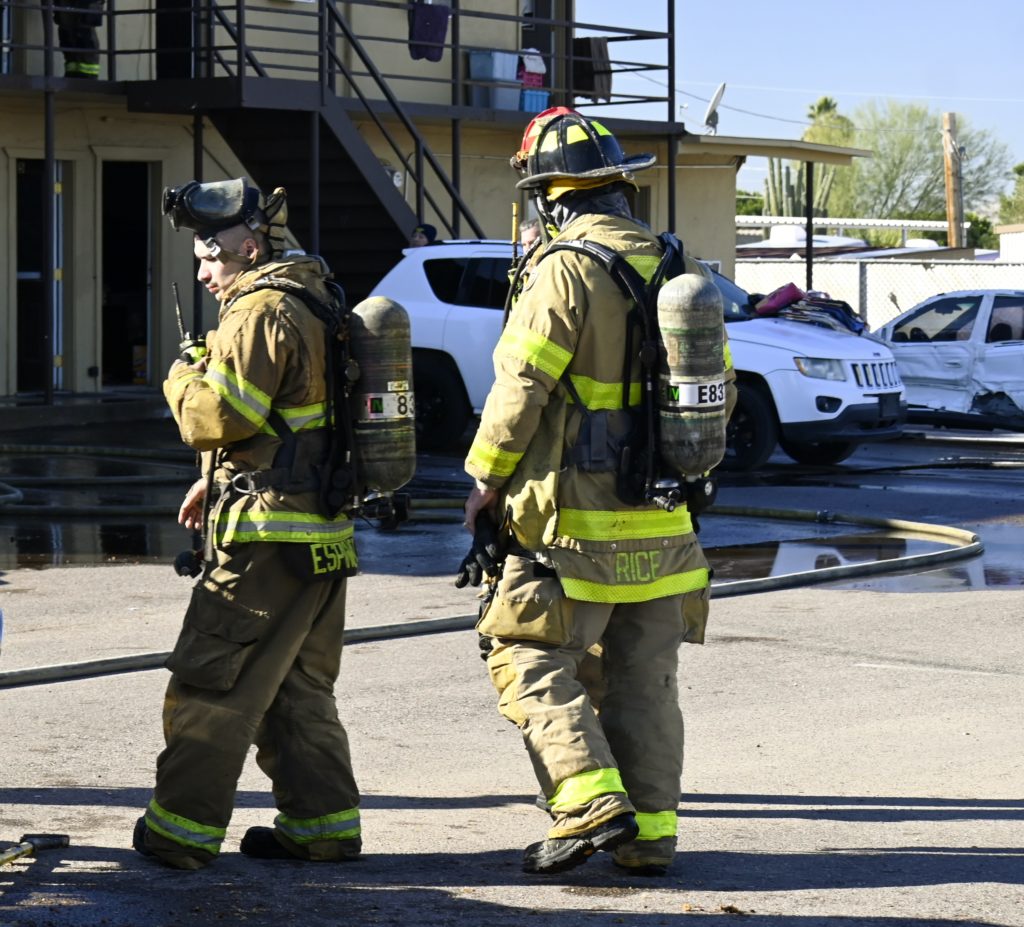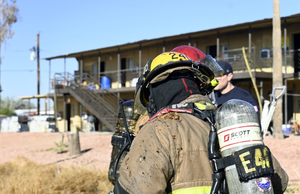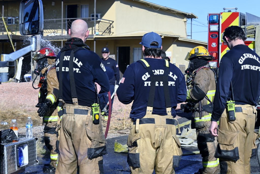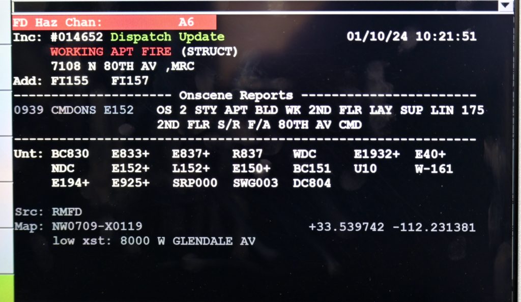 1/10/24 WF County Glendale Ave 80th Ave Two Story Apt House Fire On The Second Fl In Multiple Apt’s Ext To The Attic Mutual Aid Was Called Rural Metro Glendale Peoria Phoenix working