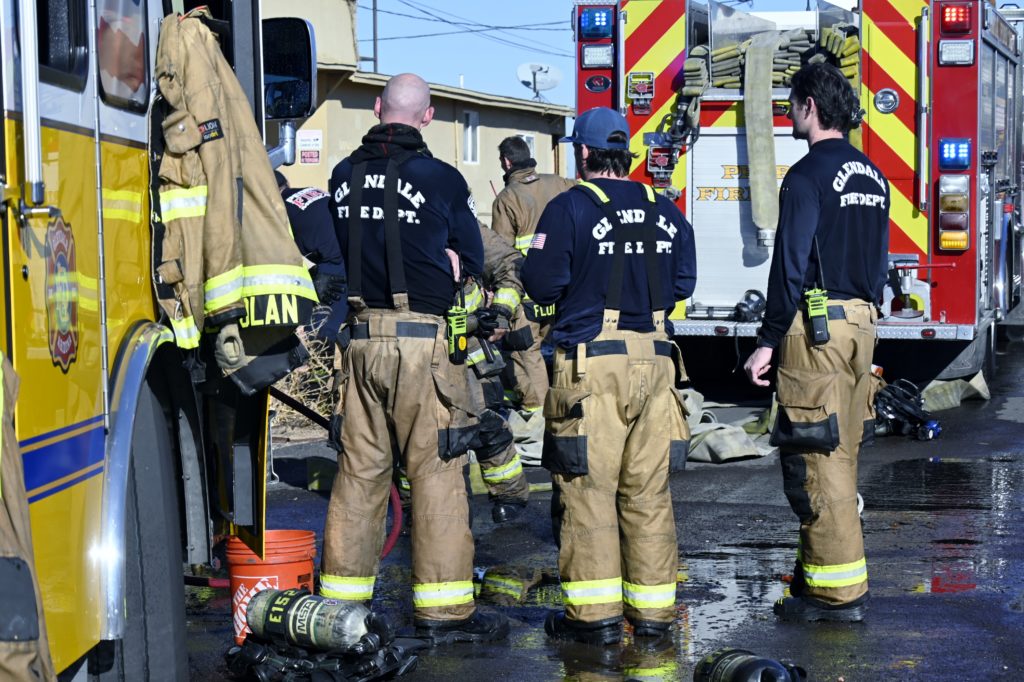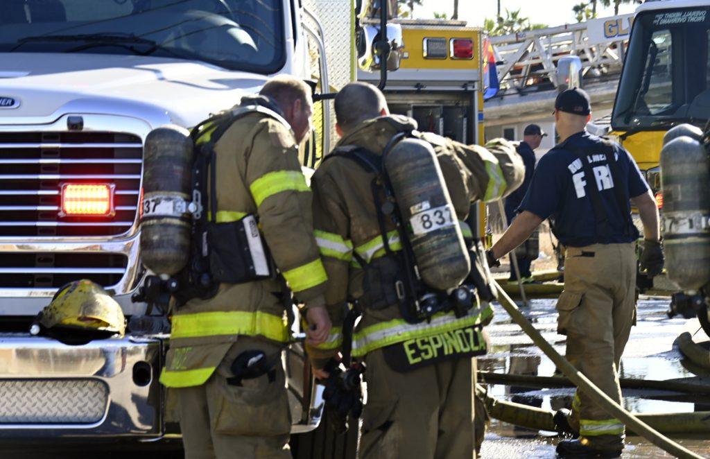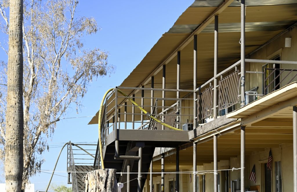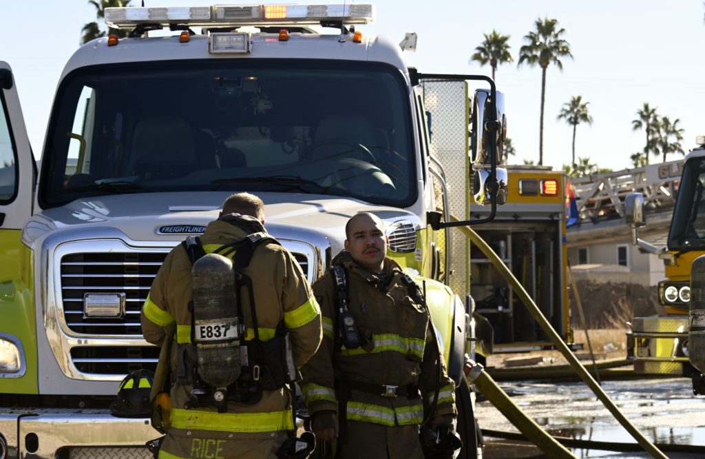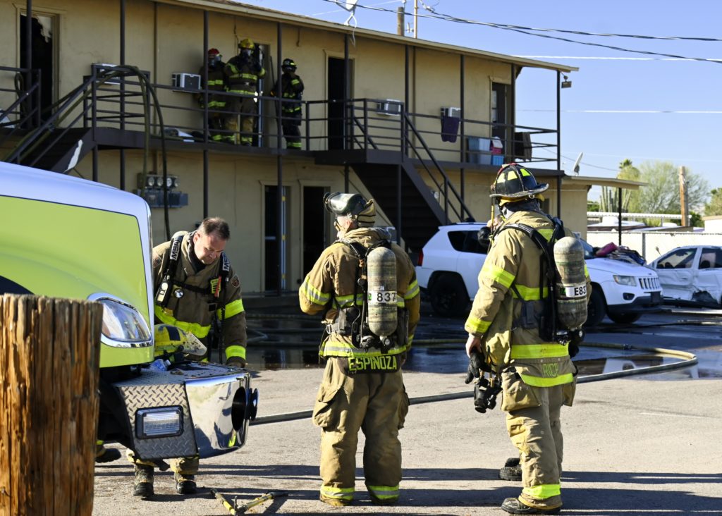 1/10/24 WF County Glendale Ave 80th Ave Two Story Apt House Fire On The Second Fl In Multiple Apt’s Ext To The Attic Mutual Aid Was Called Rural Metro Glendale Peoria Phoenix working