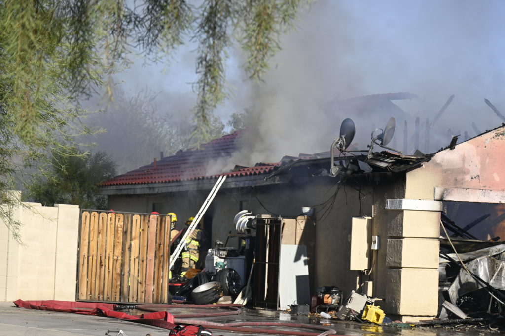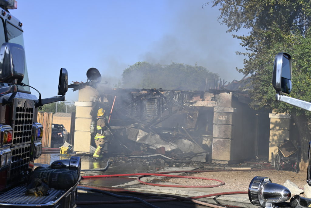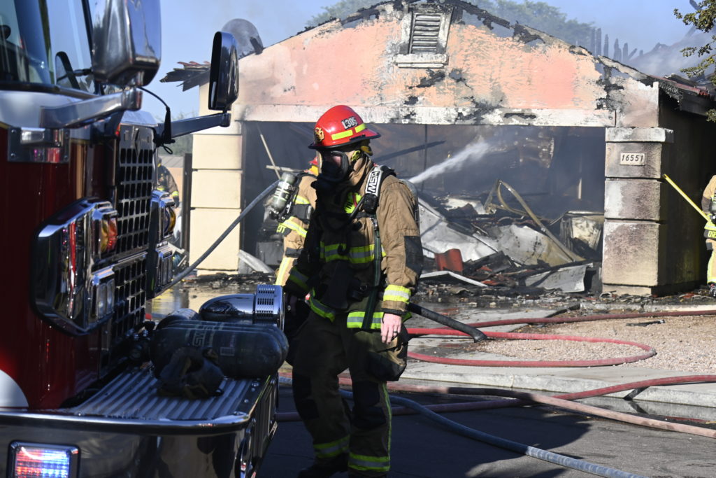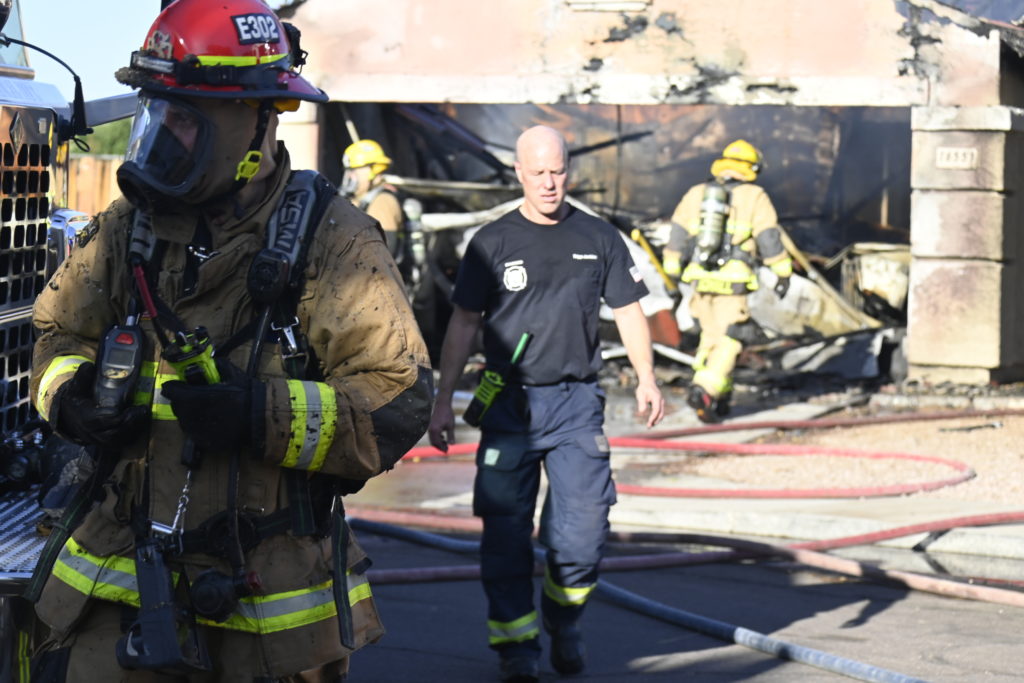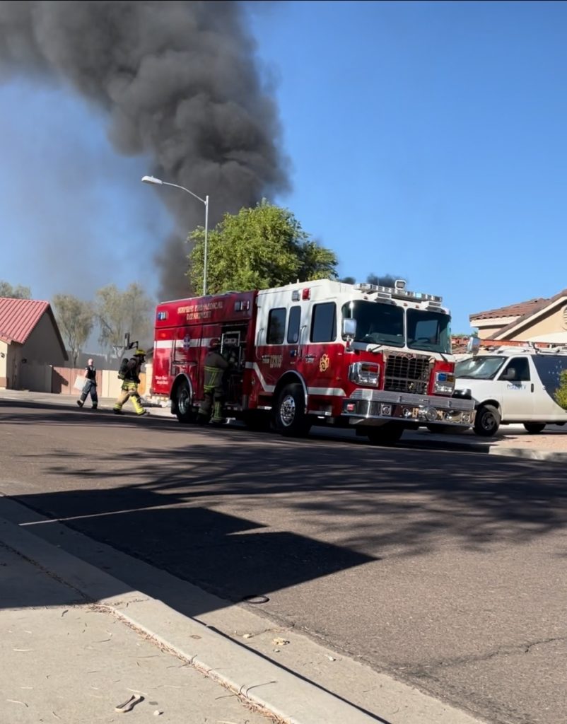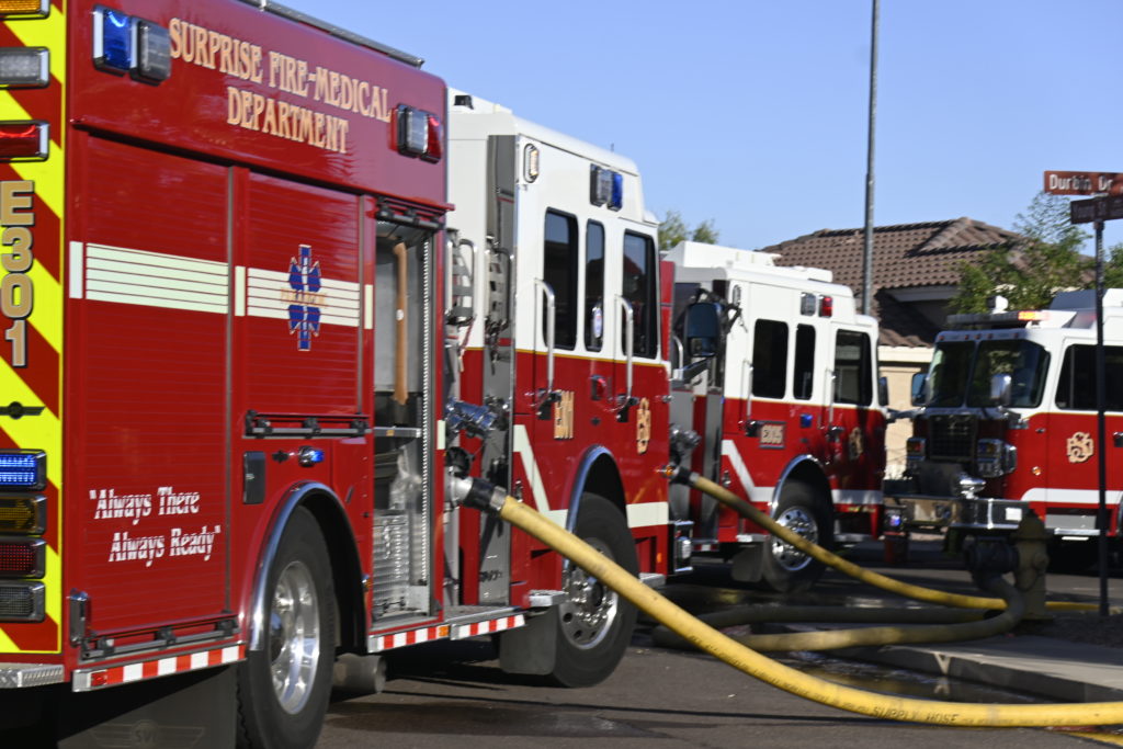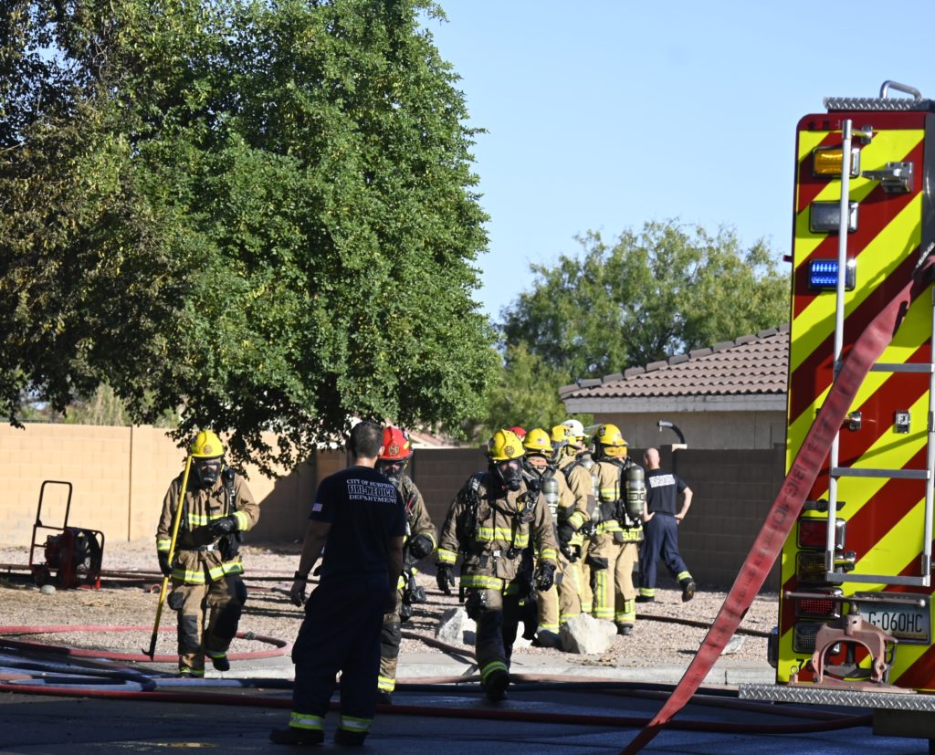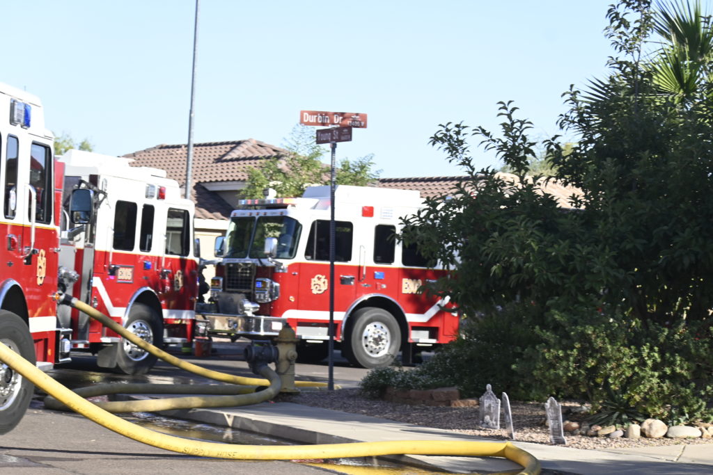 10/14/23 WF House Fire Surprise Young St Durbin Dr Started In The Garage Heavy Ext Into The House And Attic Units Went defensive Roof Collapse Surprise Sun City El Mirage Glendale AzFireMed Working