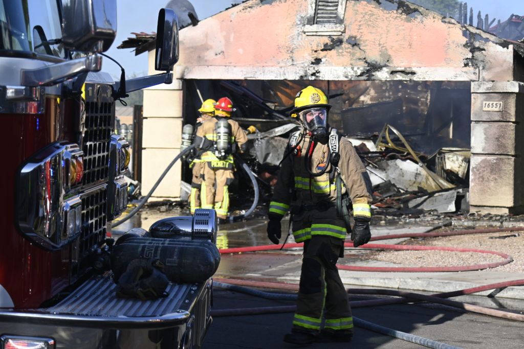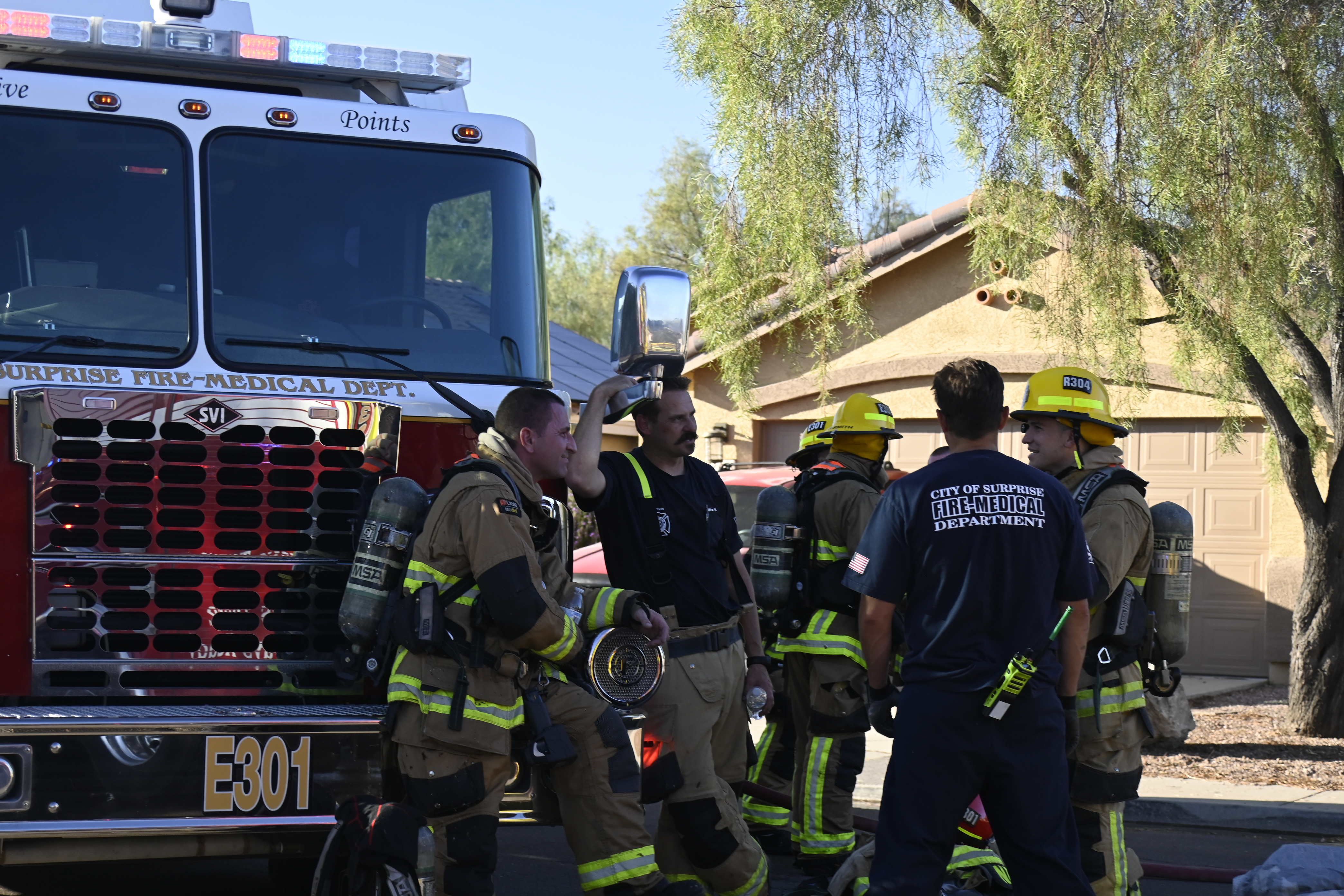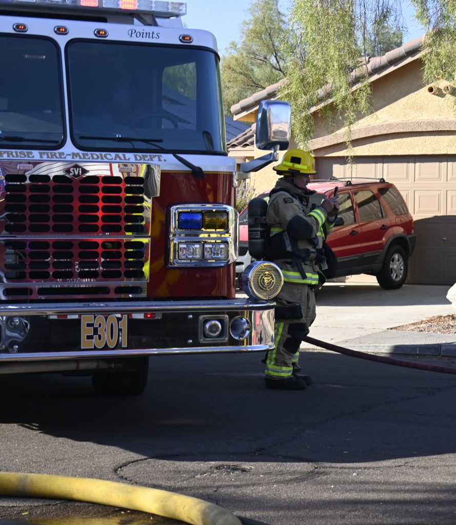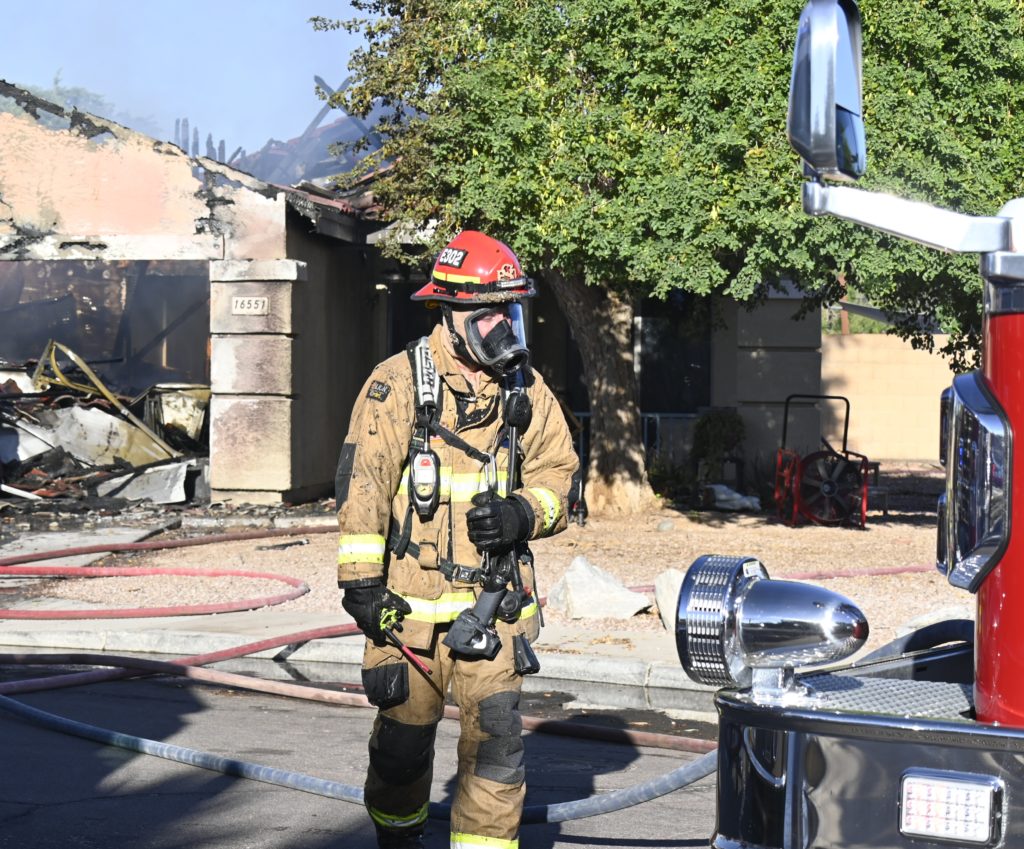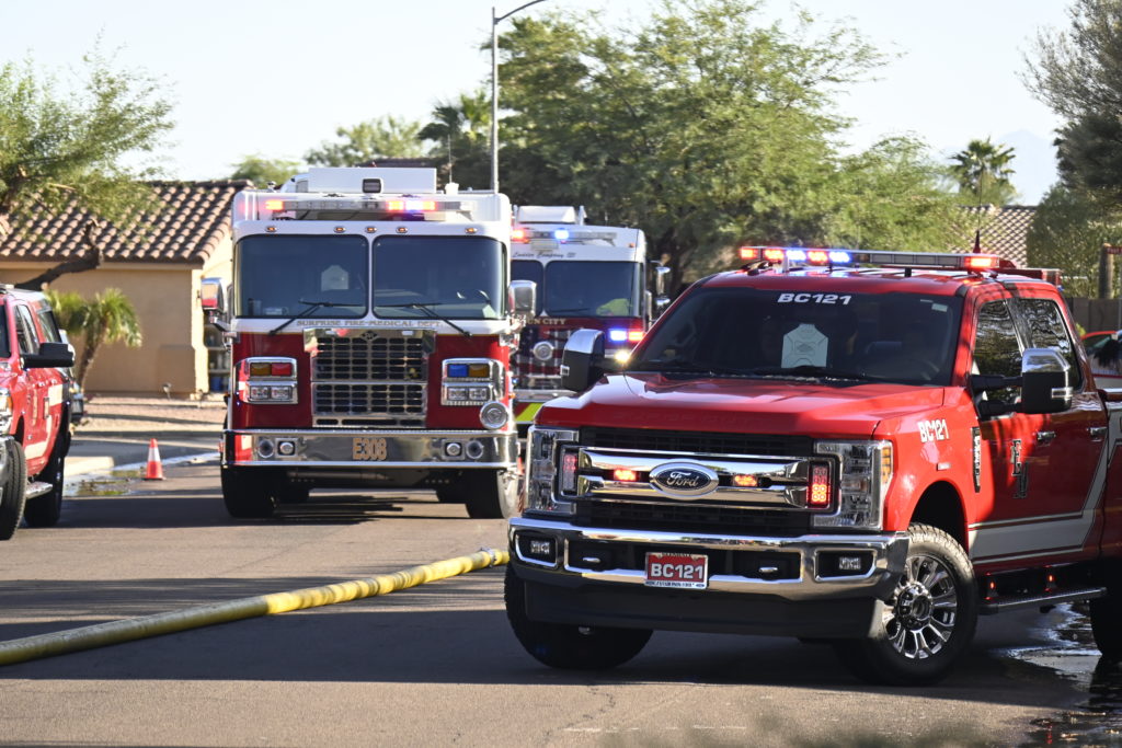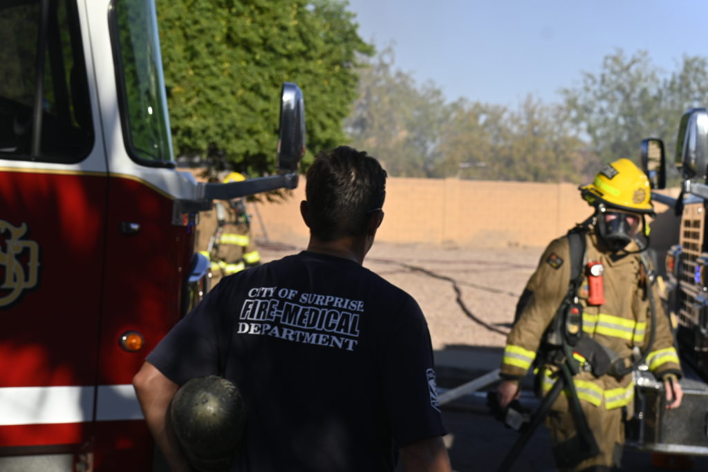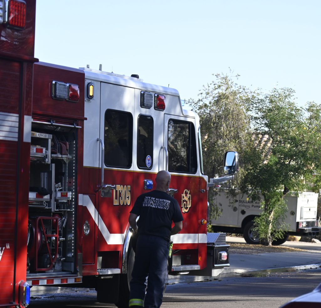10/14/23 WF House Fire Surprise Young St Durbin Dr Started In The Garage Heavy Ext Into The House And Attic Units Went defensive Roof Collapse Surprise Sun City El Mirage Glendale AzFireMed Working