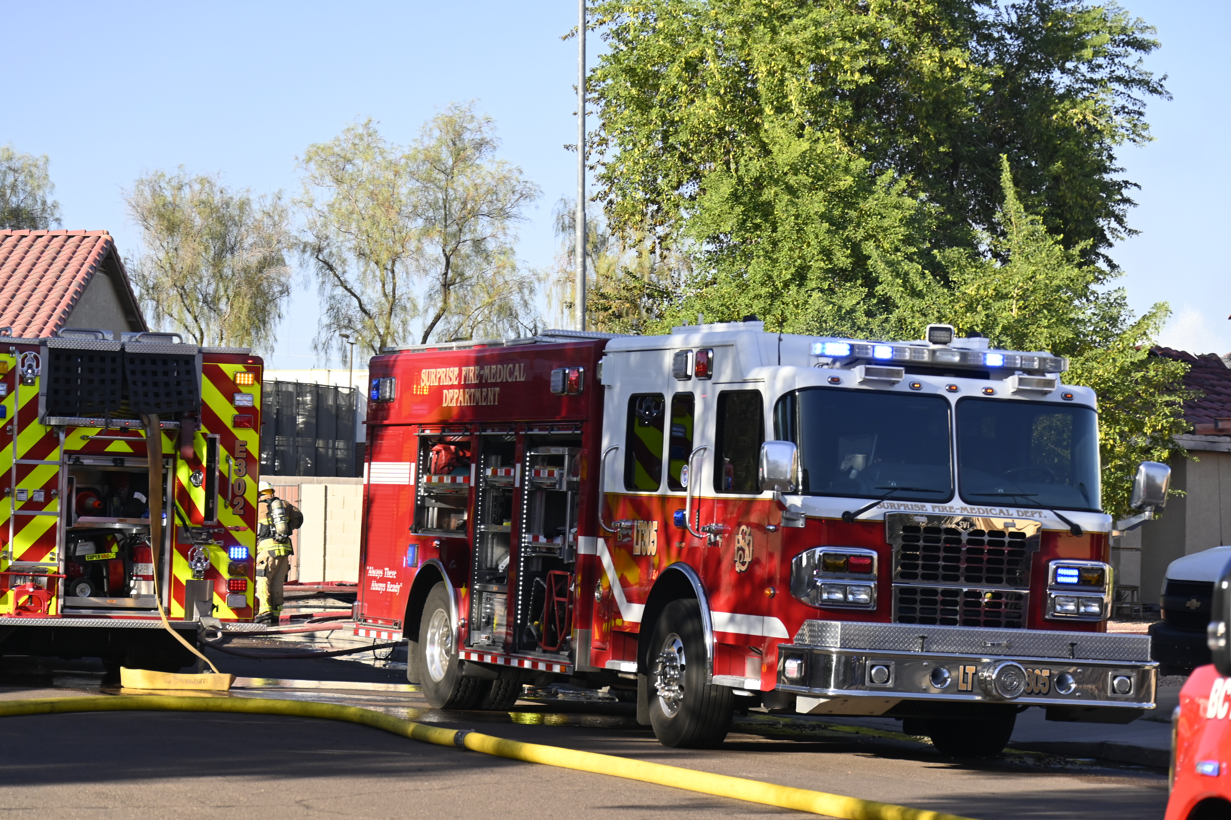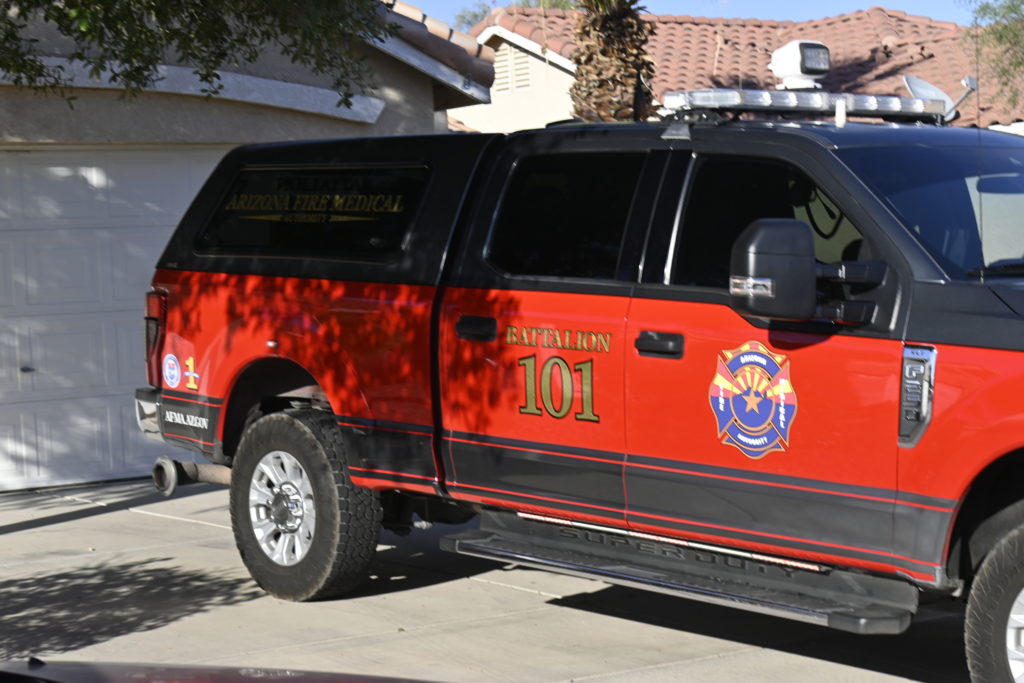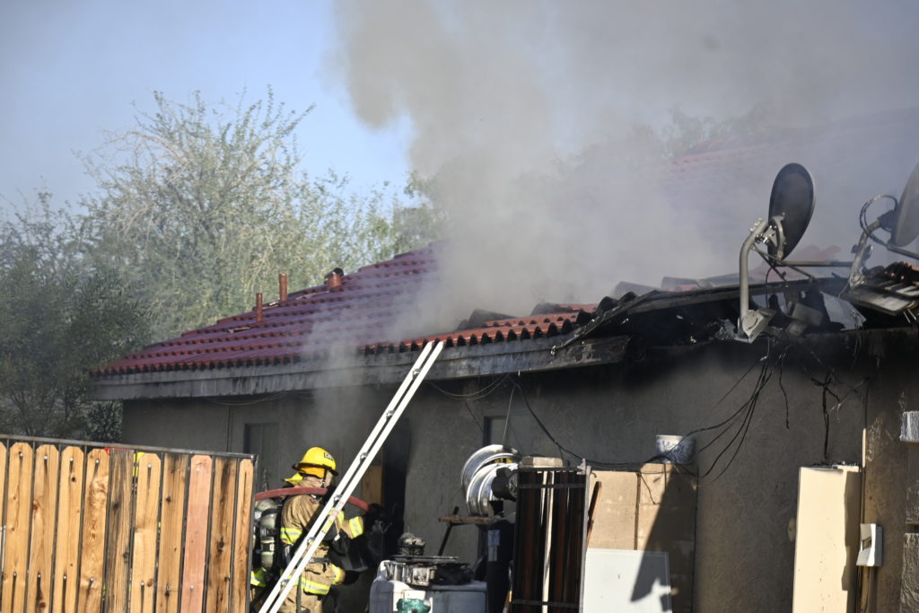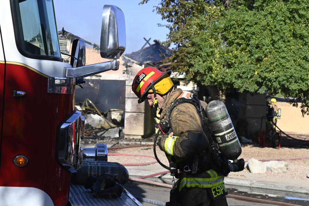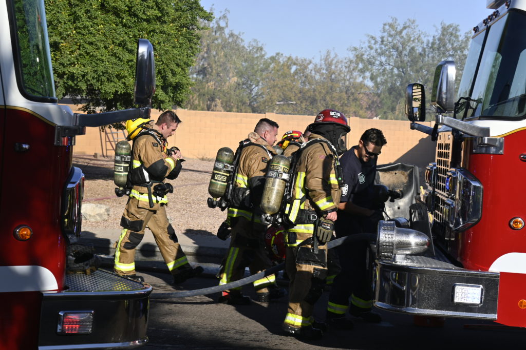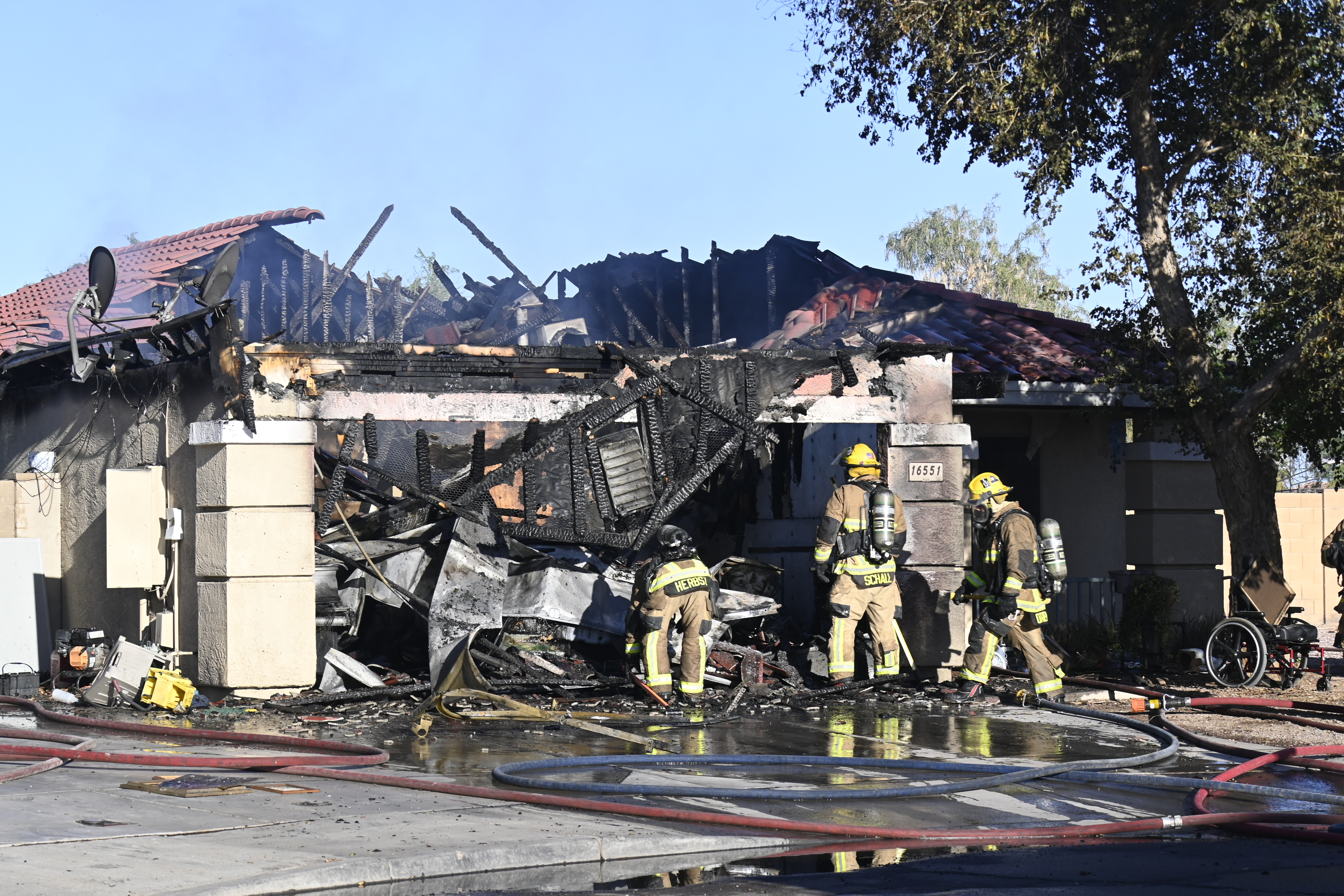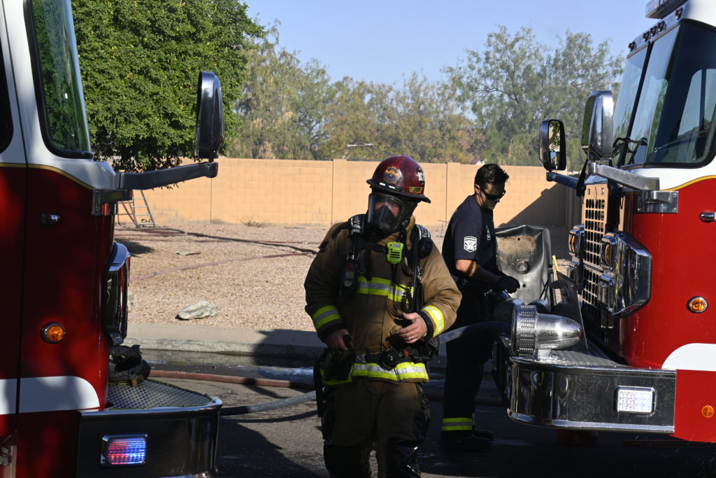 10/14/23 WF House Fire Surprise Young St Durbin Dr Started In The Garage Heavy Ext Into The House And Attic Units Went defensive Roof Collapse Surprise Sun City El Mirage Glendale AzFireMed Working