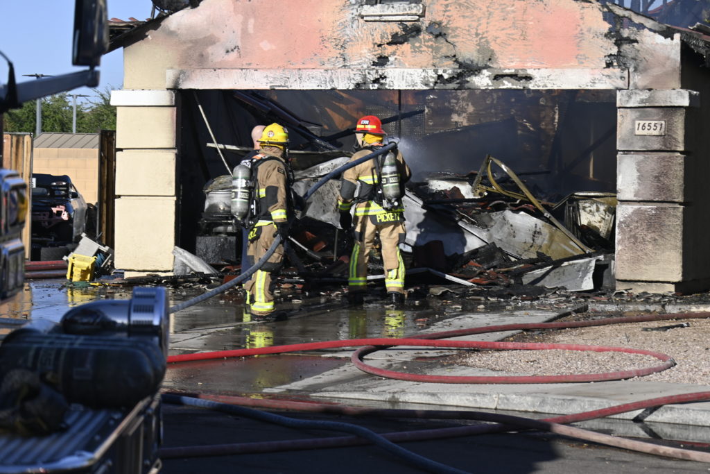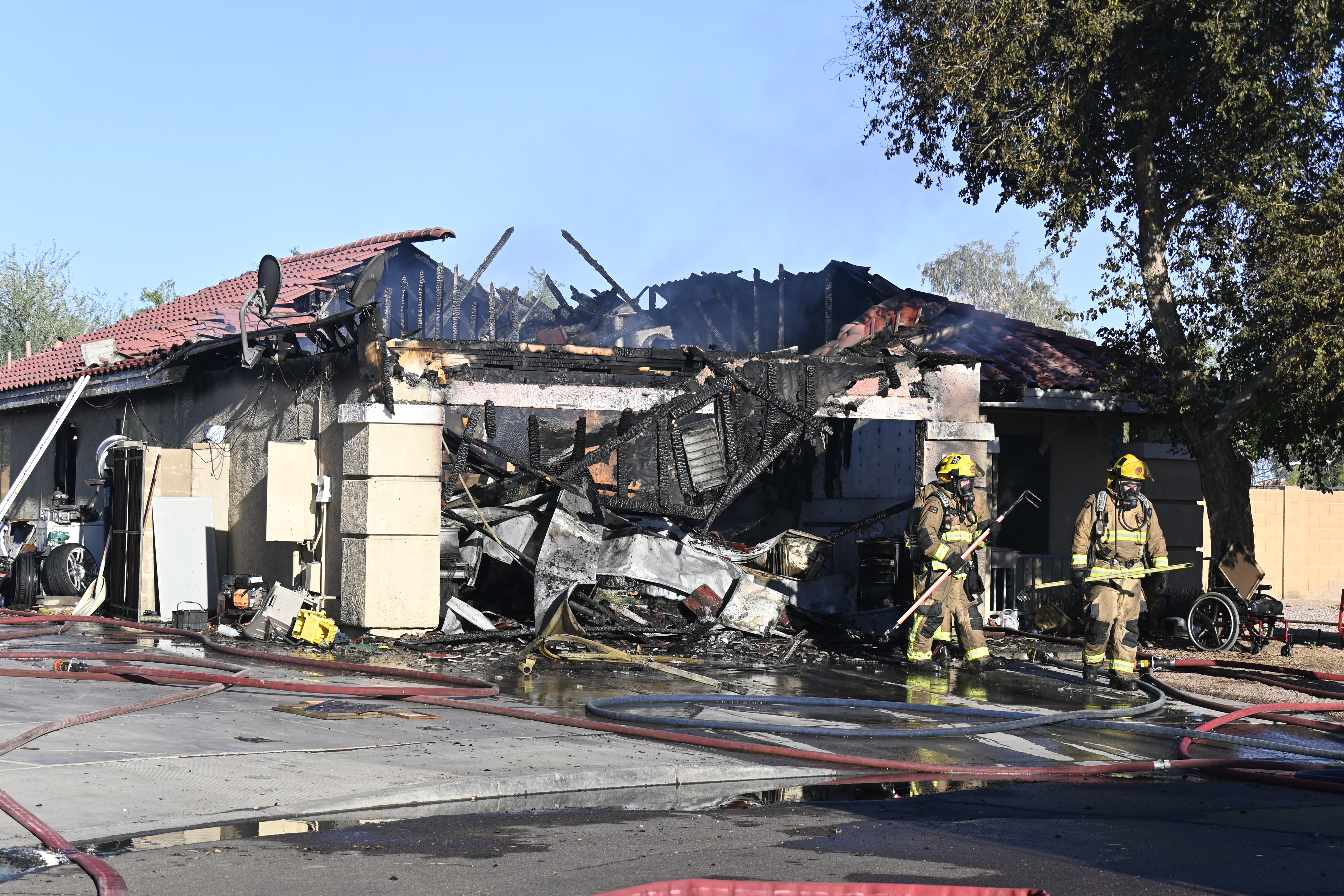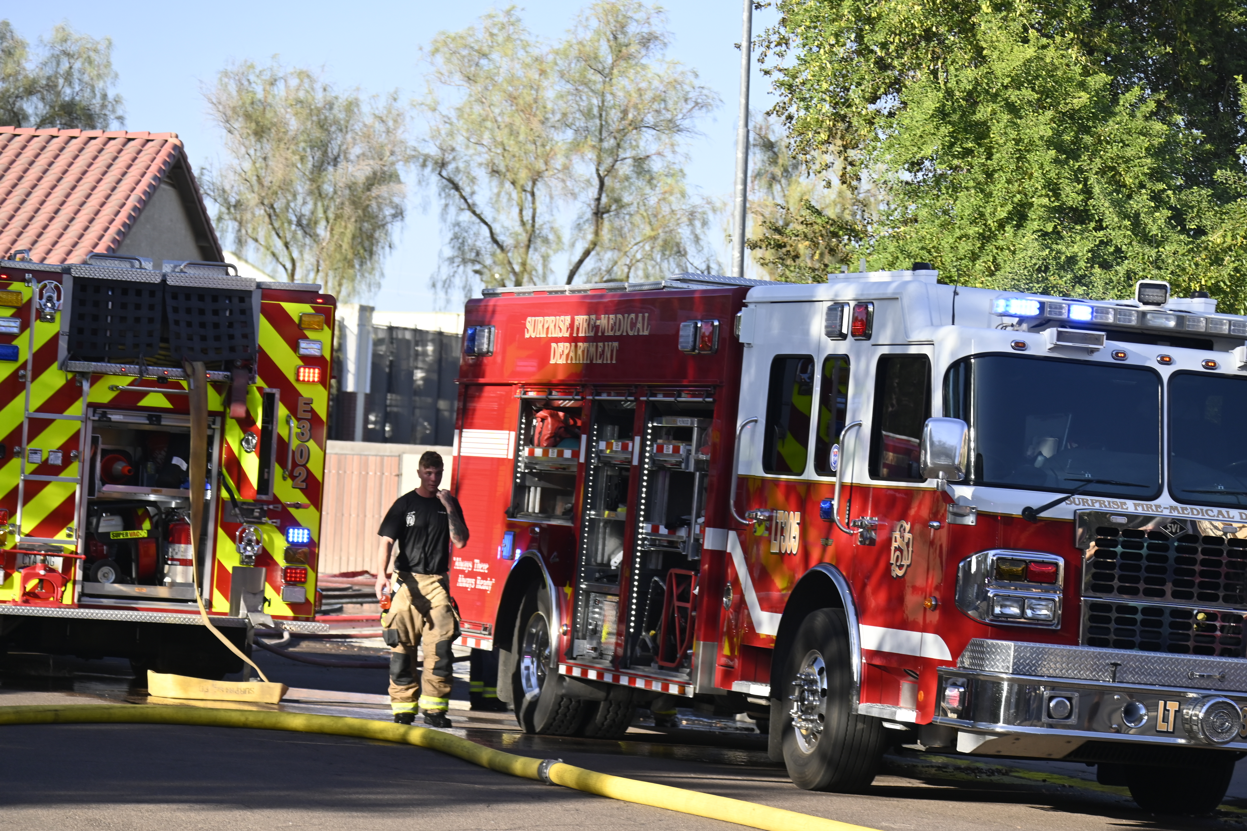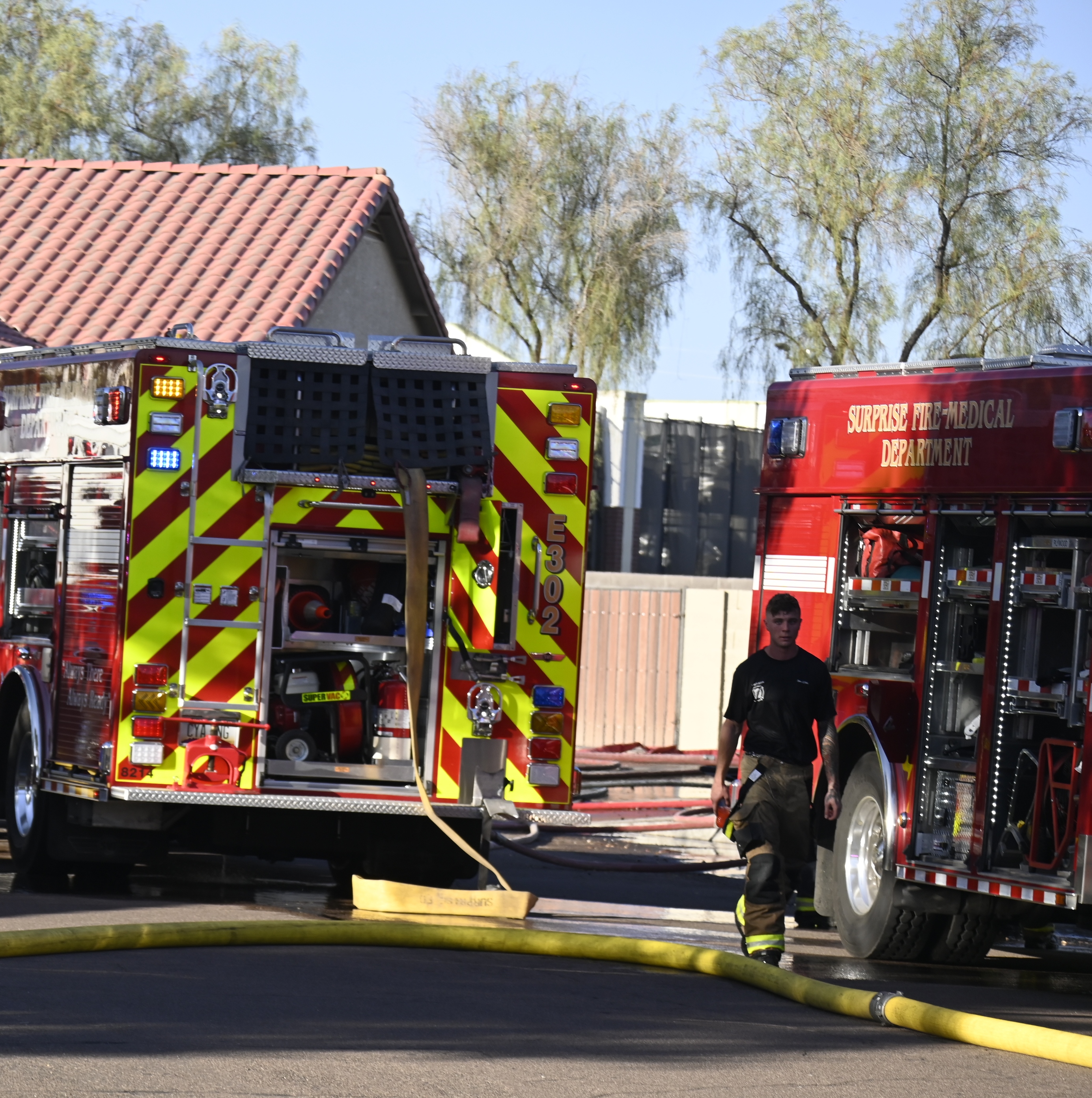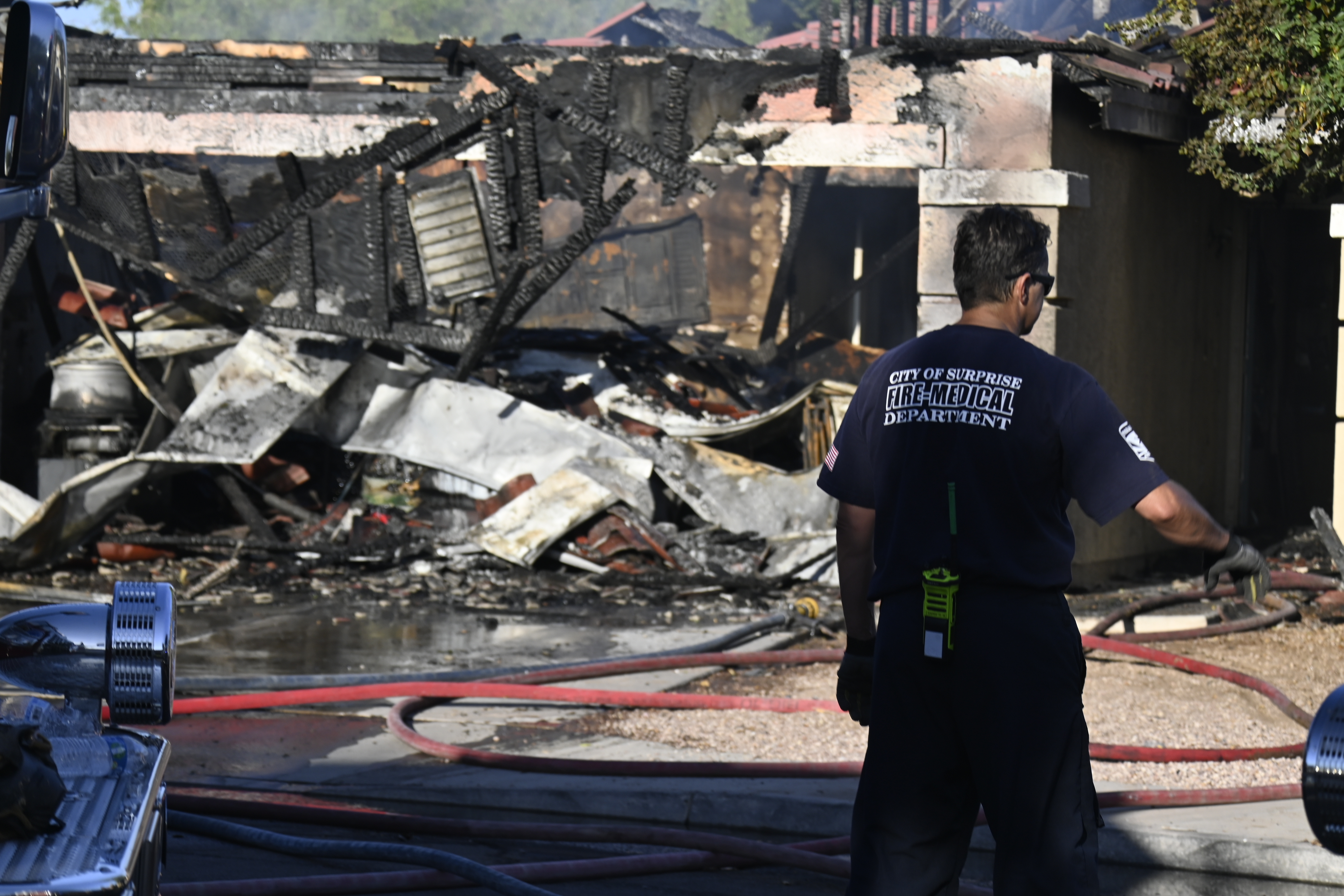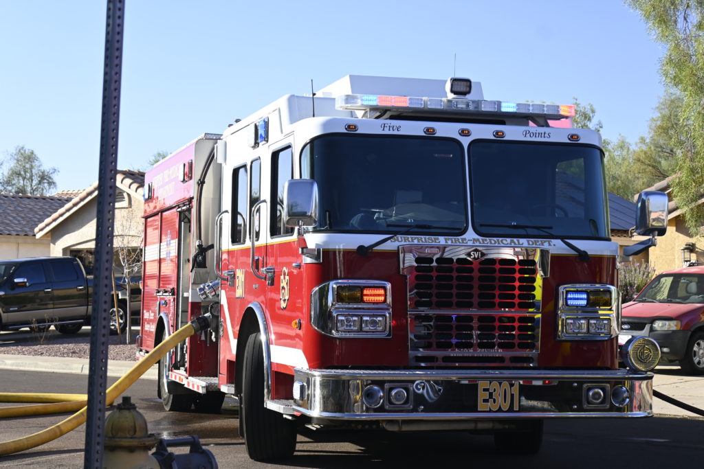 10/14/23 WF House Fire Surprise Young St Durbin Dr Started In The Garage Heavy Ext Into The House And Attic Units Went defensive Roof Collapse Surprise Sun City El Mirage Glendale AzFireMed Working