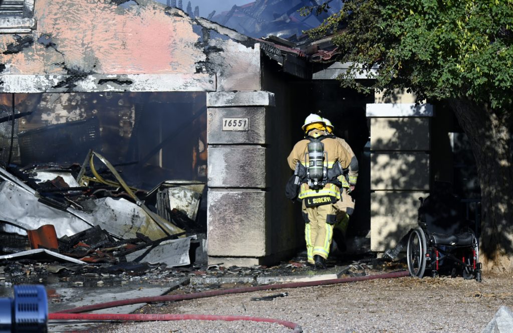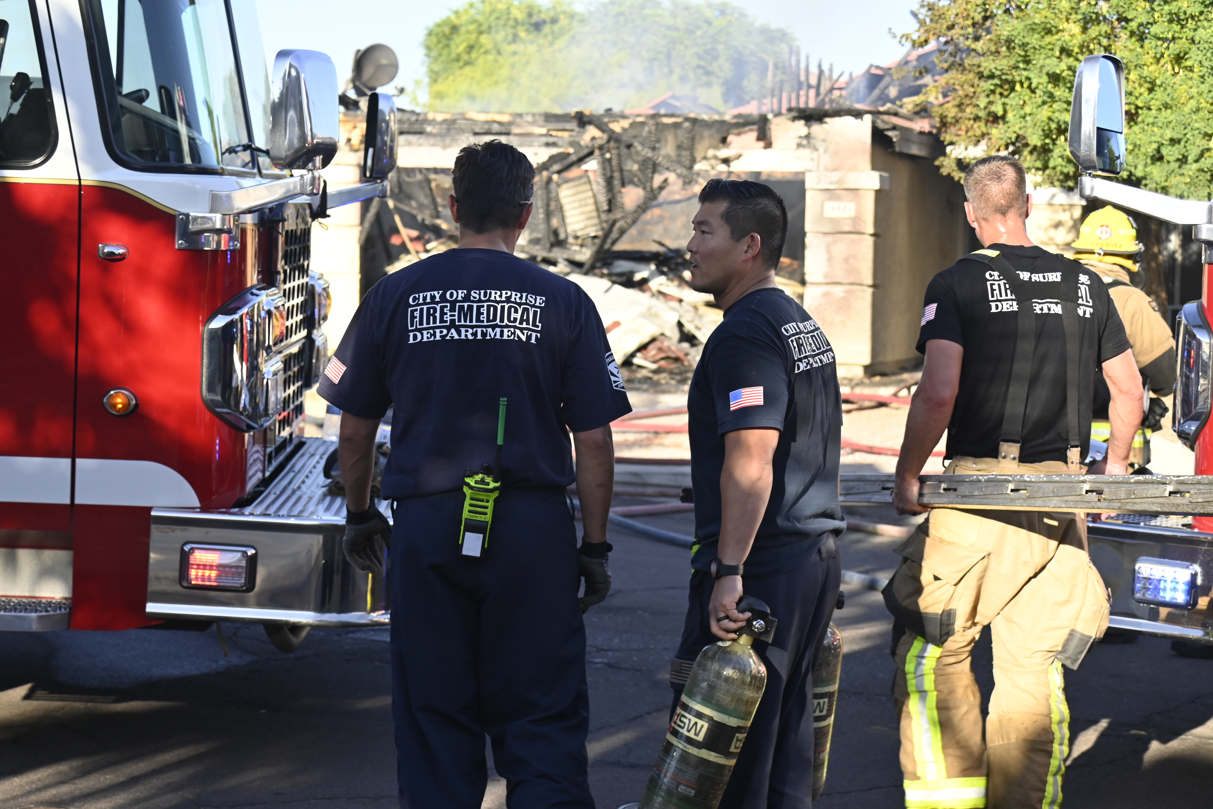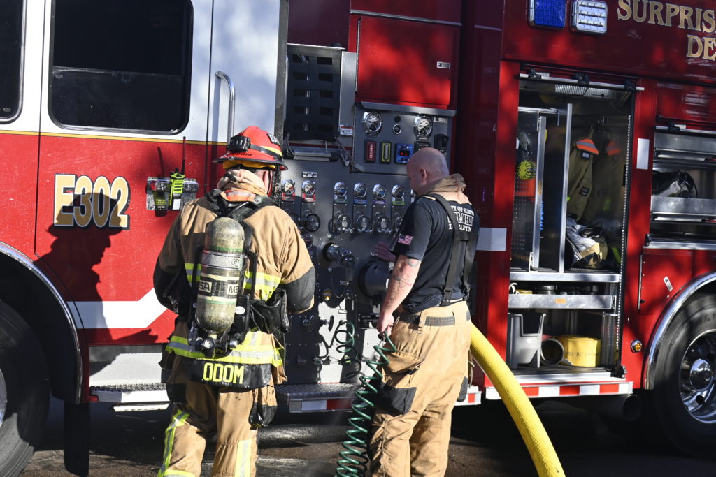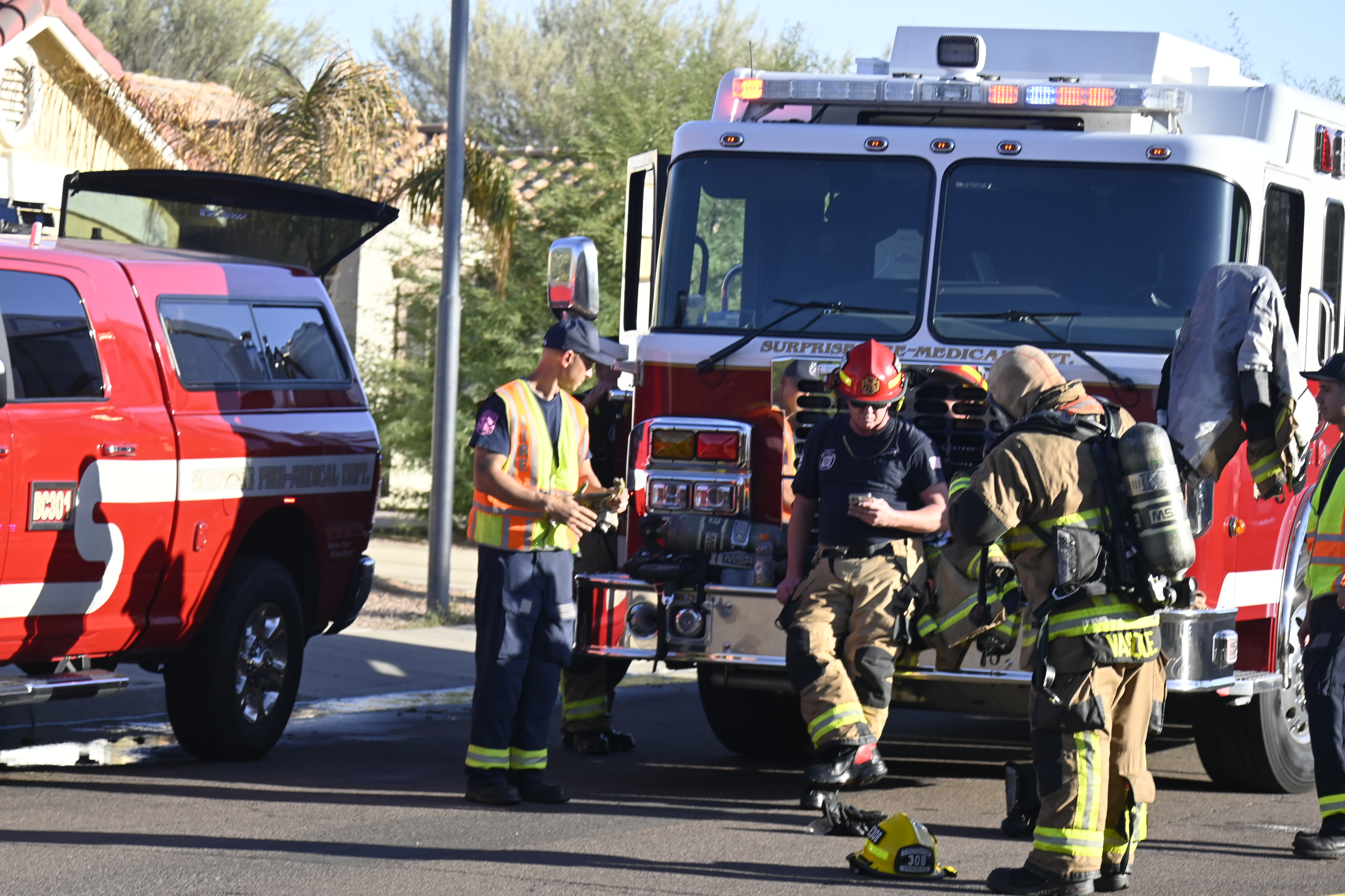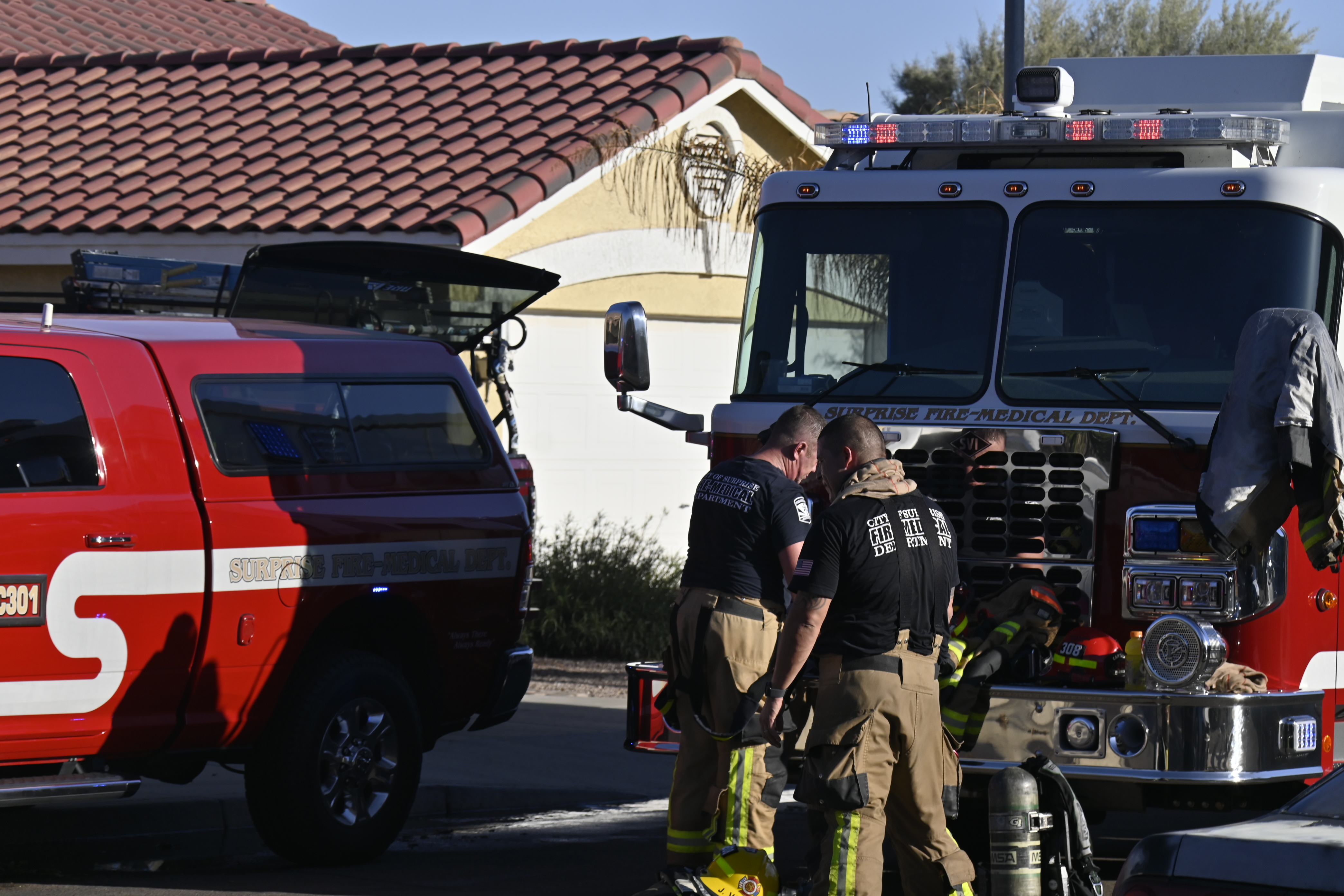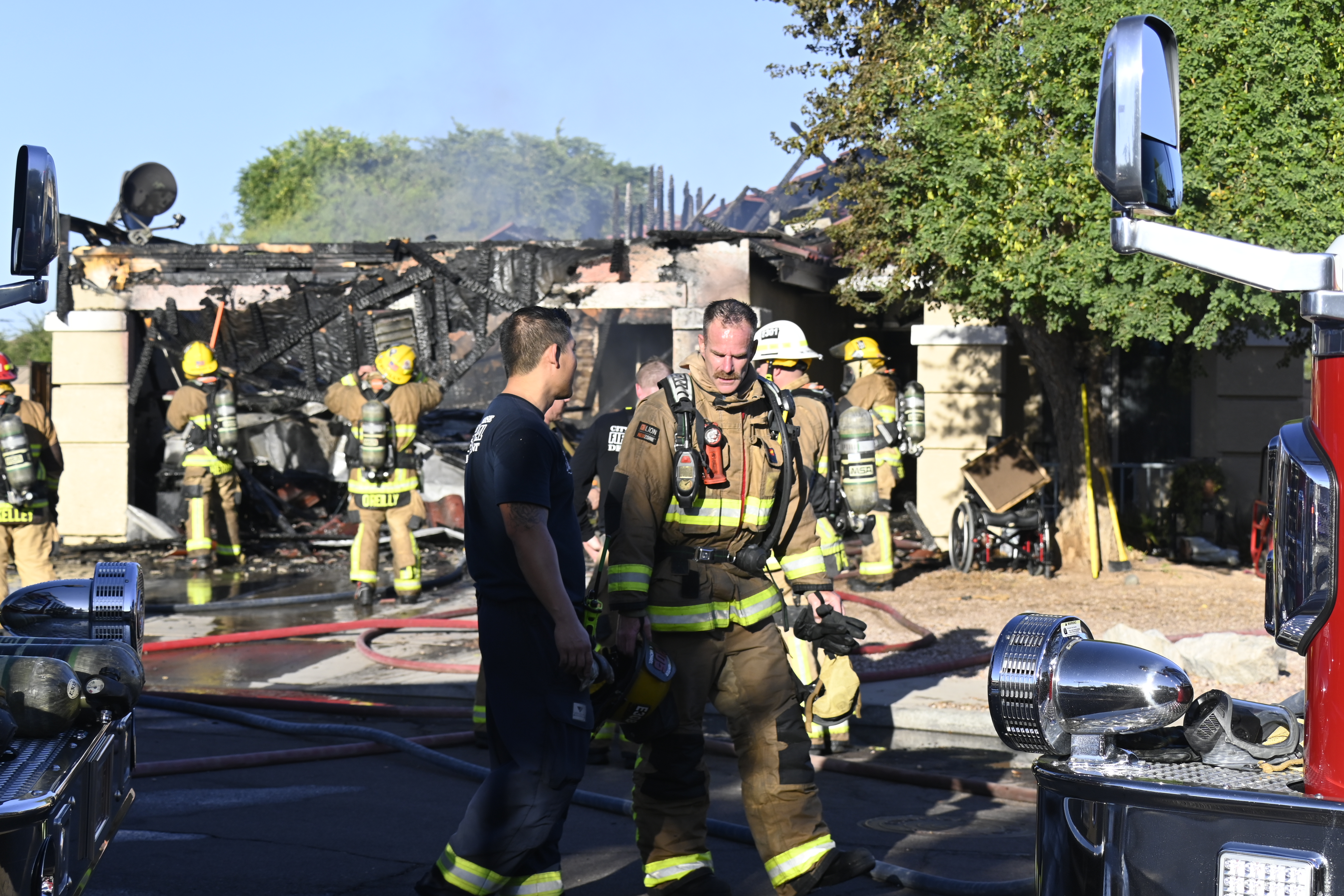 10/14/23 WF House Fire Surprise Young St Durbin Dr Started In The Garage Heavy Ext Into The House And Attic Units Went defensive Roof Collapse Surprise Sun City El Mirage Glendale AzFireMed Working