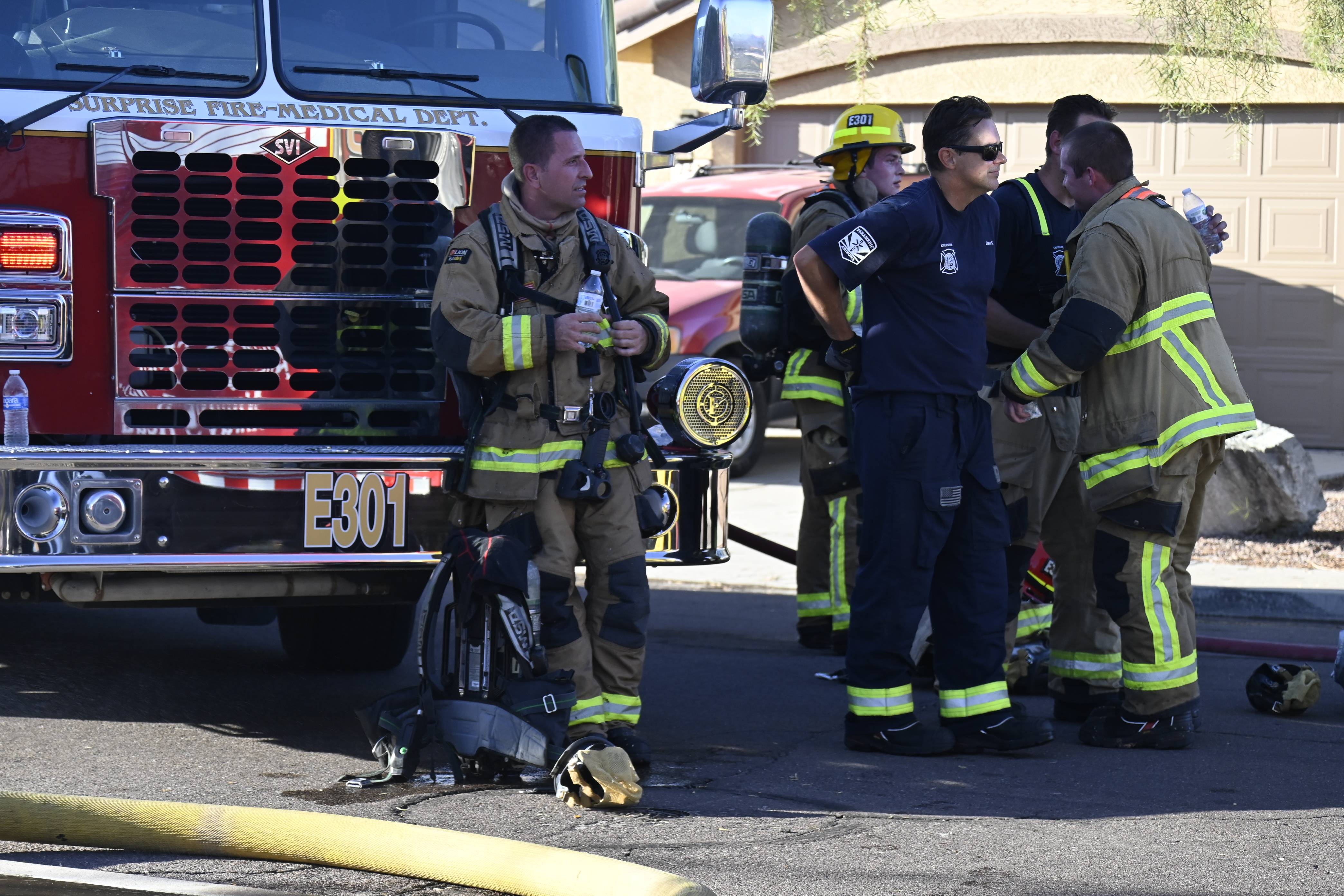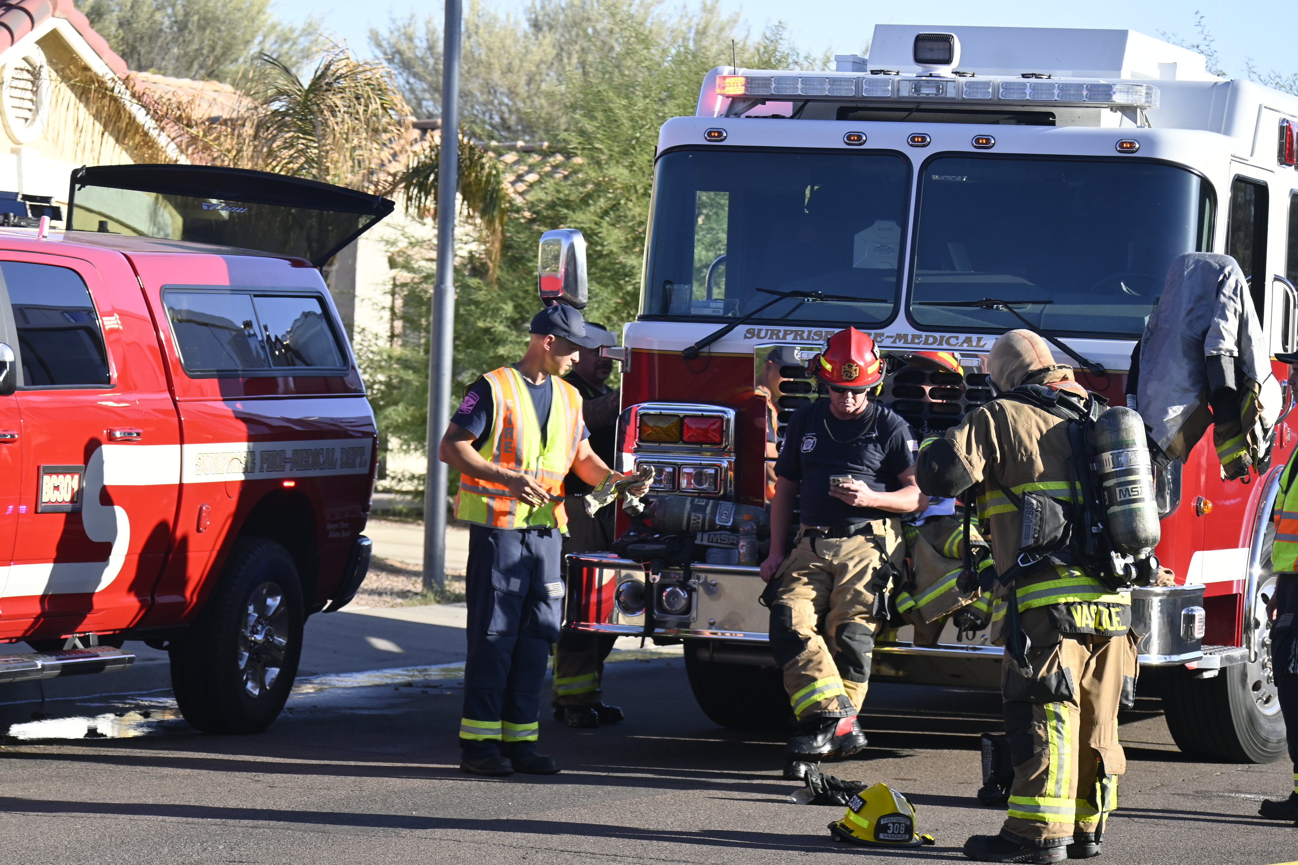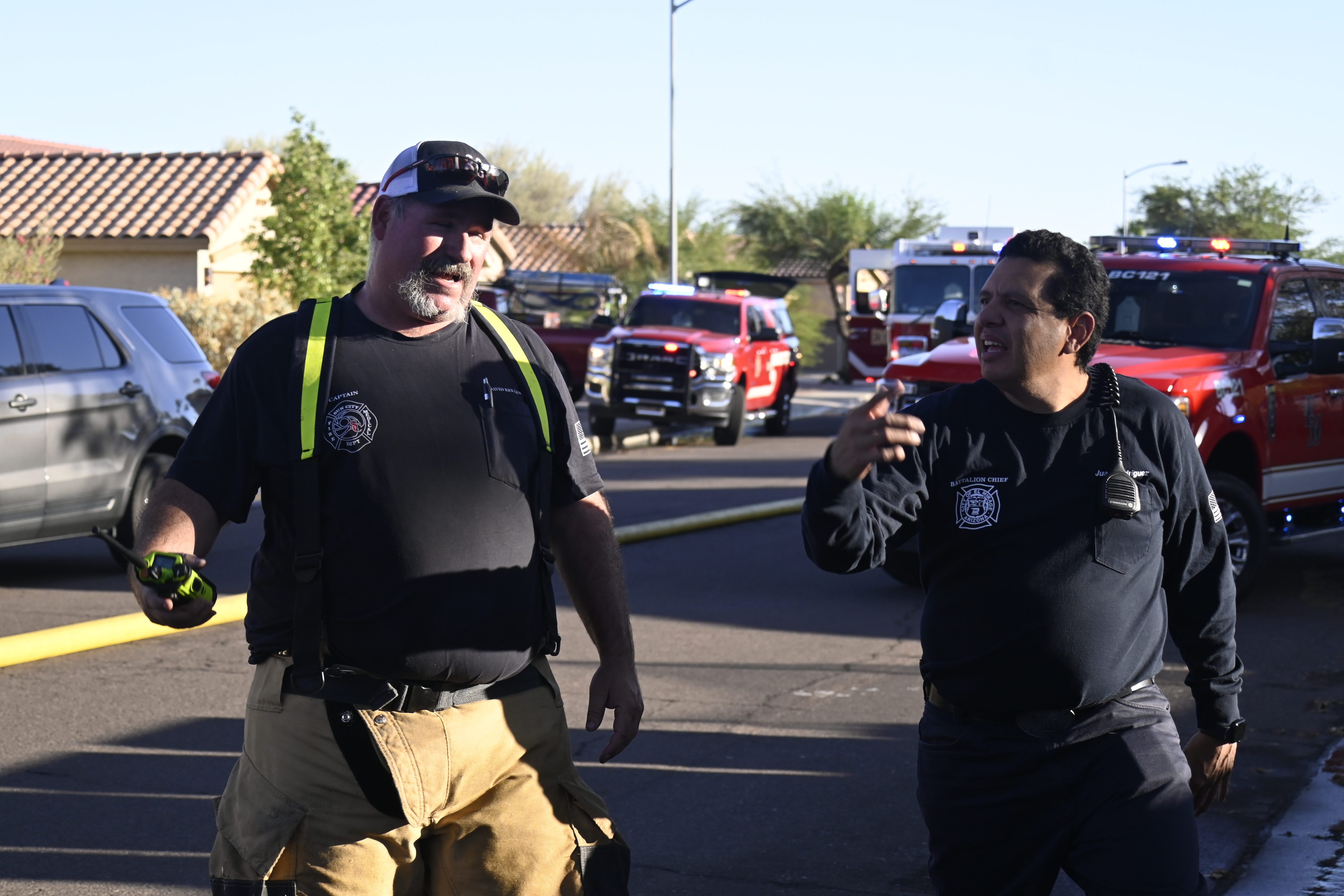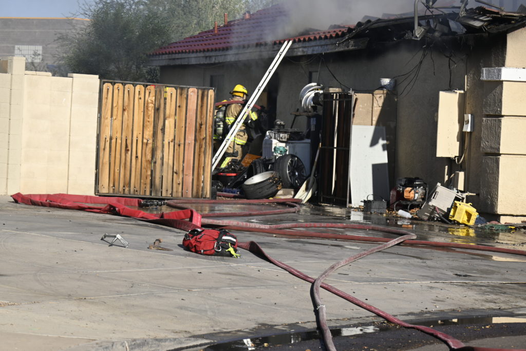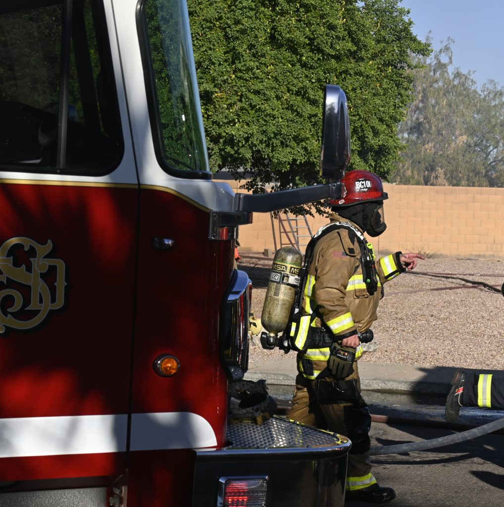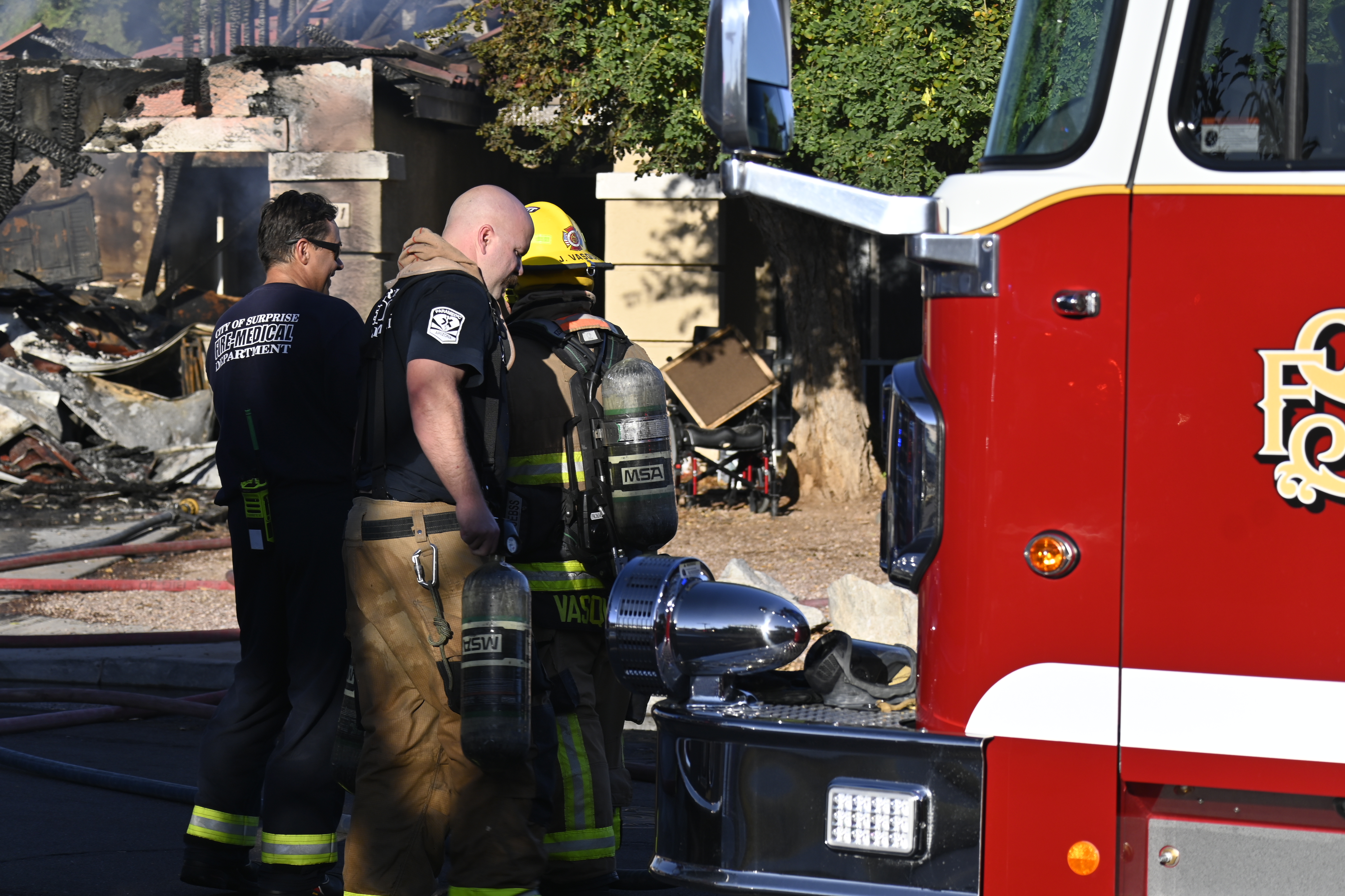 10/14/23 WF House Fire Surprise Young St Durbin Dr Started In The Garage Heavy Ext Into The House And Attic Units Went defensive Roof Collapse Surprise Sun City El Mirage Glendale AzFireMed Working