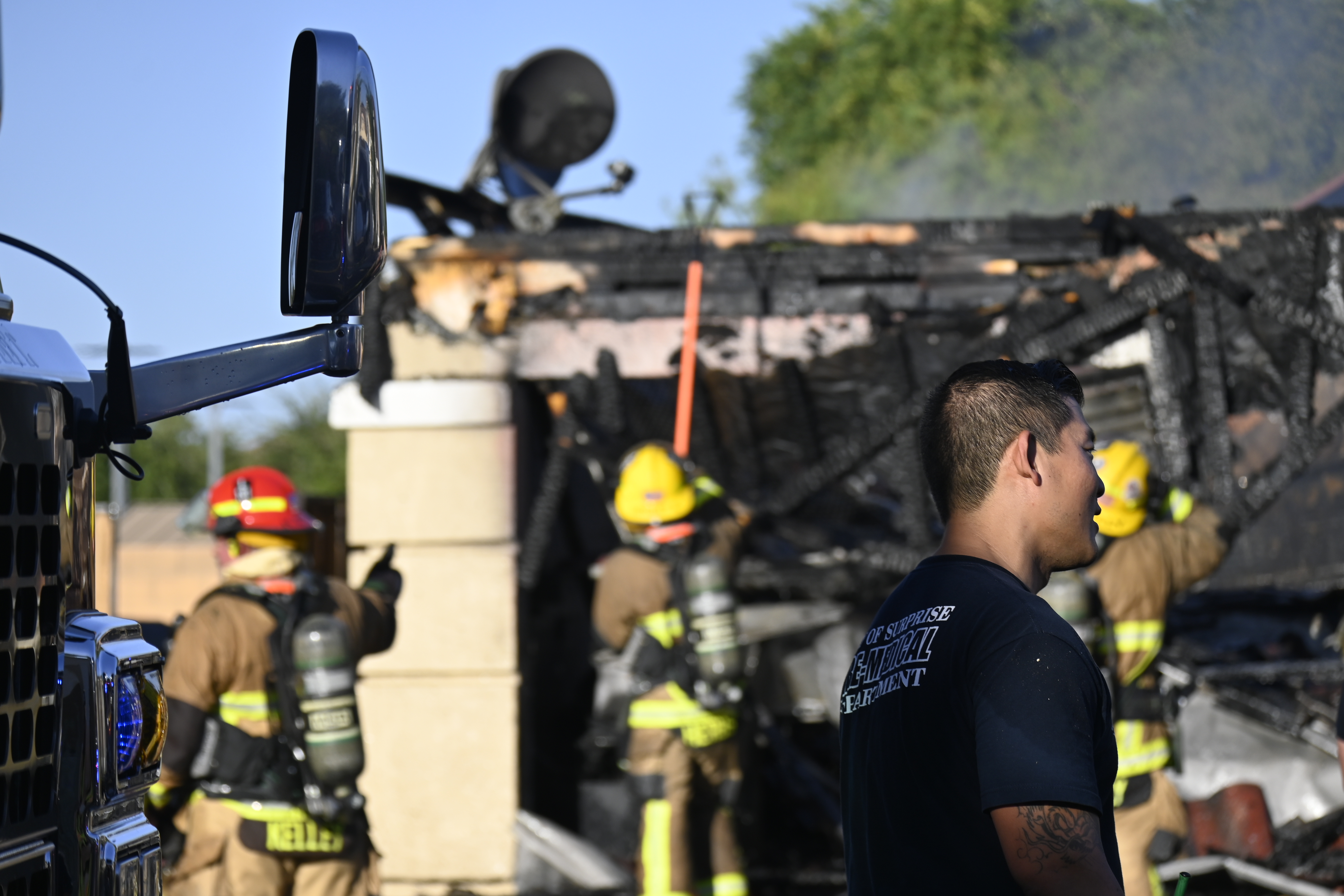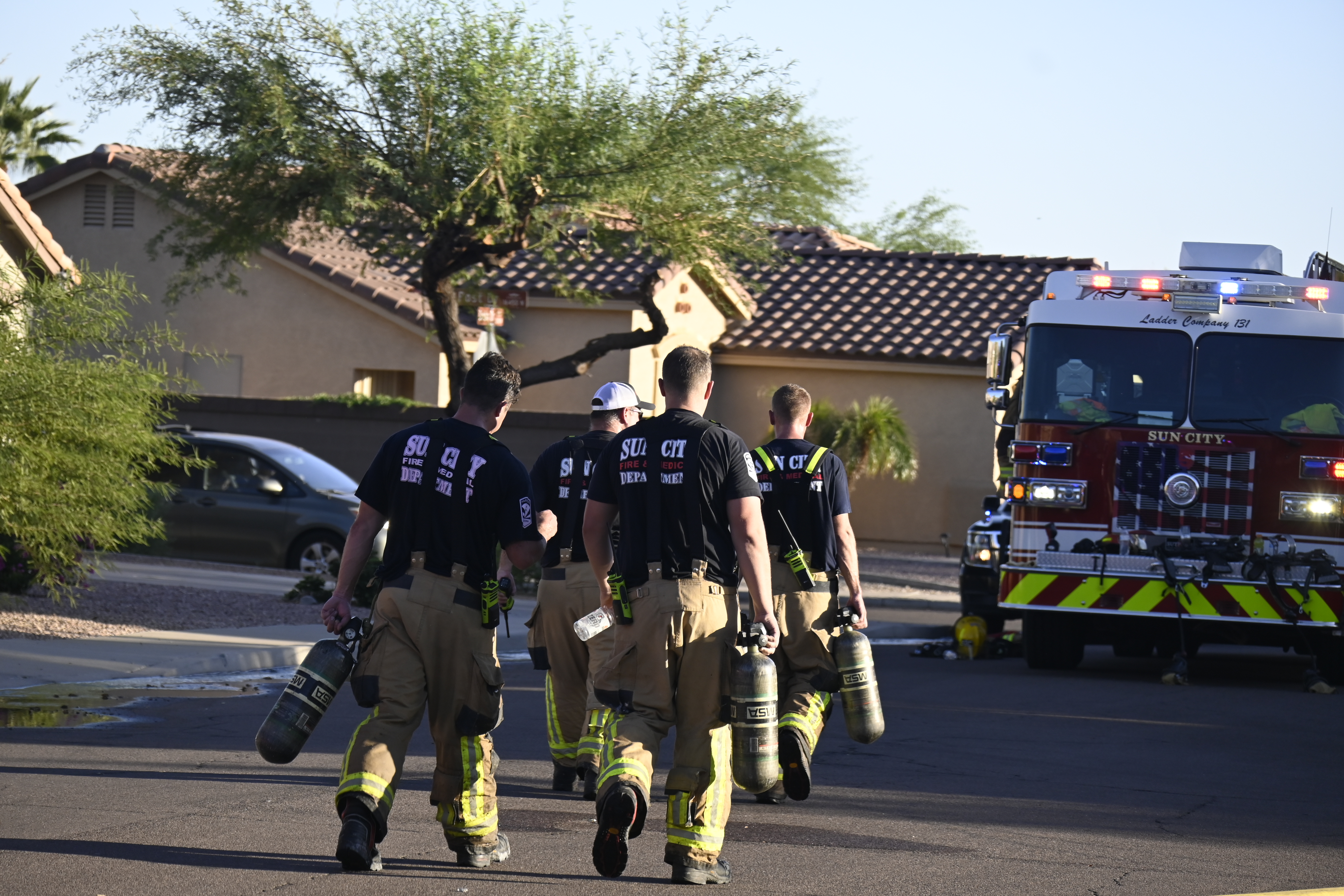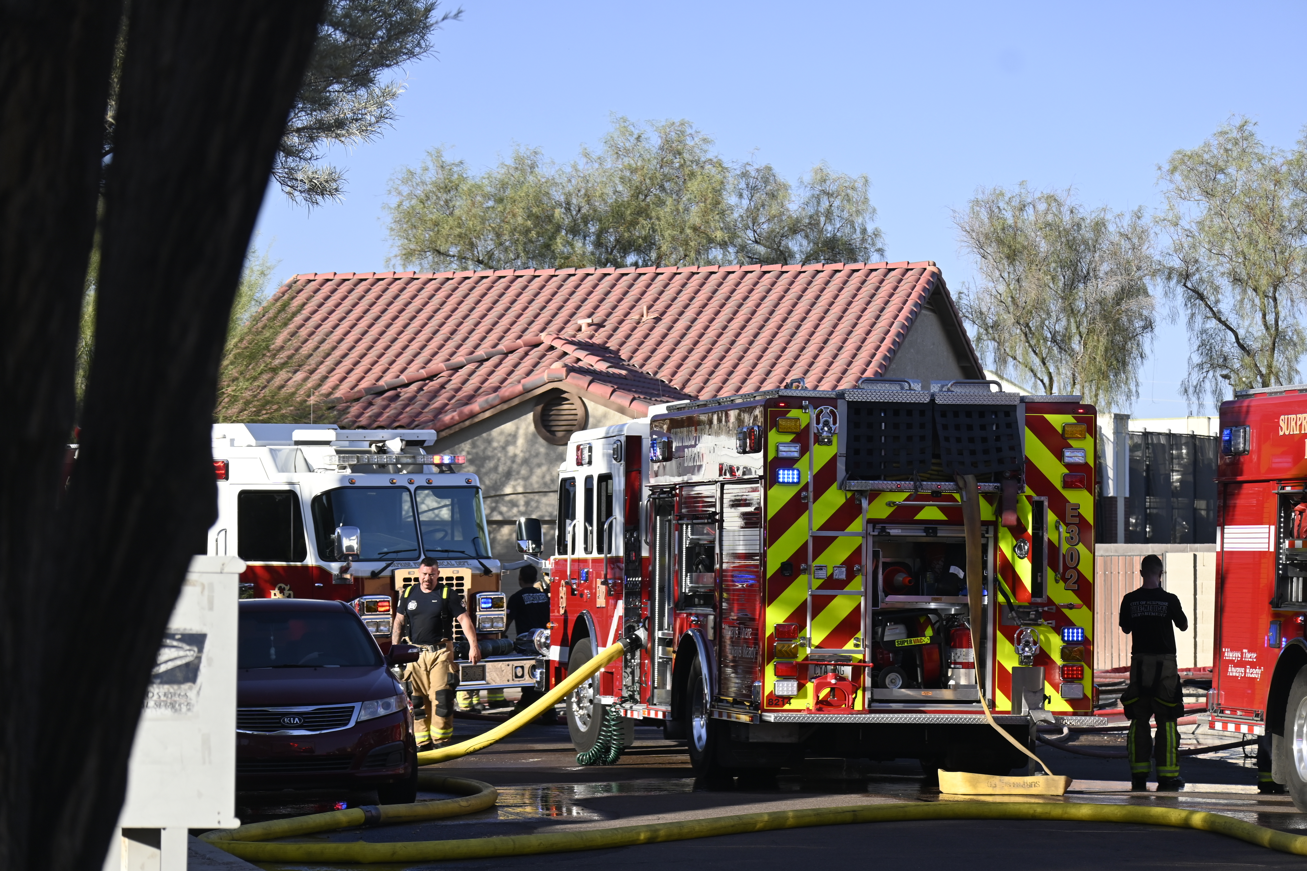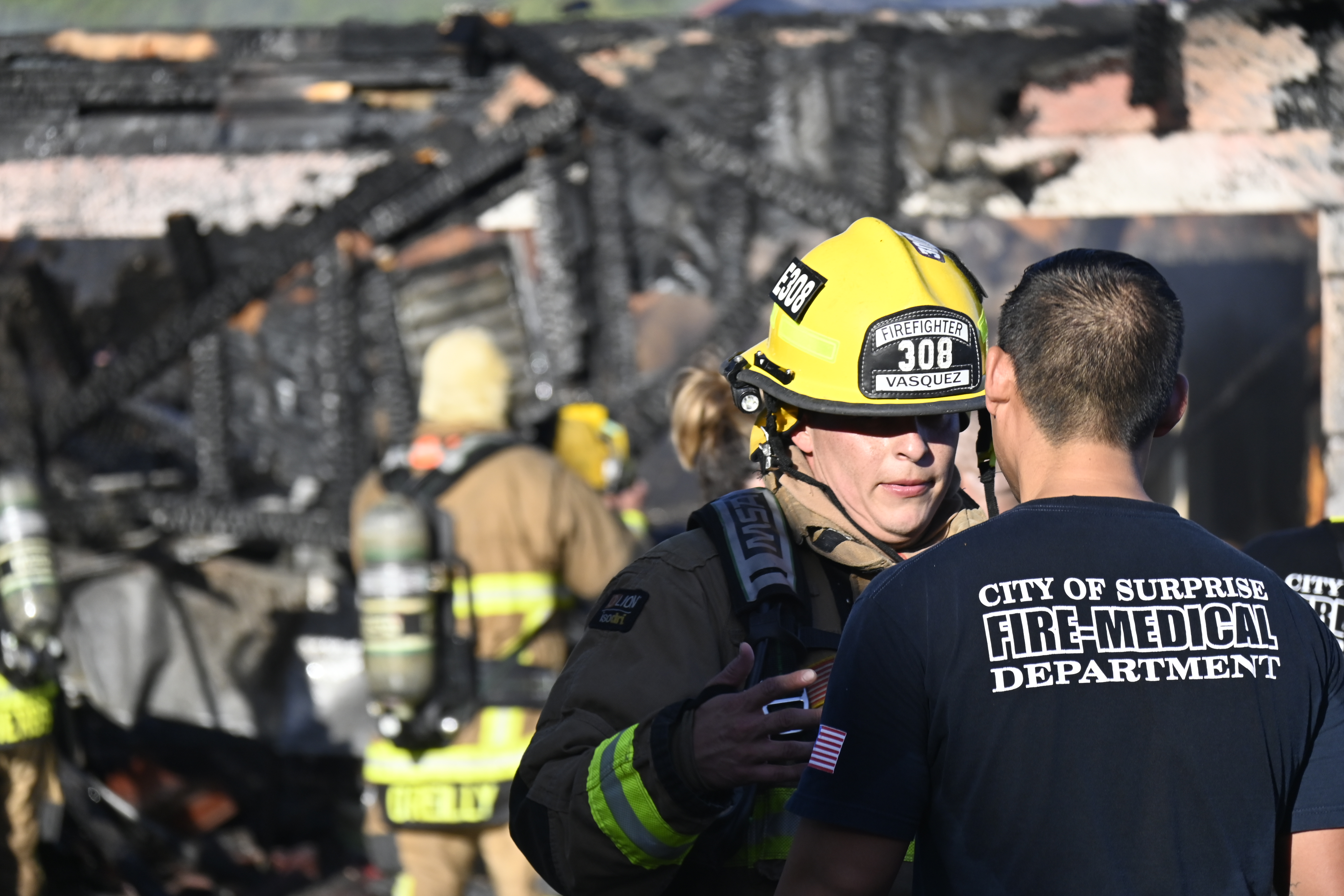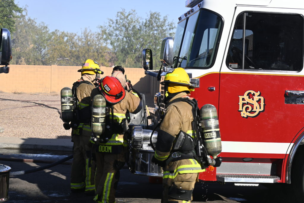 10/14/23 WF House Fire Surprise Young St Durbin Dr Started In The Garage Heavy Ext Into The House And Attic Units Went defensive Roof Collapse Surprise Sun City El Mirage Glendale AzFireMed Working