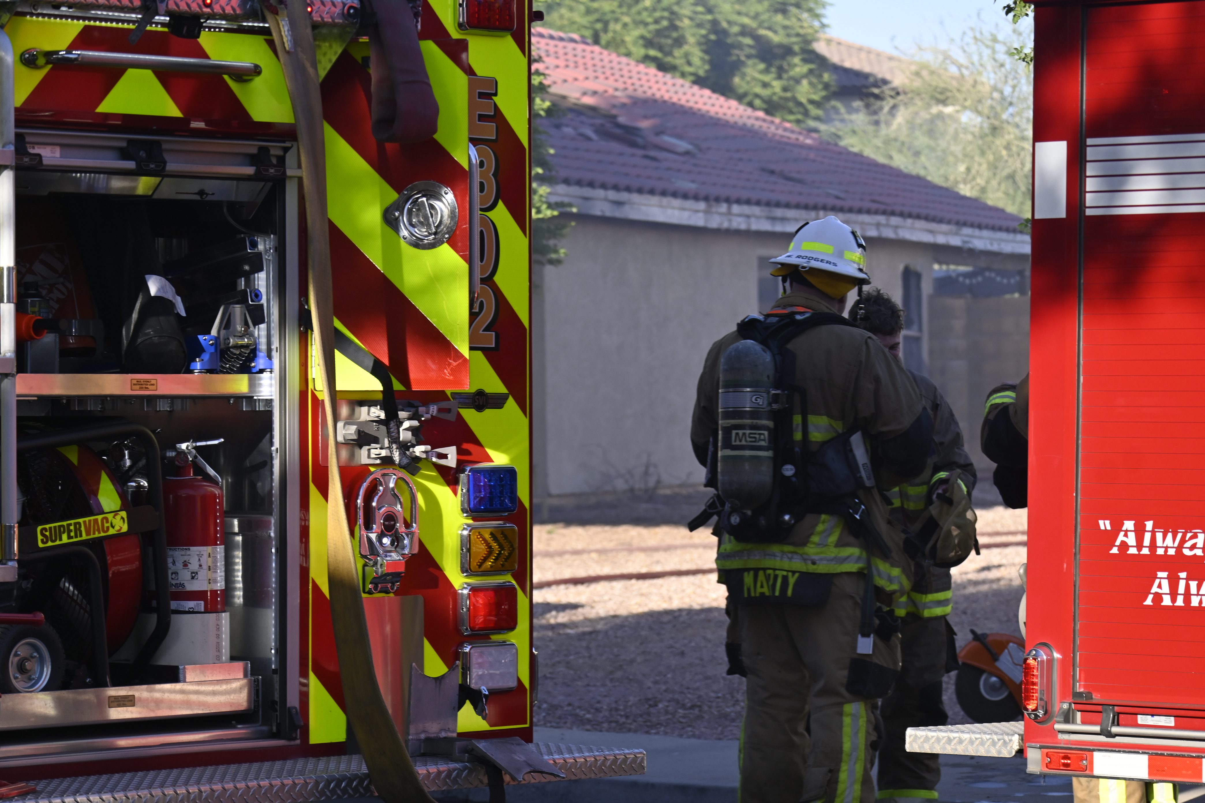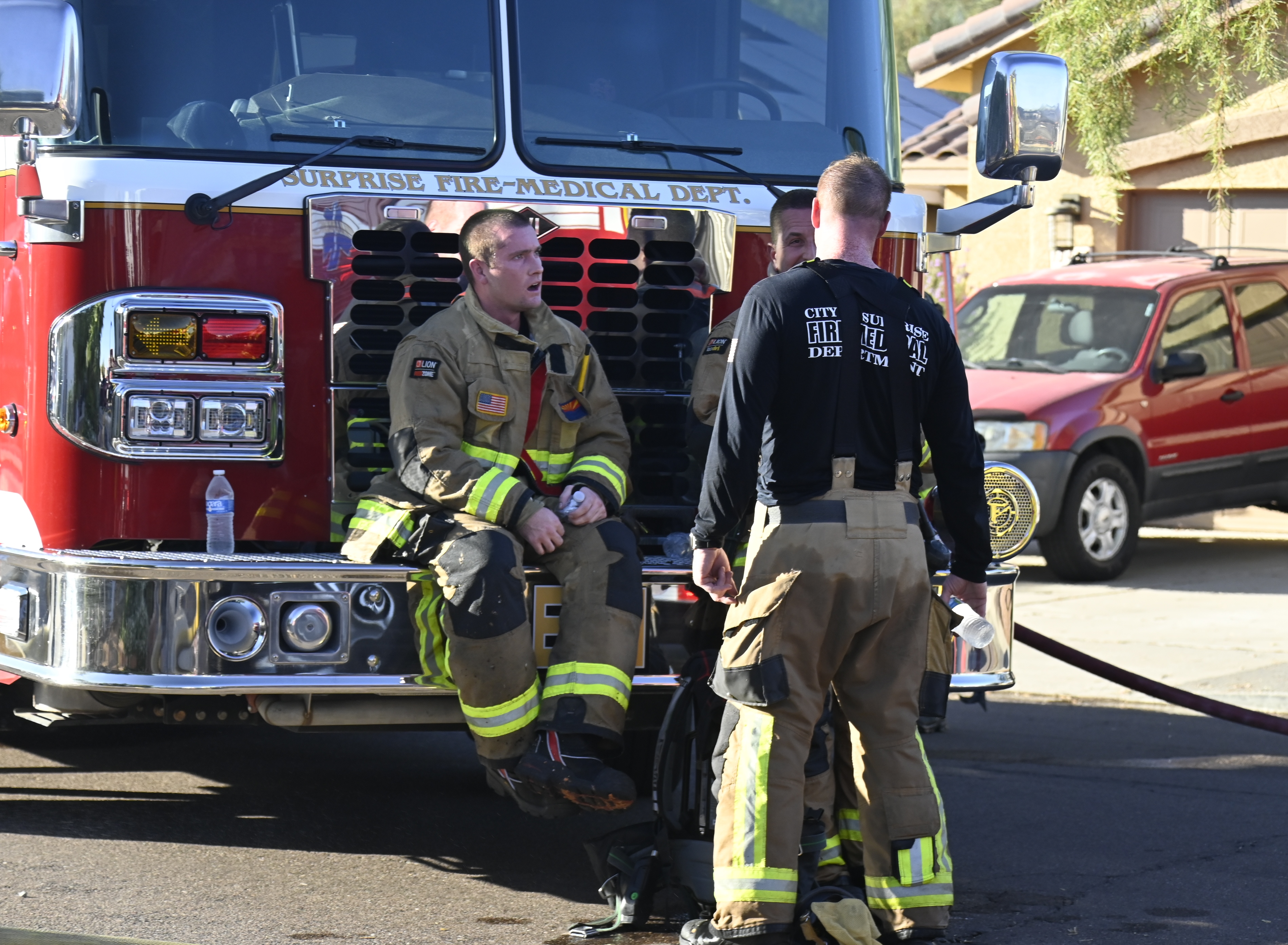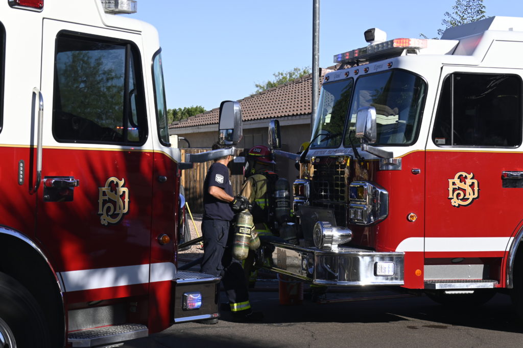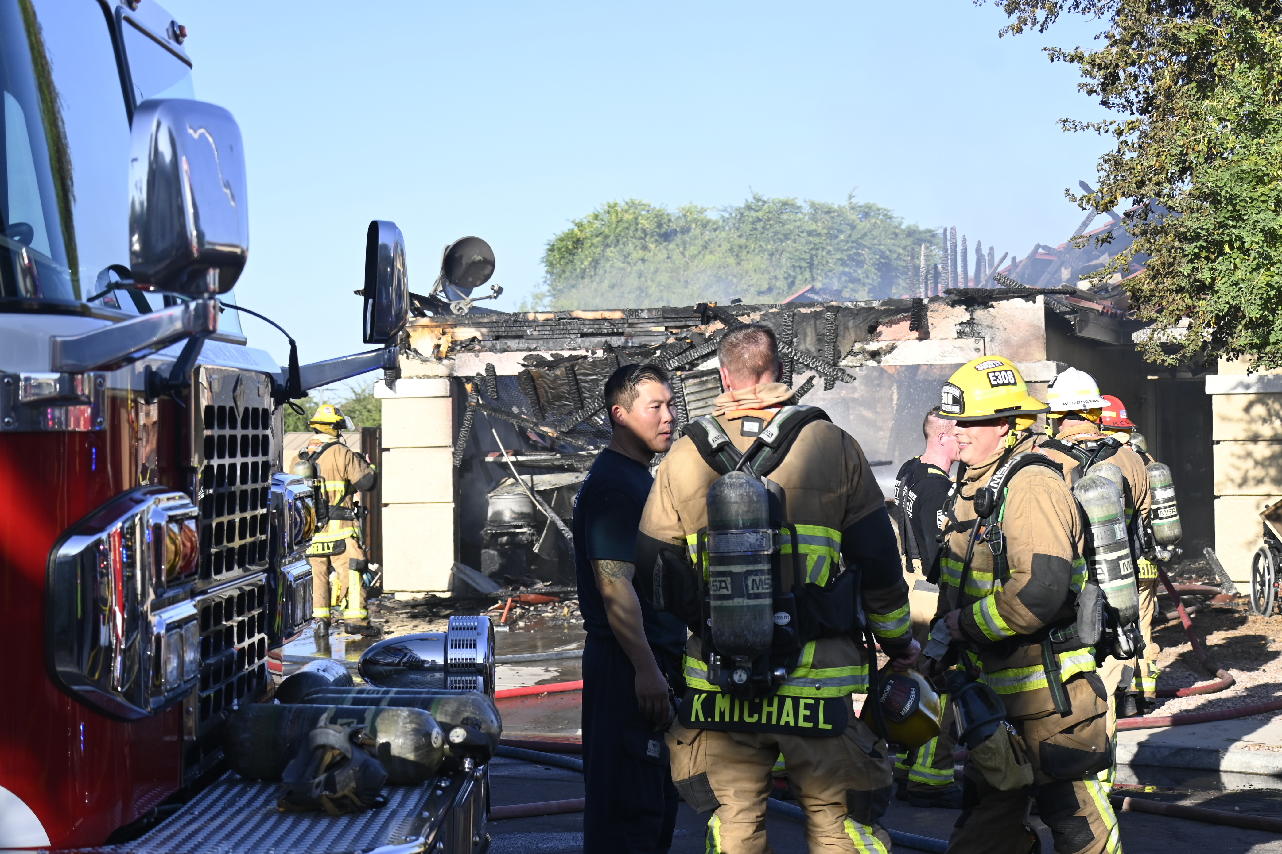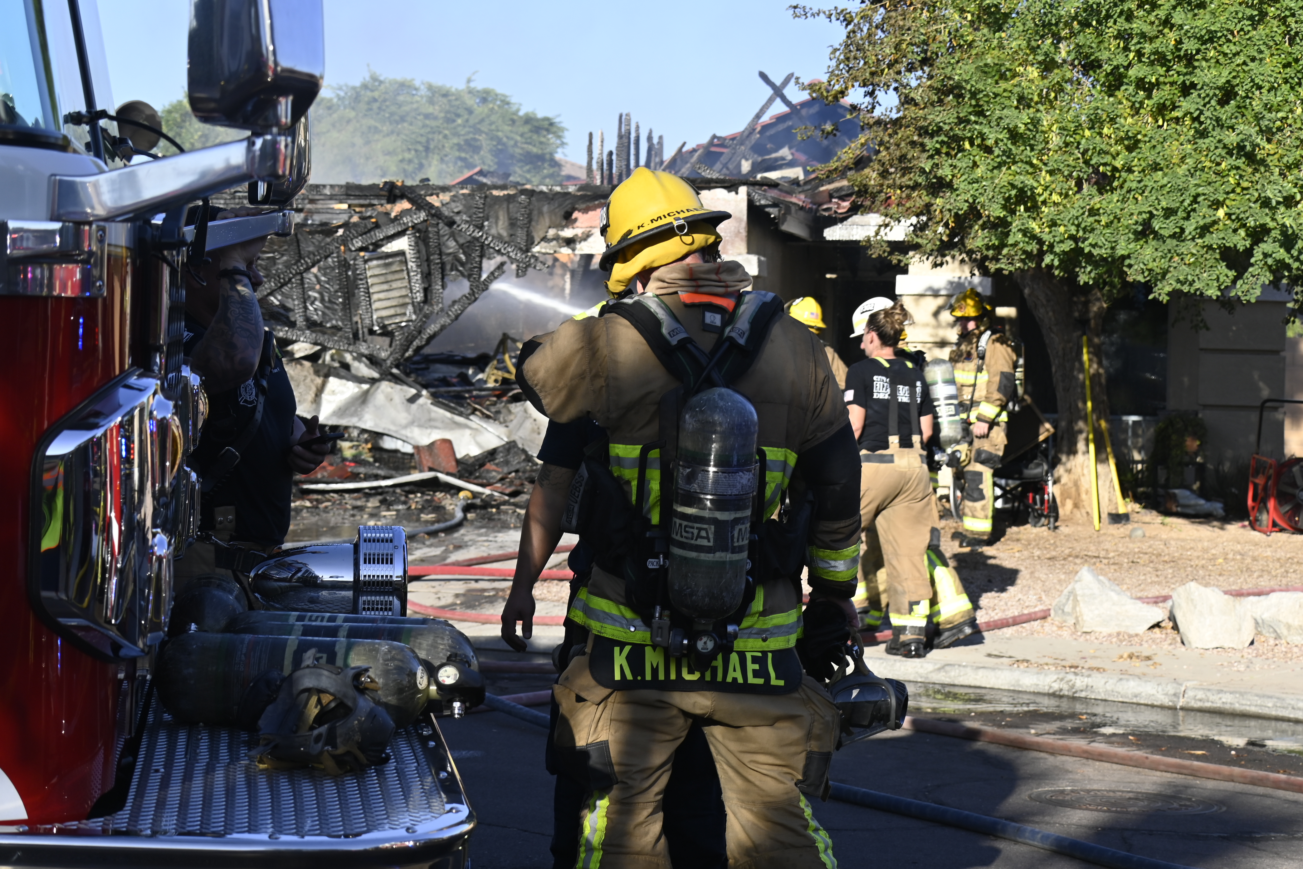 10/14/23 WF House Fire Surprise Young St Durbin Dr Started In The Garage Heavy Ext Into The House And Attic Units Went defensive Roof Collapse Surprise Sun City El Mirage Glendale AzFireMed Working