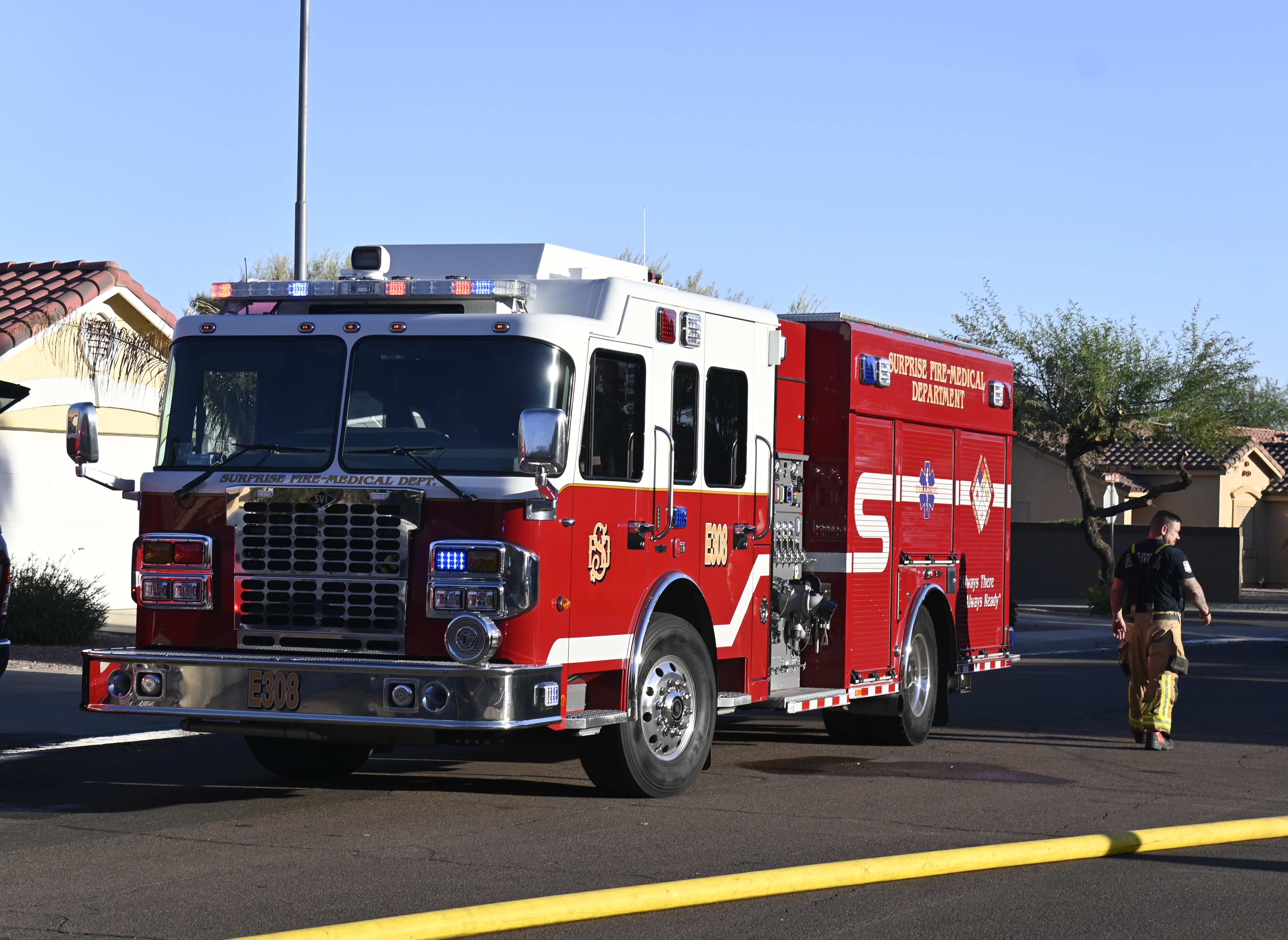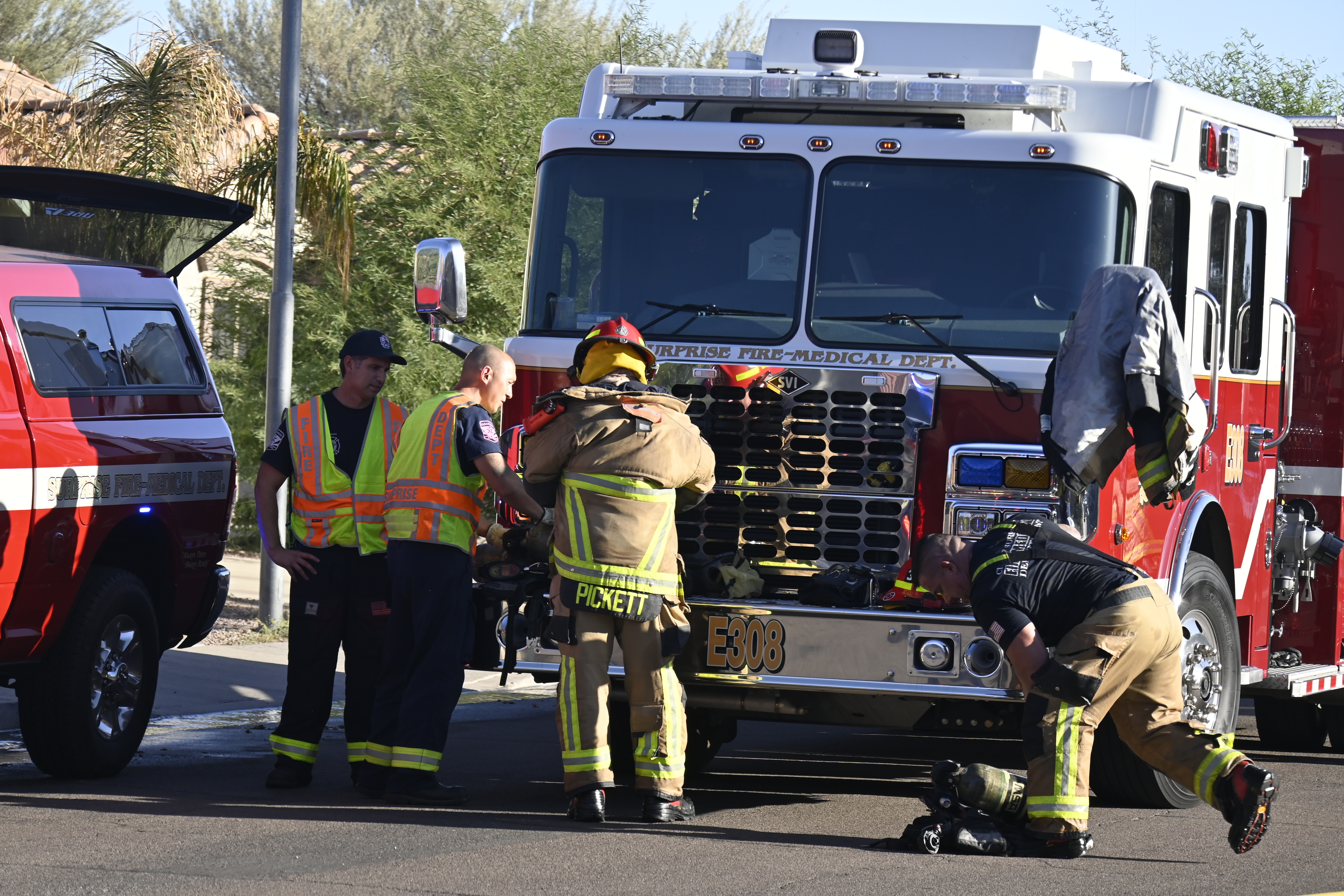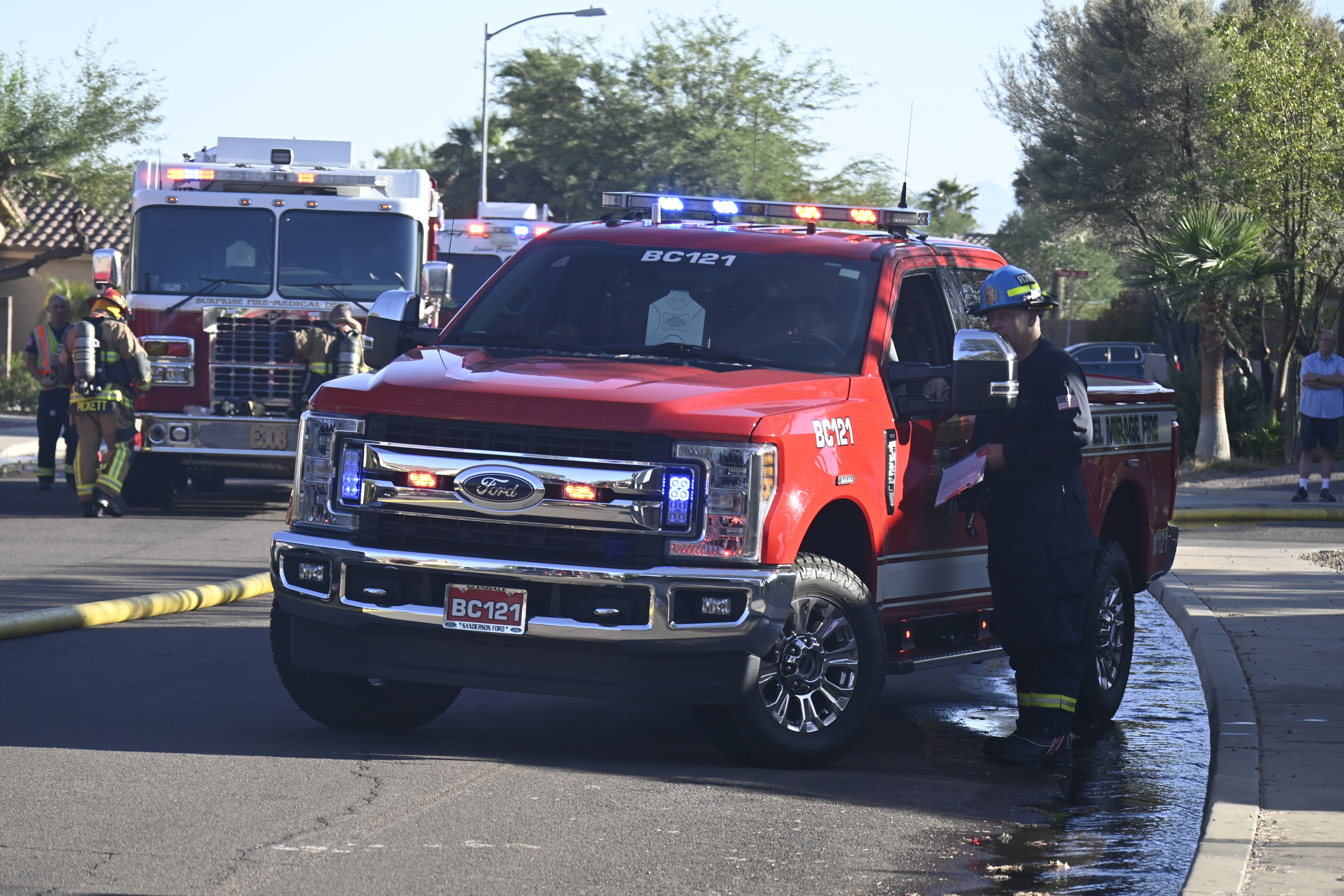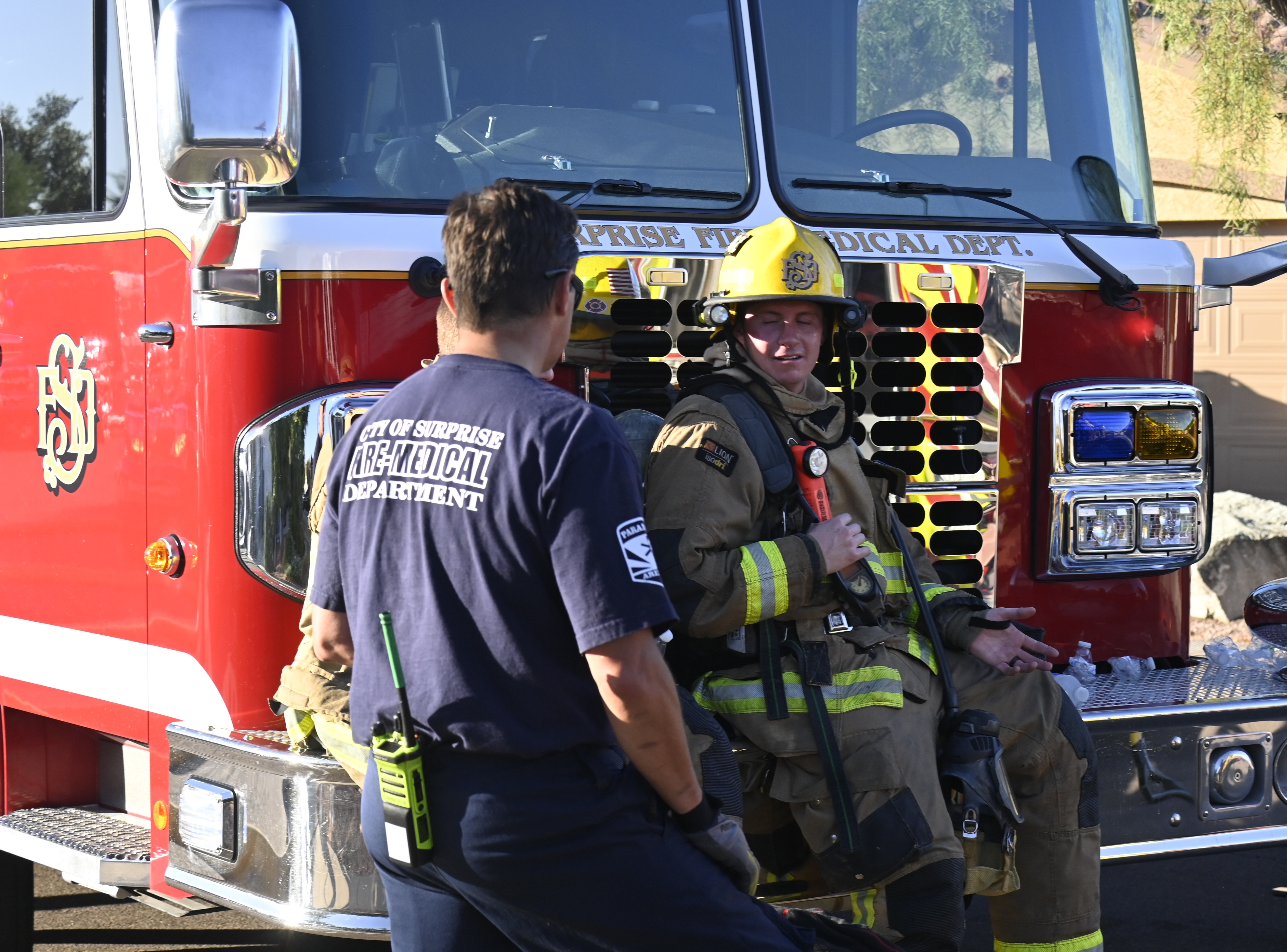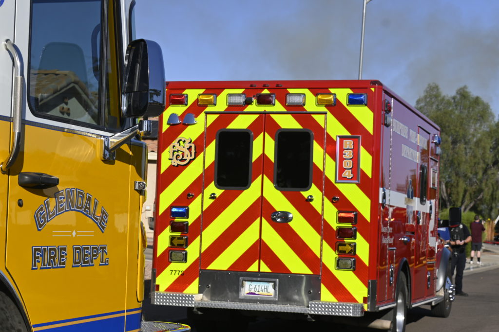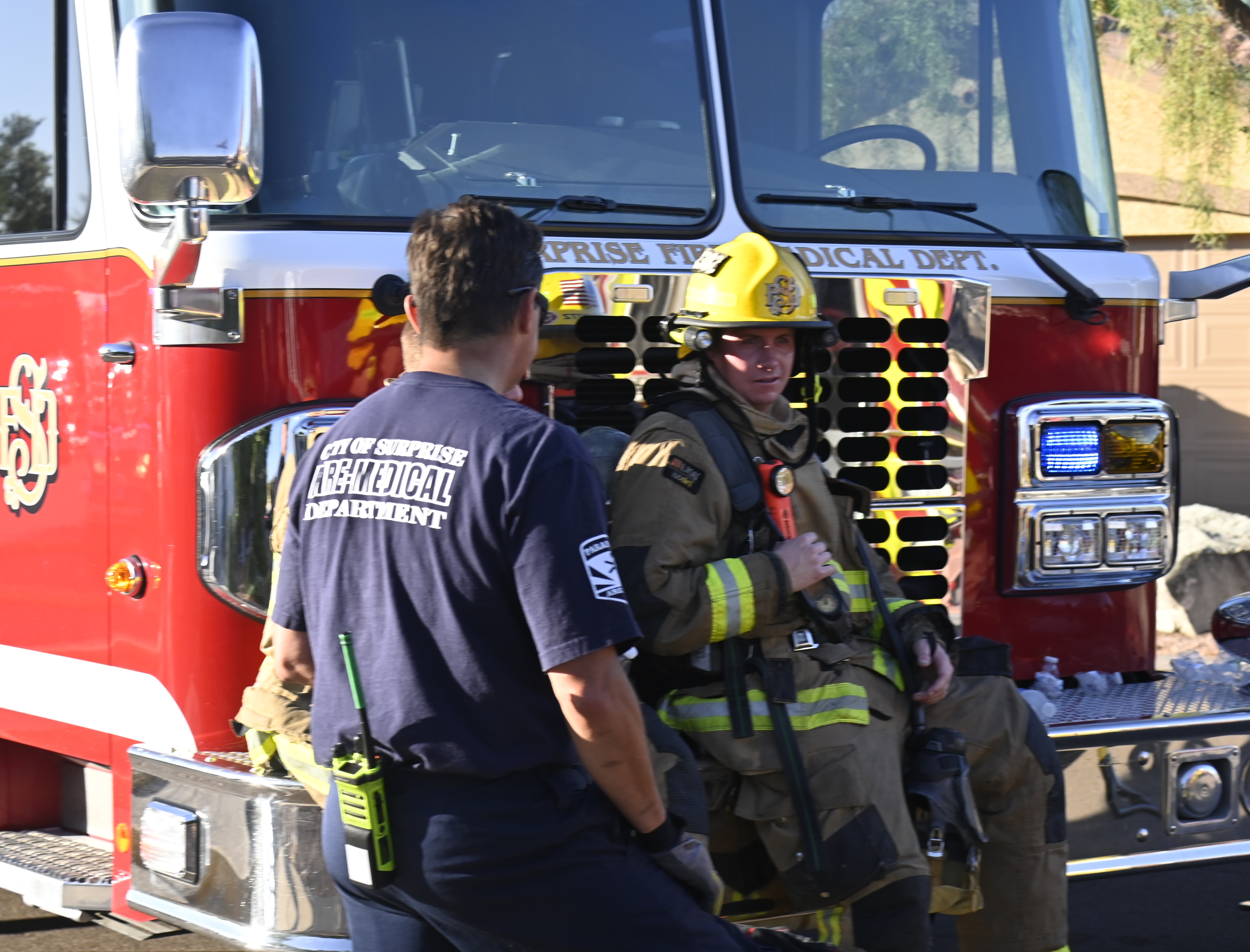 10/14/23 WF House Fire Surprise Young St Durbin Dr Started In The Garage Heavy Ext Into The House And Attic Units Went defensive Roof Collapse Surprise Sun City El Mirage Glendale AzFireMed Working