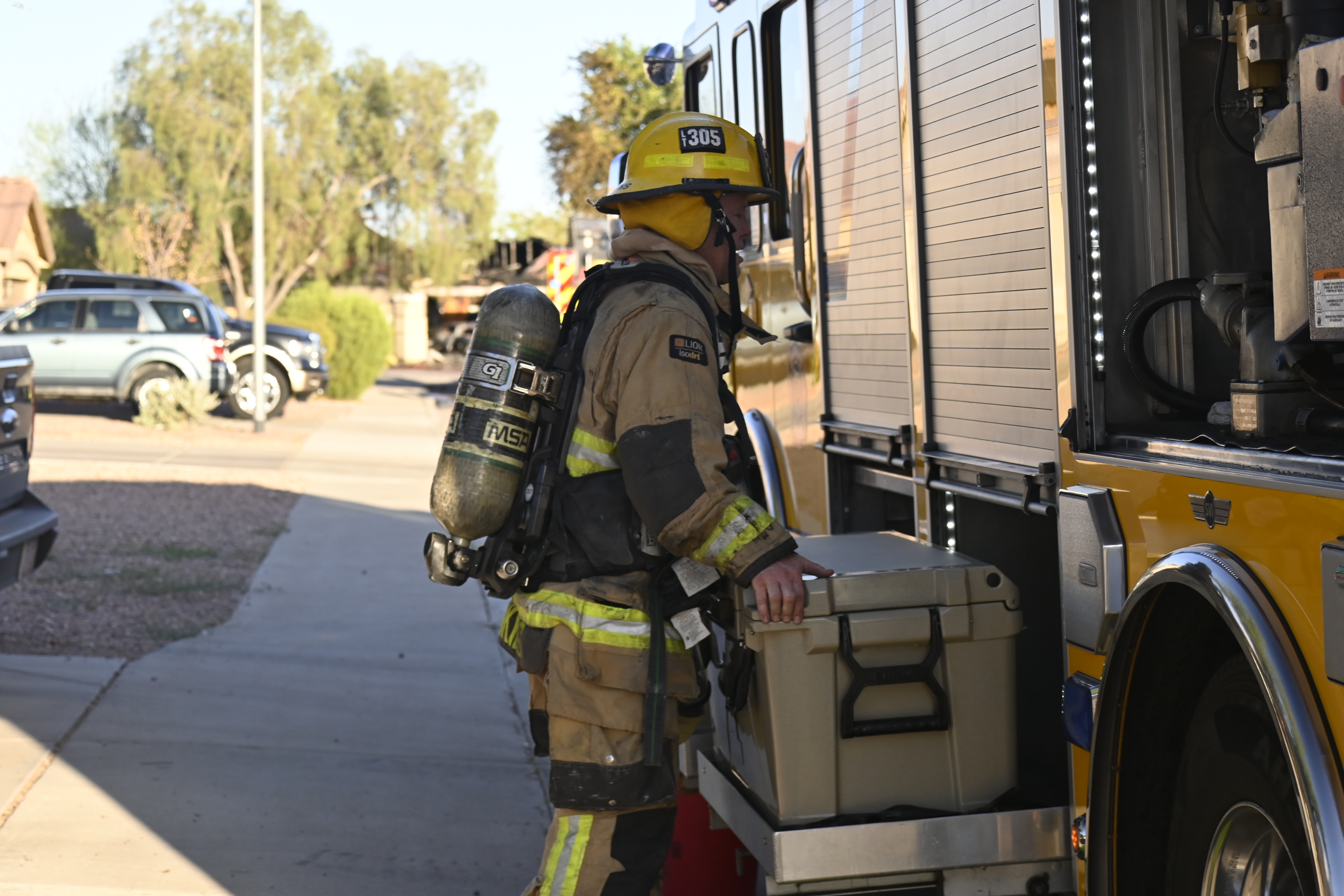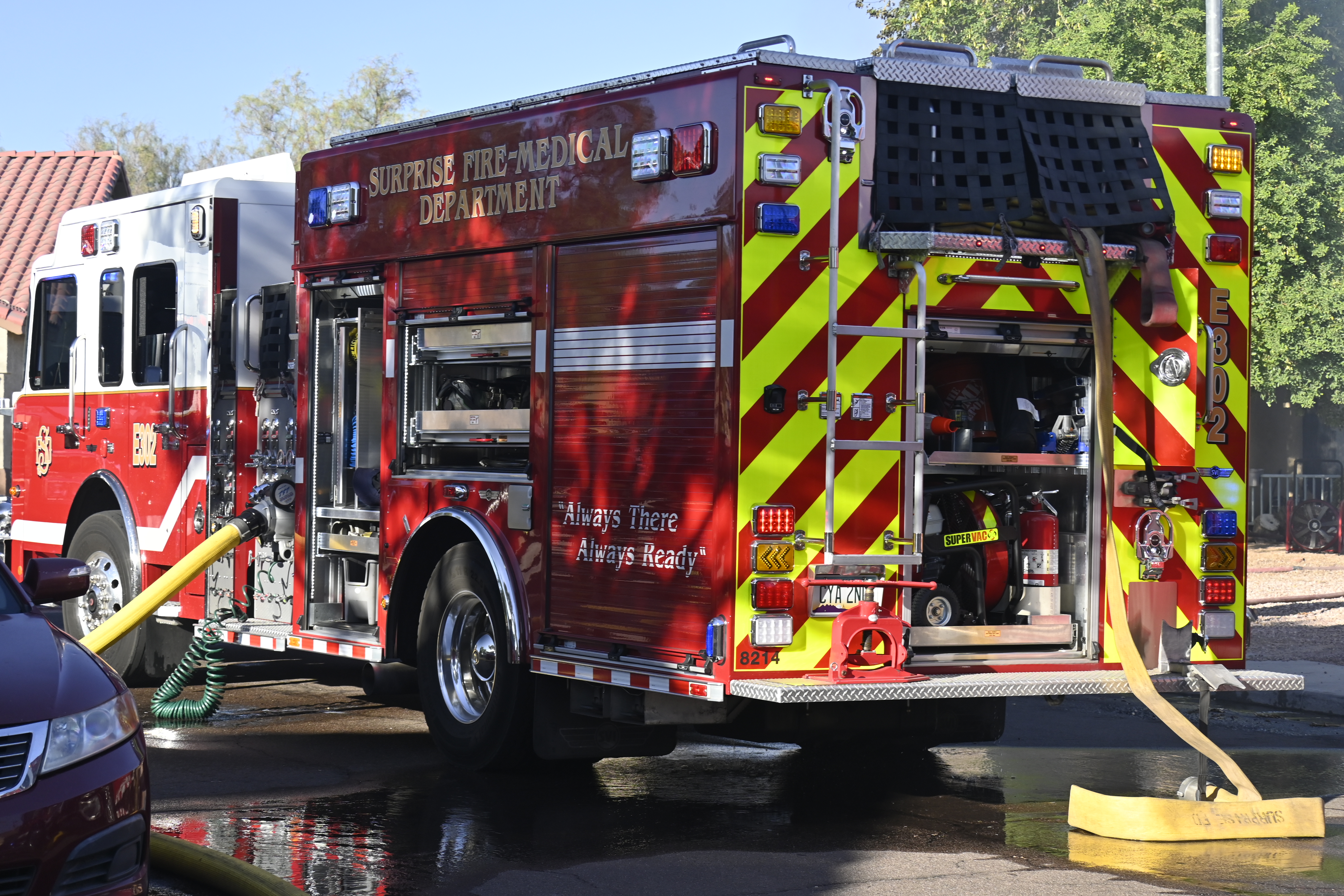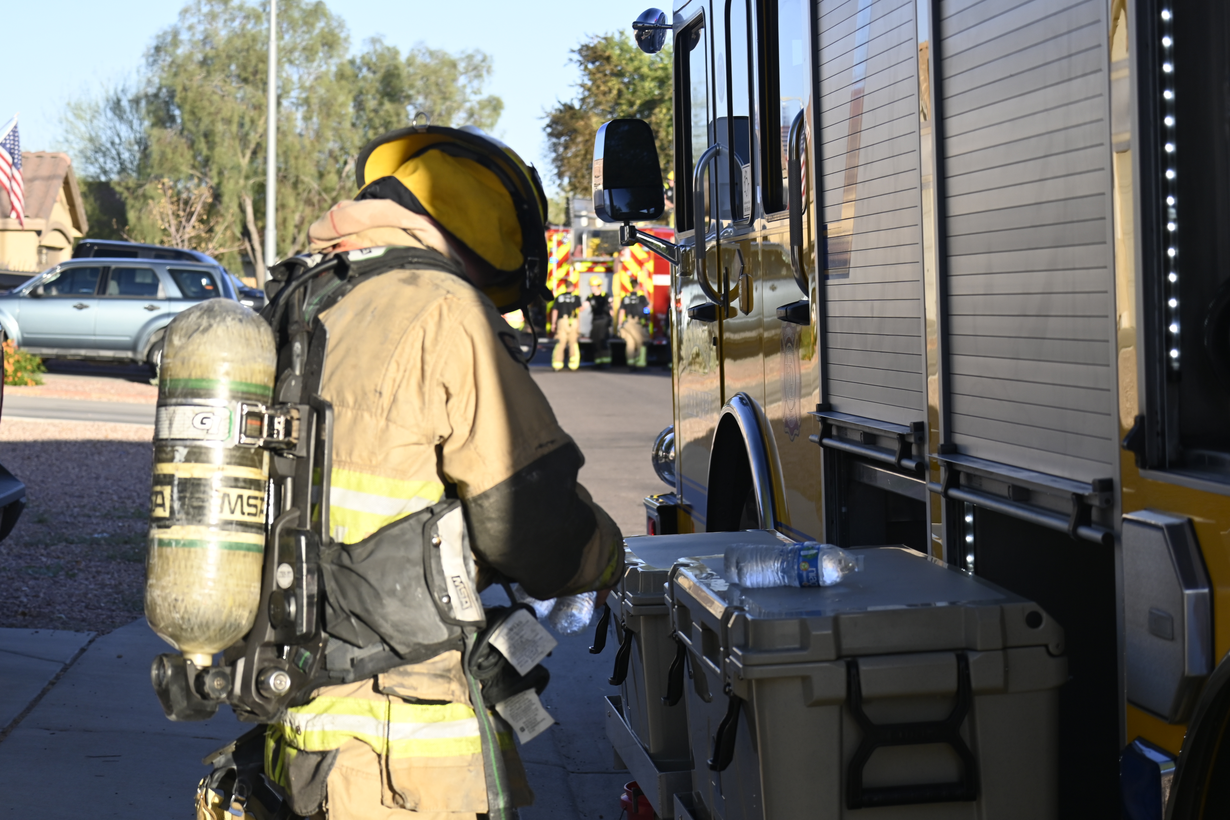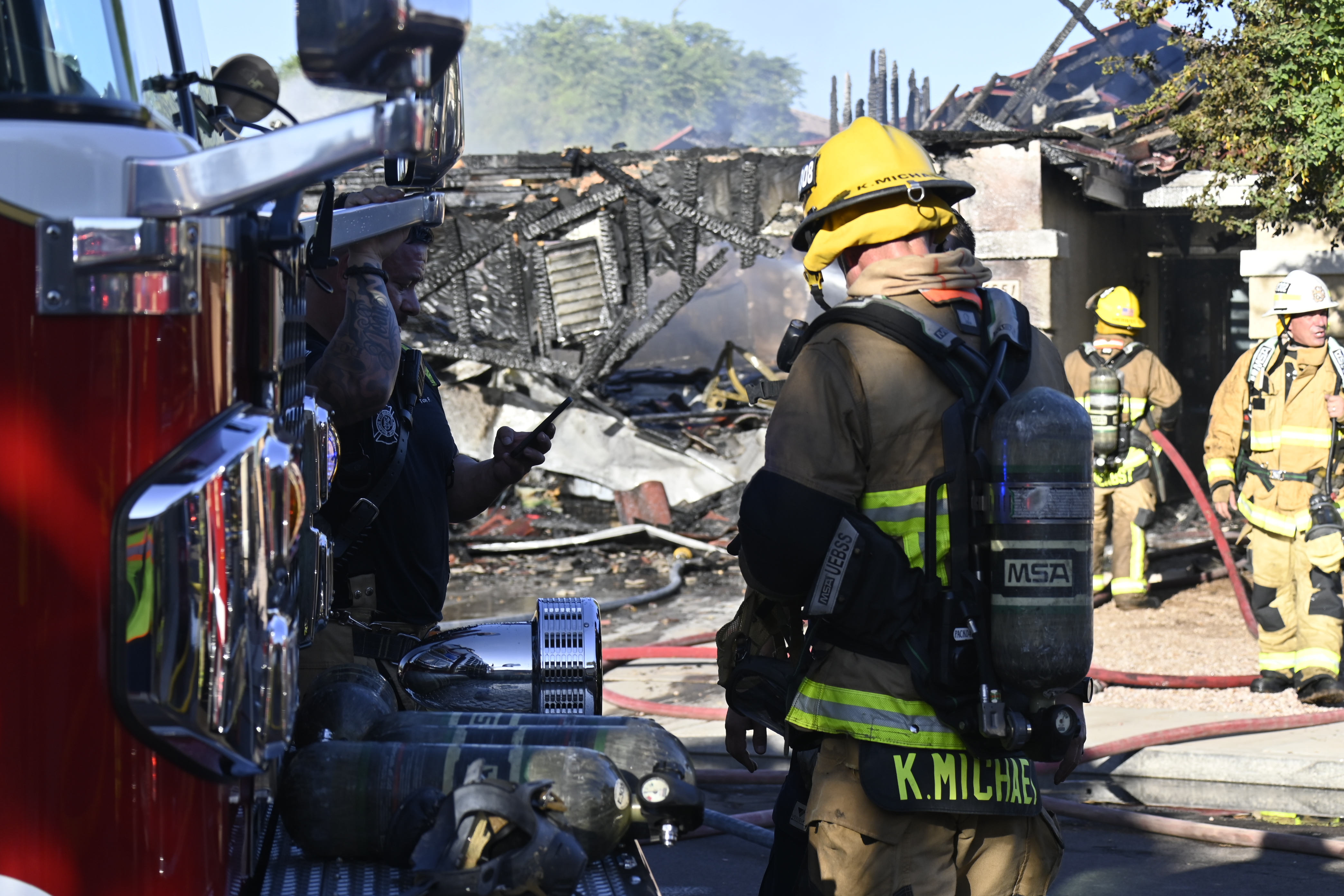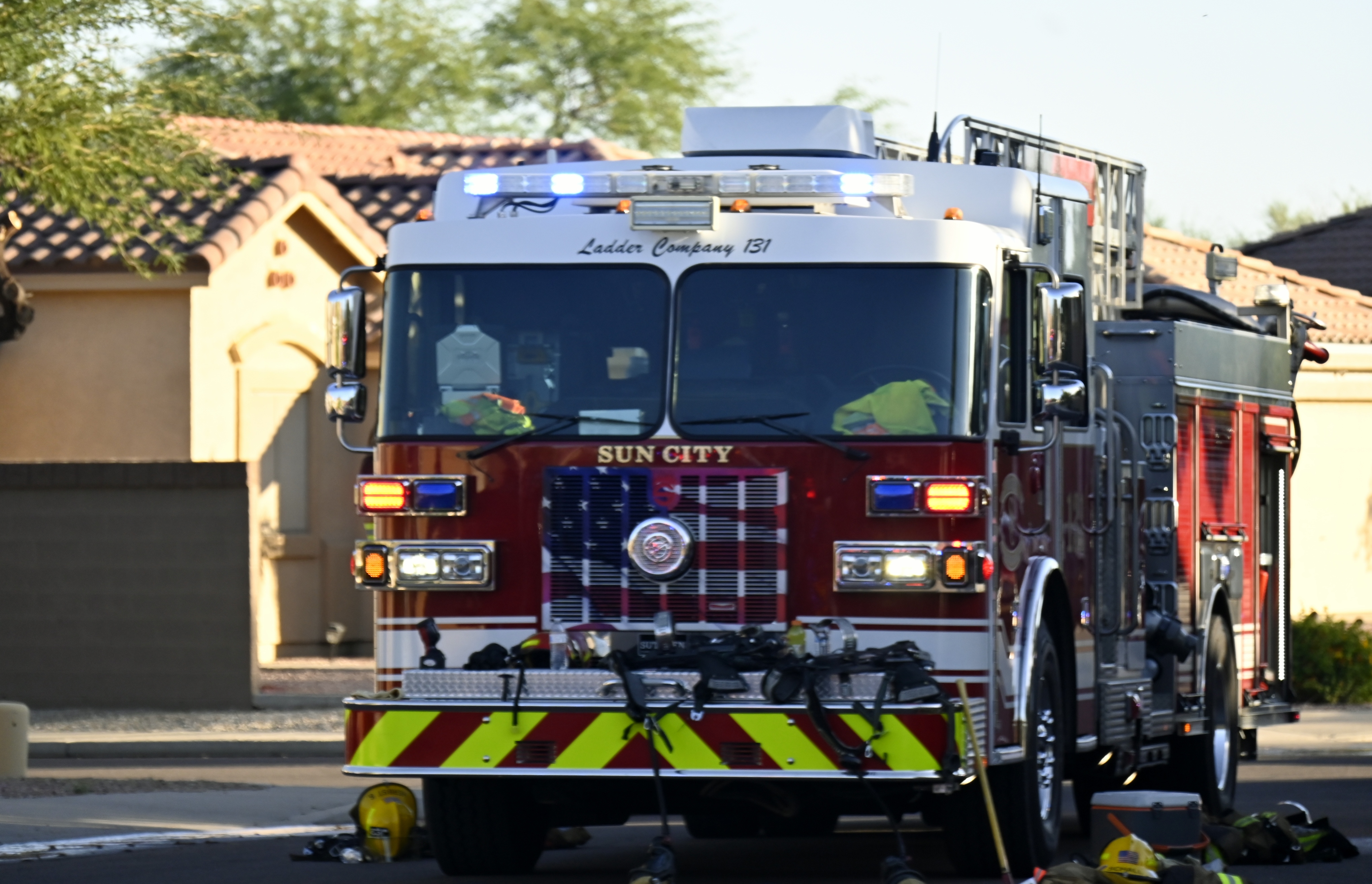 10/14/23 WF House Fire Surprise Young St Durbin Dr Started In The Garage Heavy Ext Into The House And Attic Units Went defensive Roof Collapse Surprise Sun City El Mirage Glendale AzFireMed Working