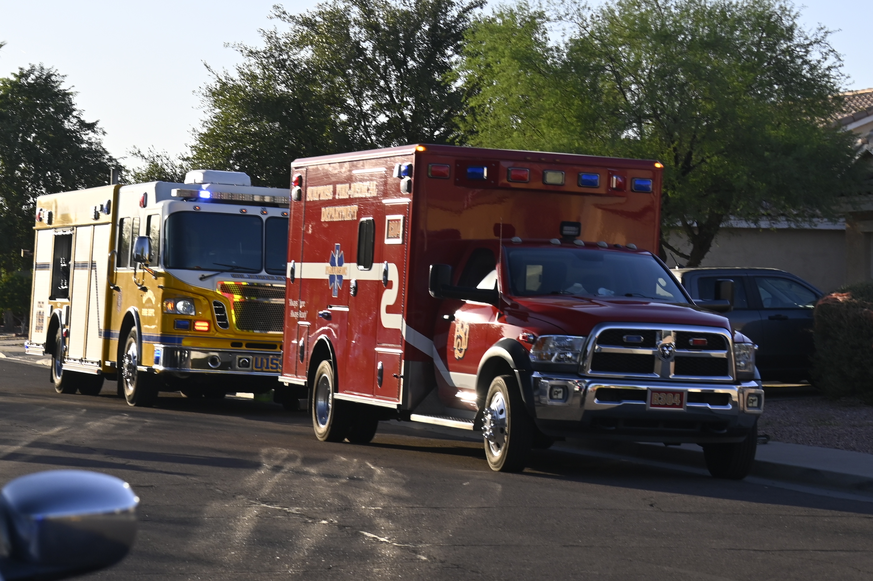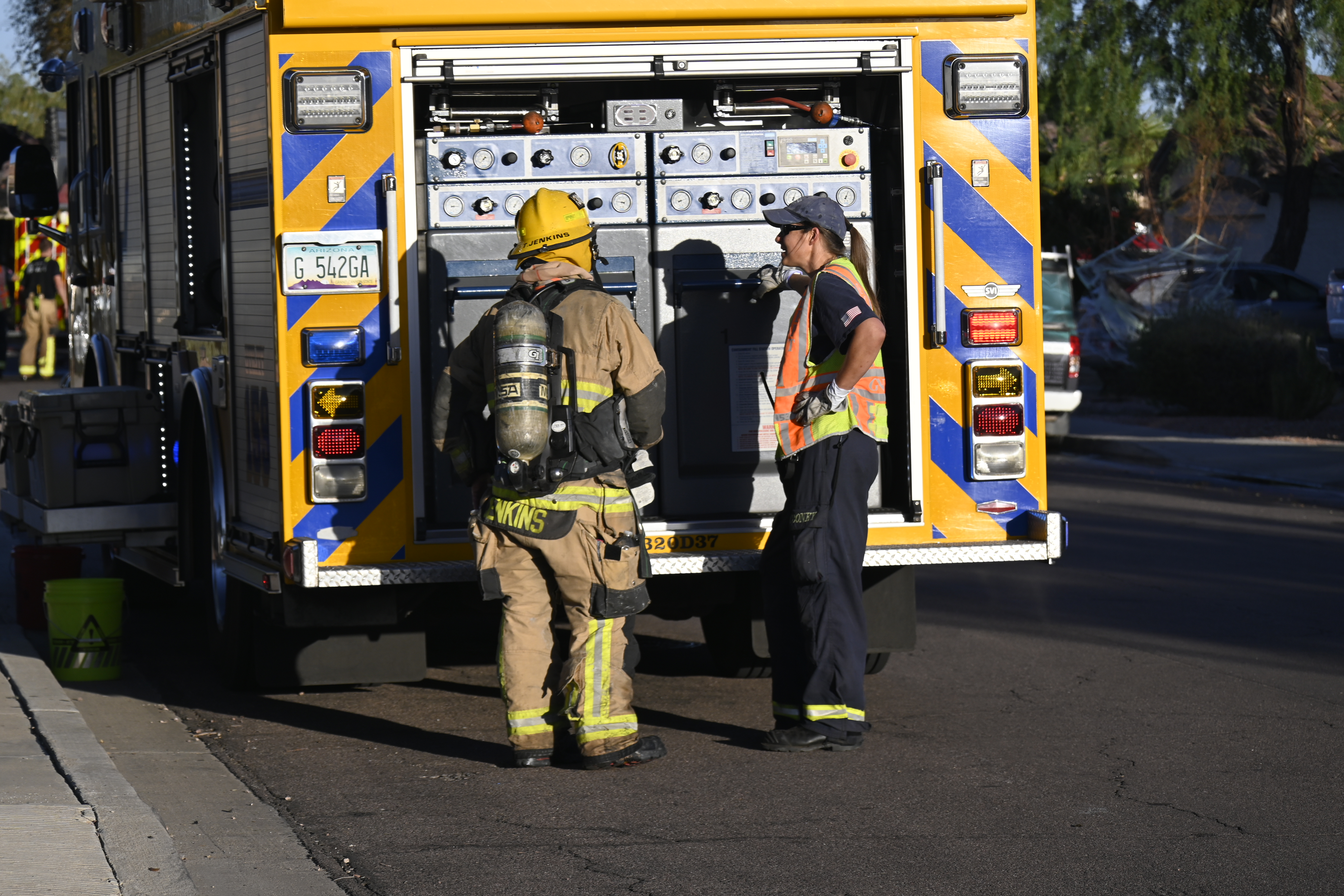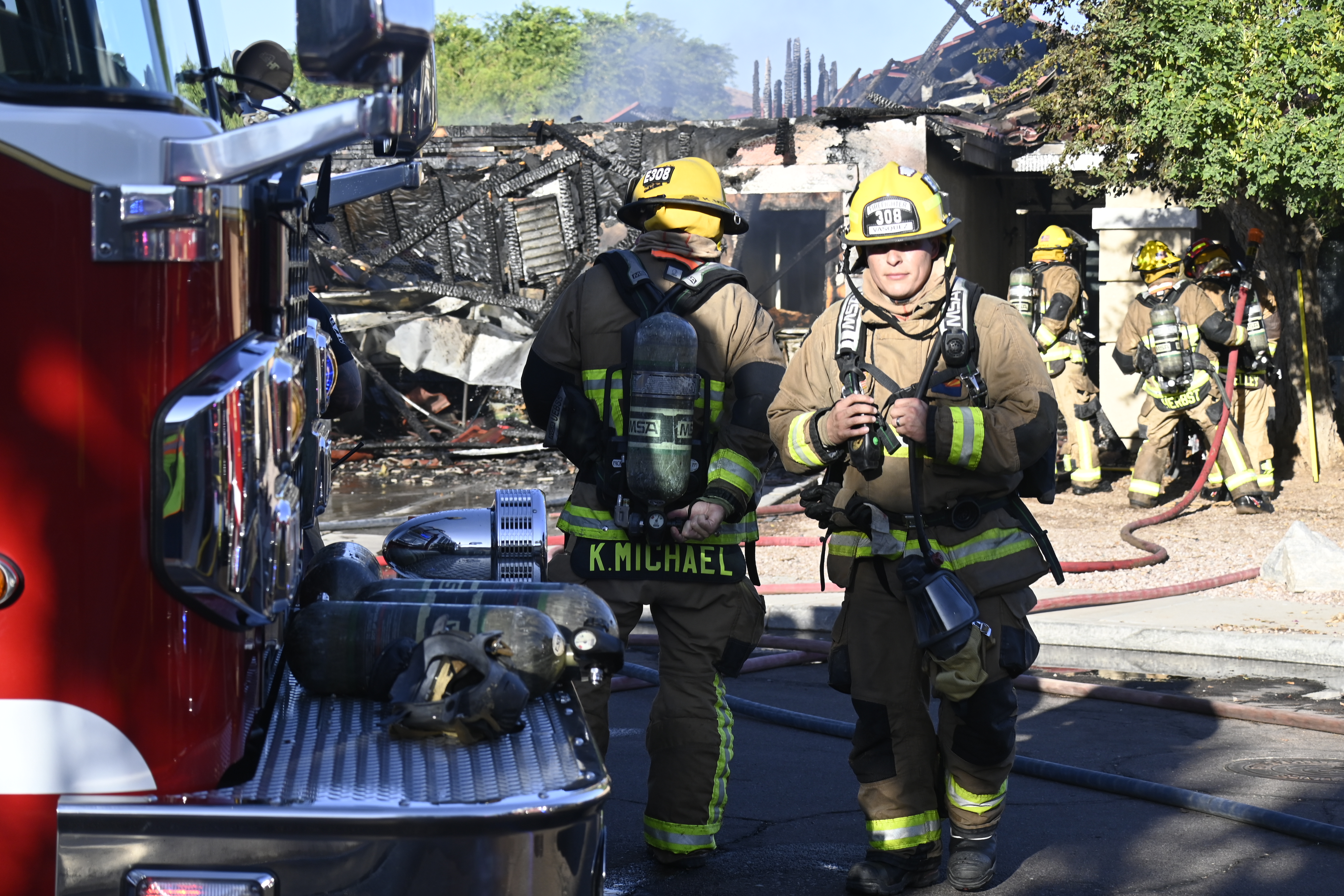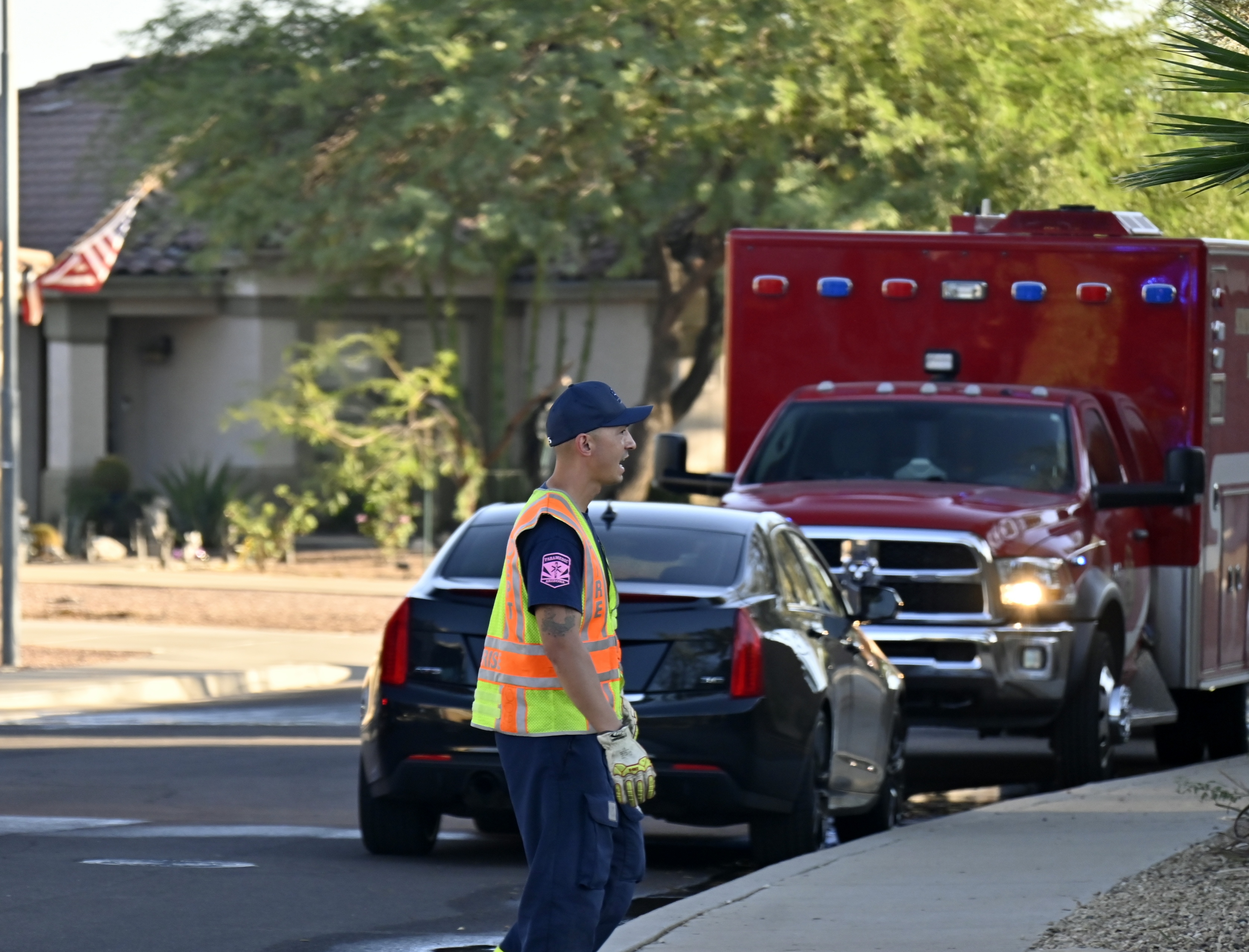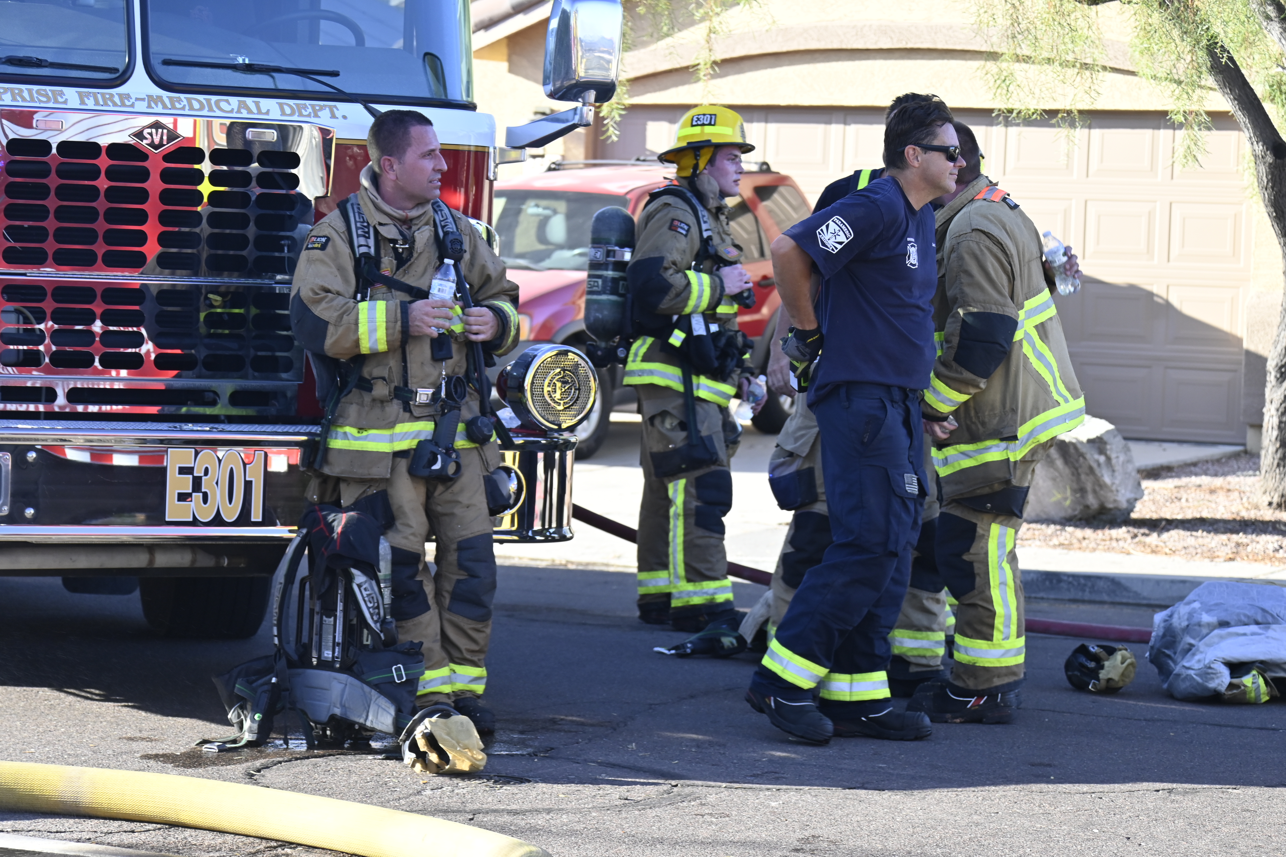 10/14/23 WF House Fire Surprise Young St Durbin Dr Started In The Garage Heavy Ext Into The House And Attic Units Went defensive Roof Collapse Surprise Sun City El Mirage Glendale AzFireMed Working