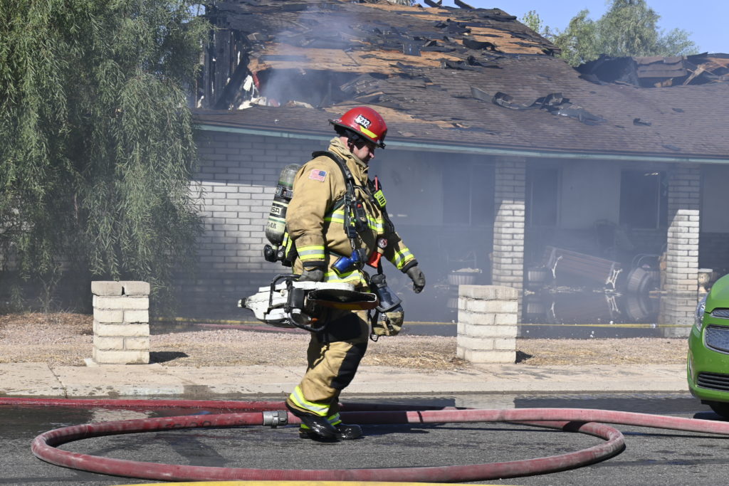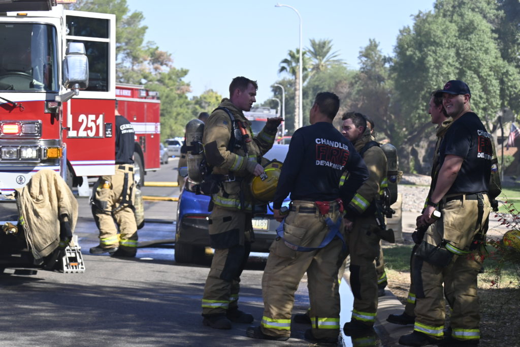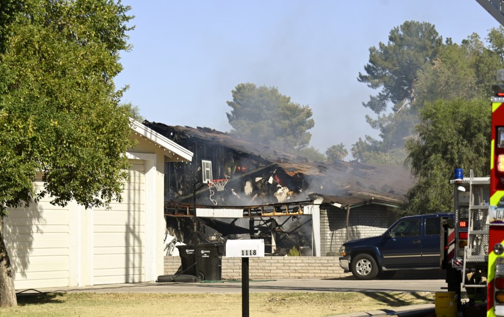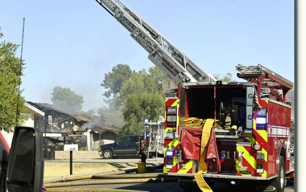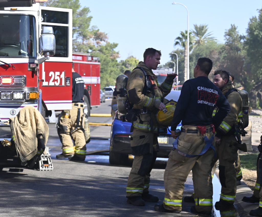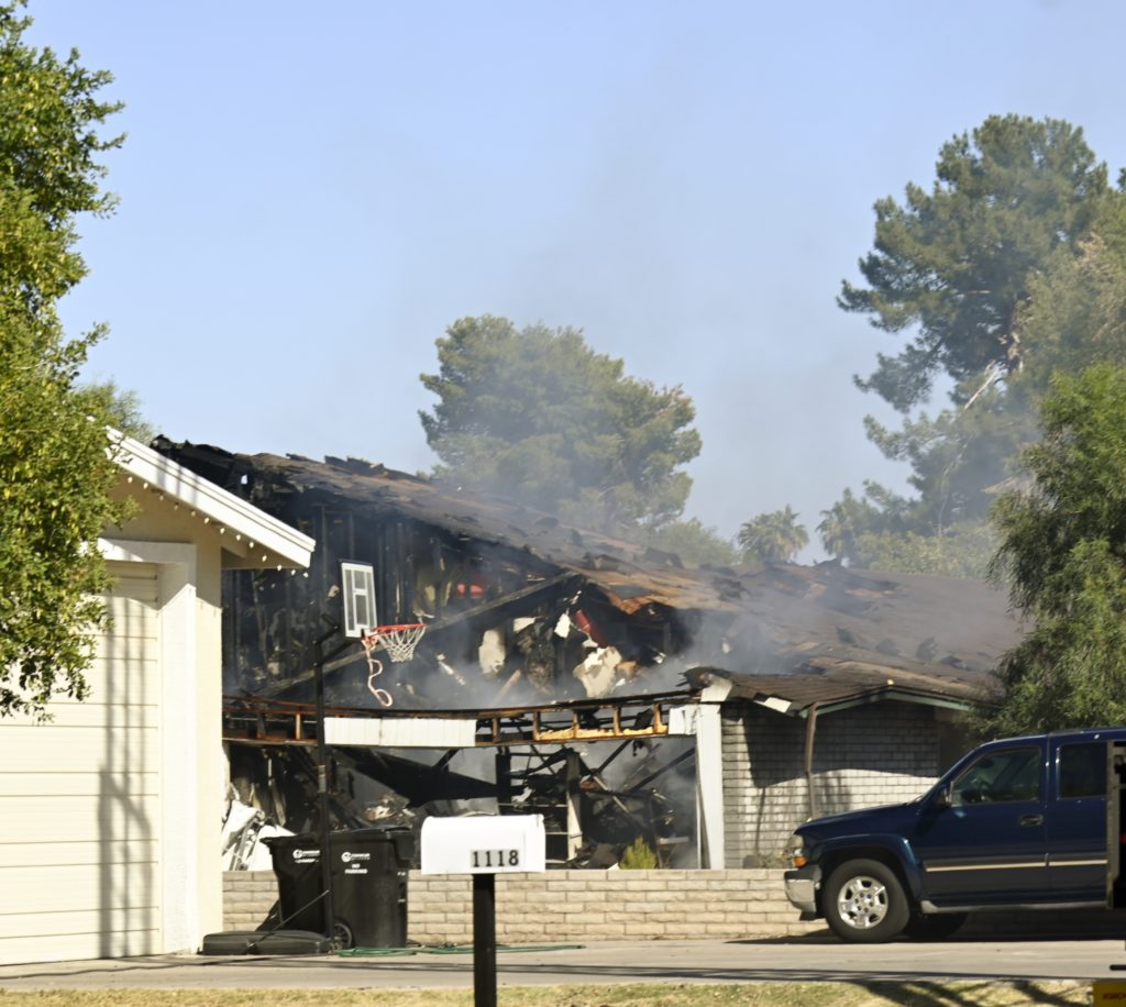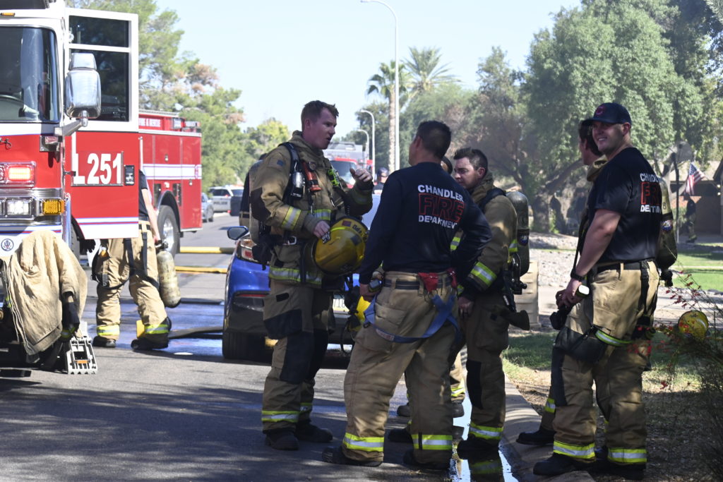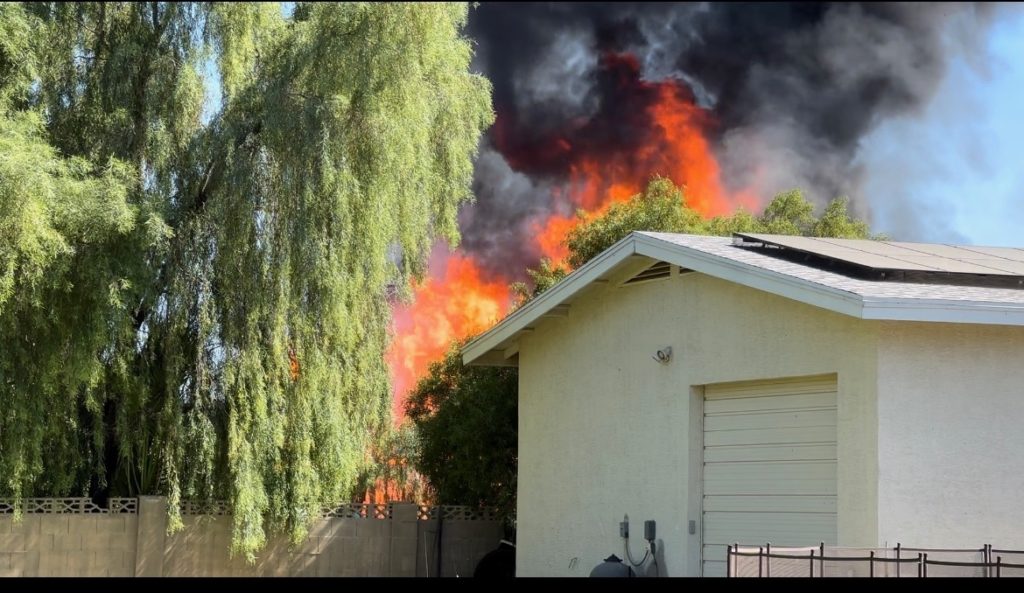 10/18/23 First Alarm Chandler N Senate E Commonwealth St House Fire Started In The Garage Heavy Ext Into The House And Attic Roof Collapse Units When Defensive Hoarding Conditions Chandler Gilbert Mesa AzFiremed Phoenix Working