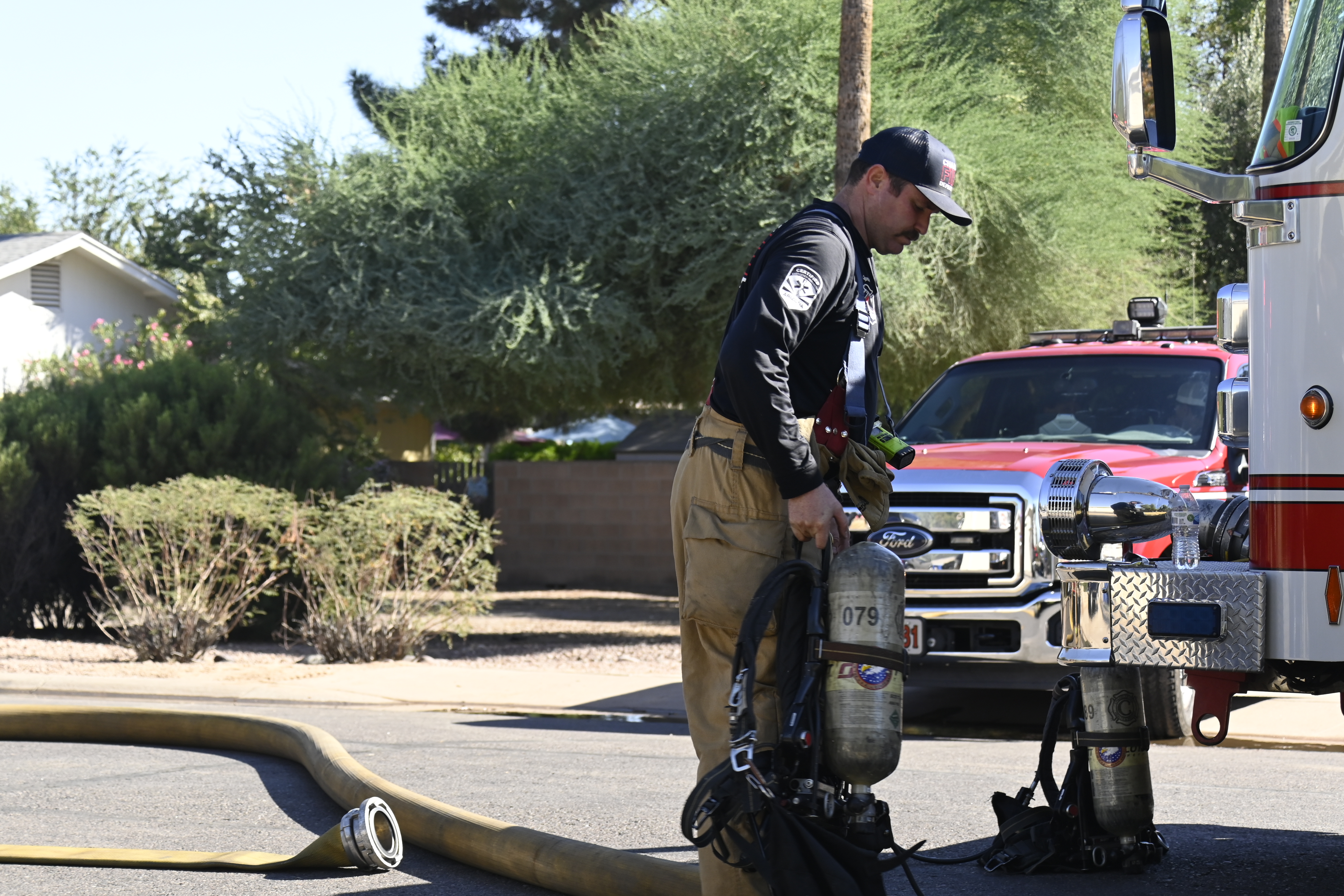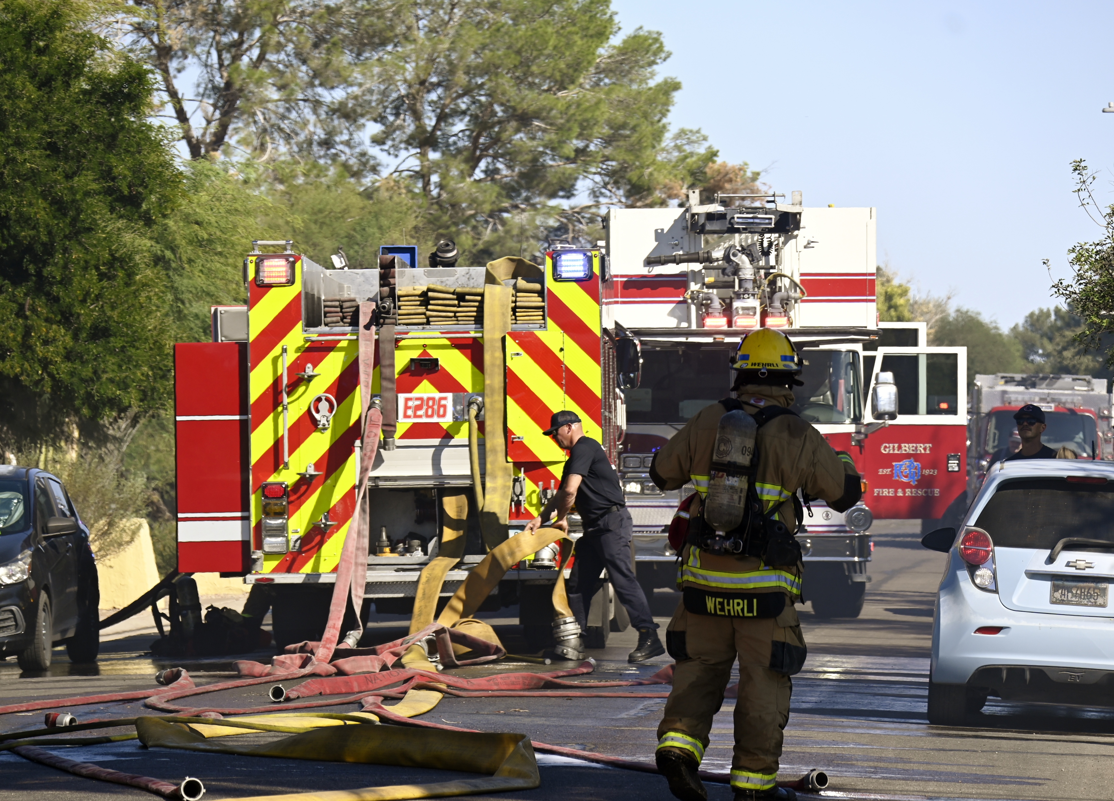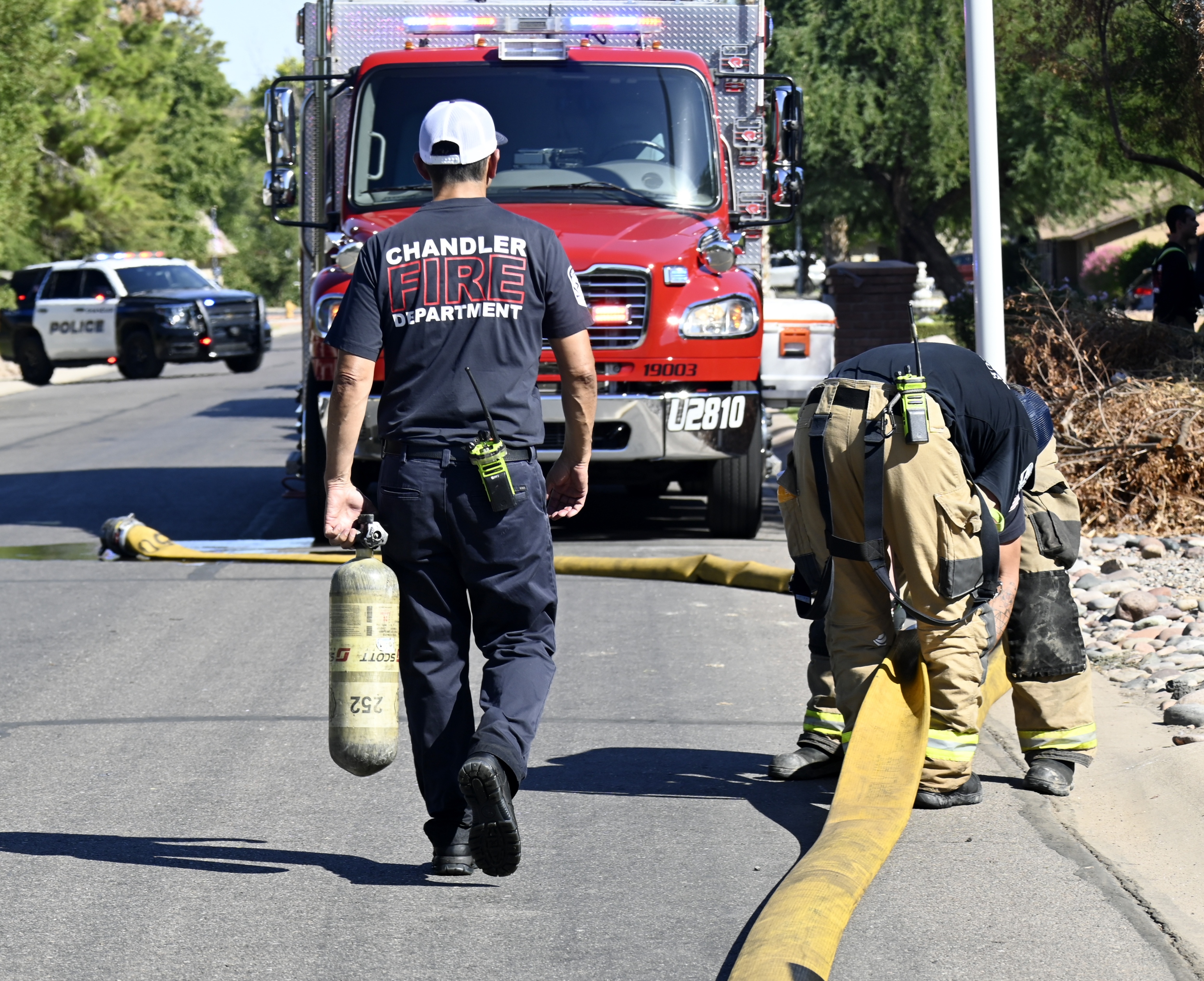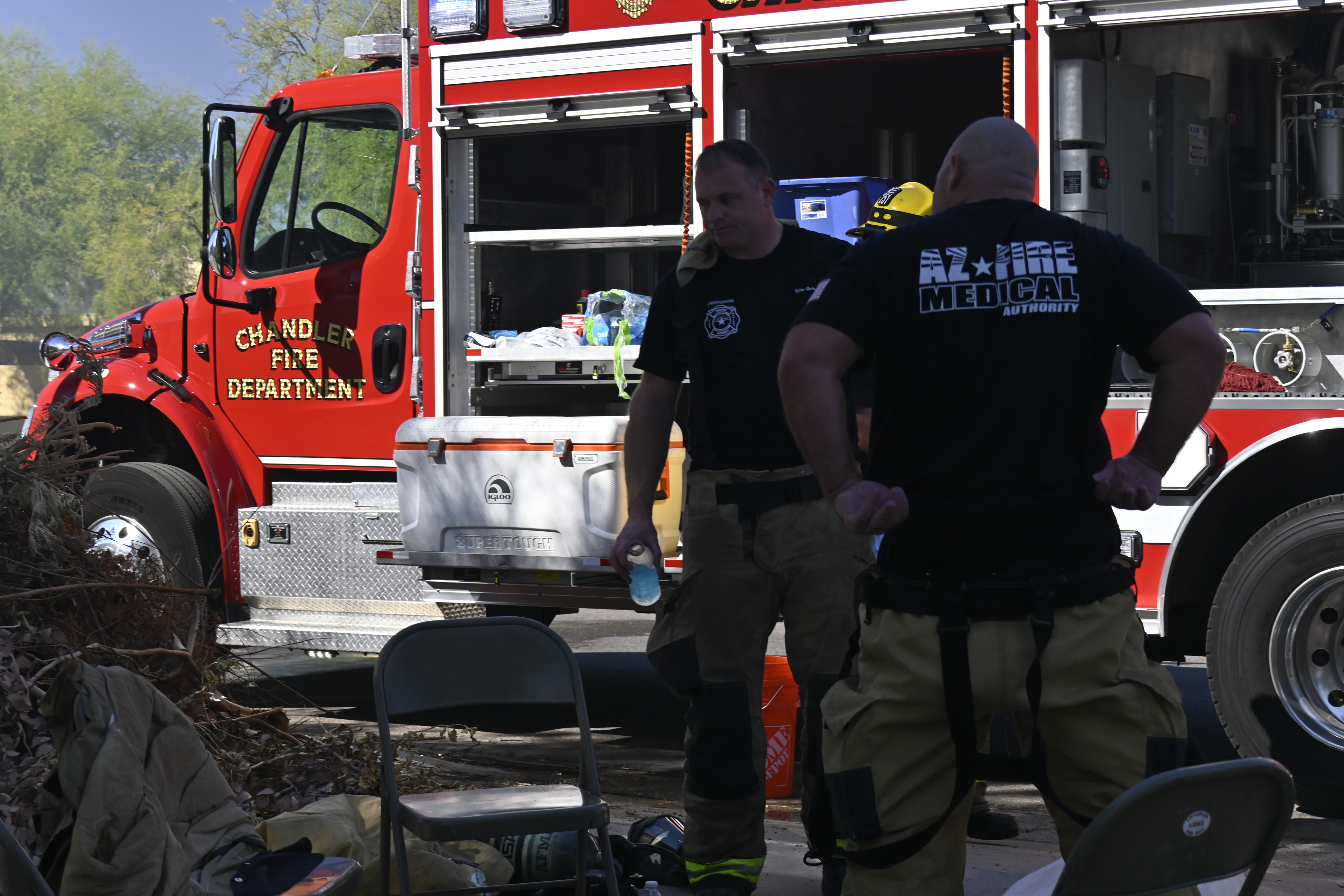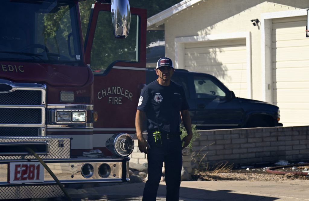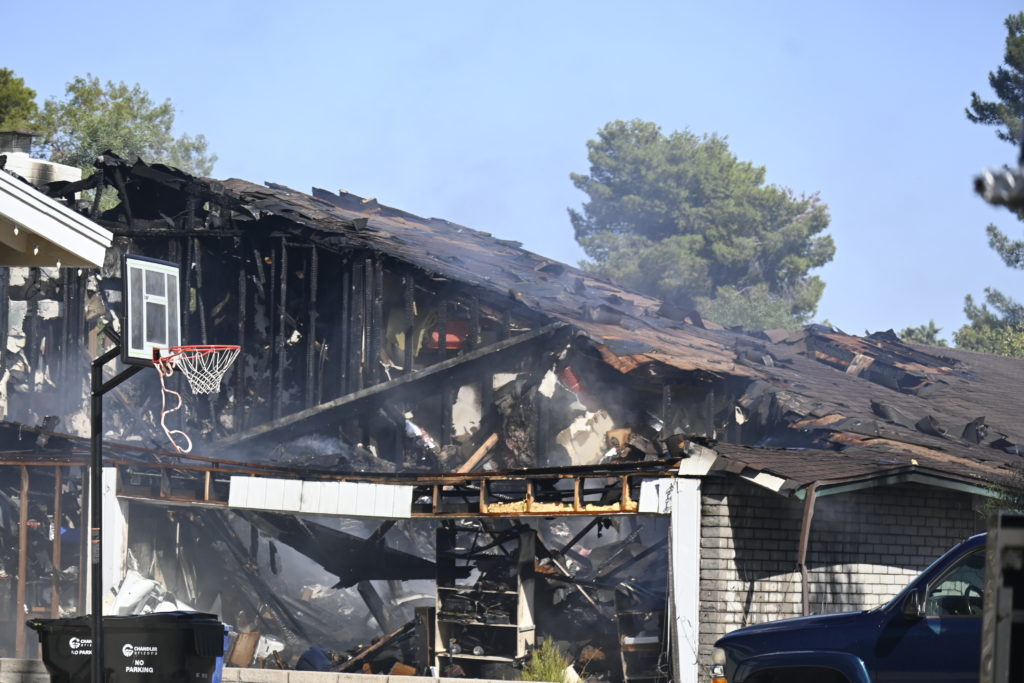 10/18/23 First Alarm Chandler N Senate E Commonwealth St House Fire Started In The Garage Heavy Ext Into The House And Attic Roof Collapse Units When Defensive Hoarding Conditions Chandler Gilbert Mesa AzFiremed Phoenix Working