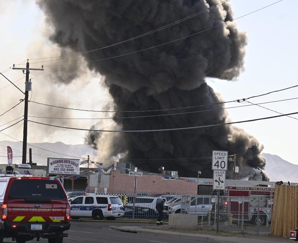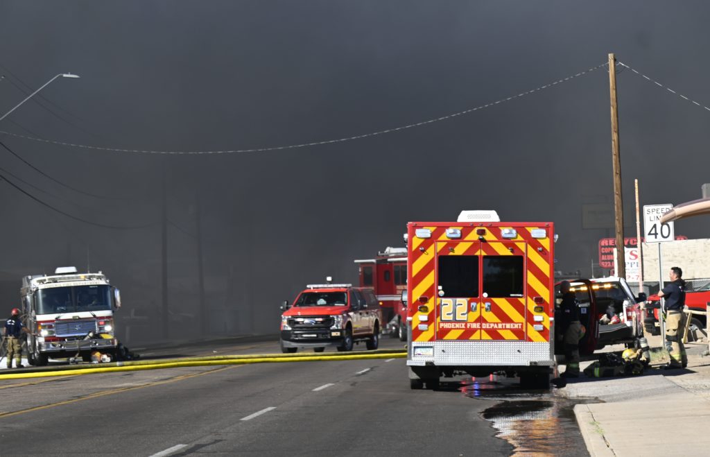 10/28/23 Third Alarm Phoenix S 7th Ave W Magnolia St Two Story Comm Bld Fire Thur-Out Defensive Attack Phoenix Tolleson Tempe Glendale Scottsdale Working