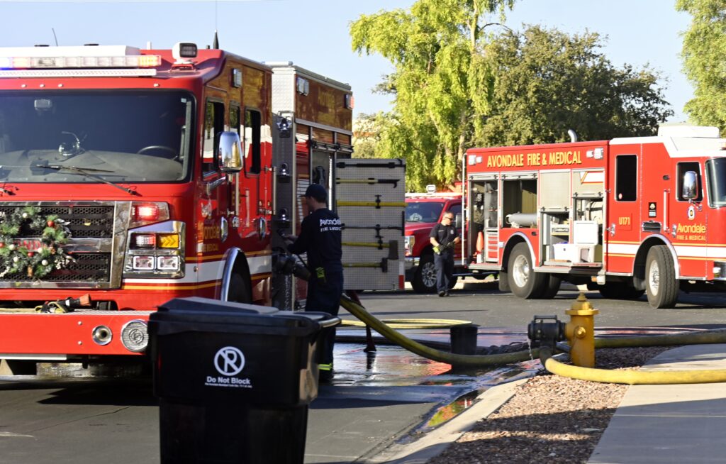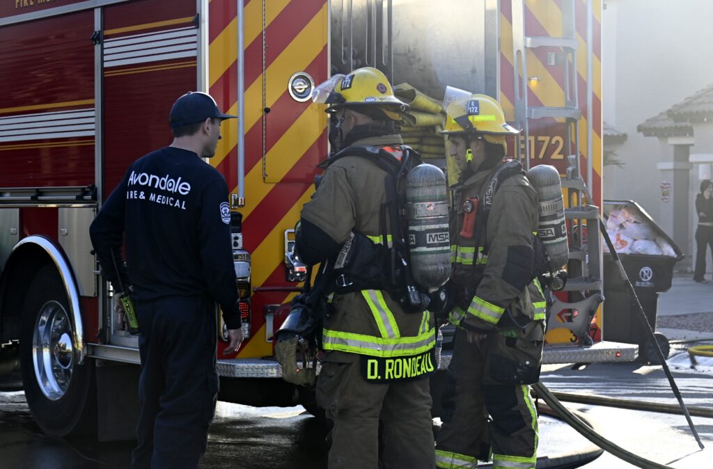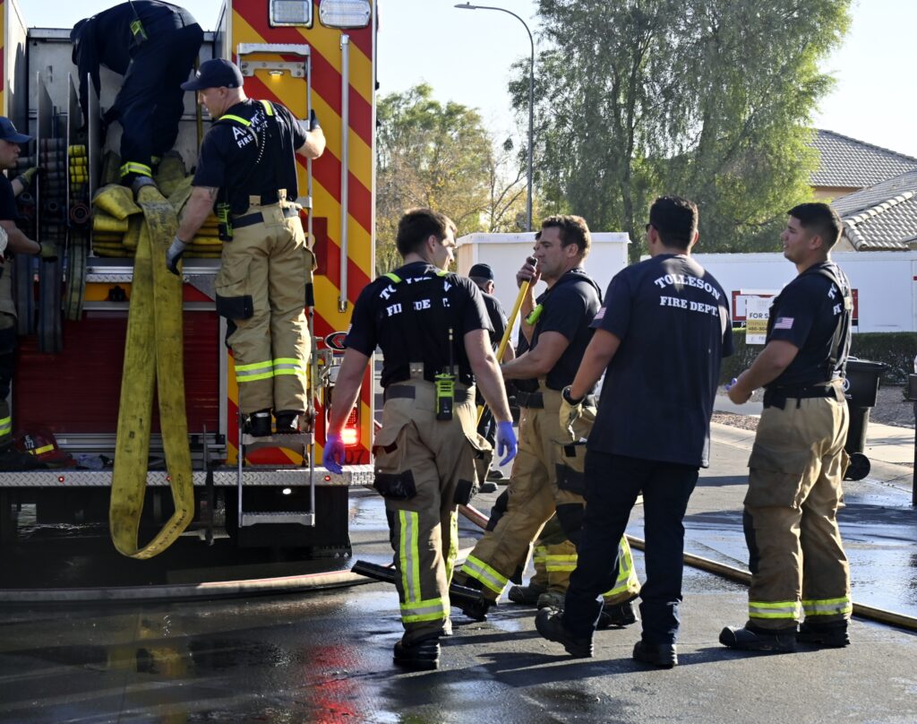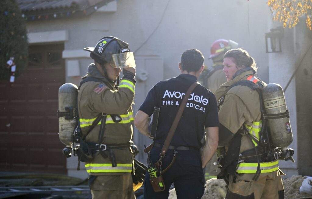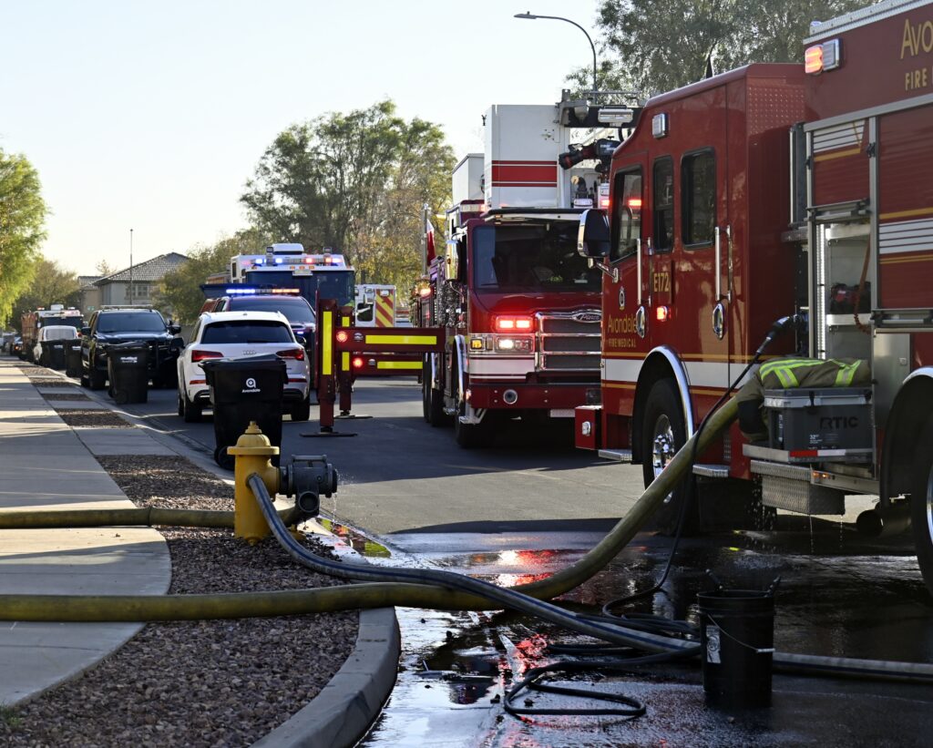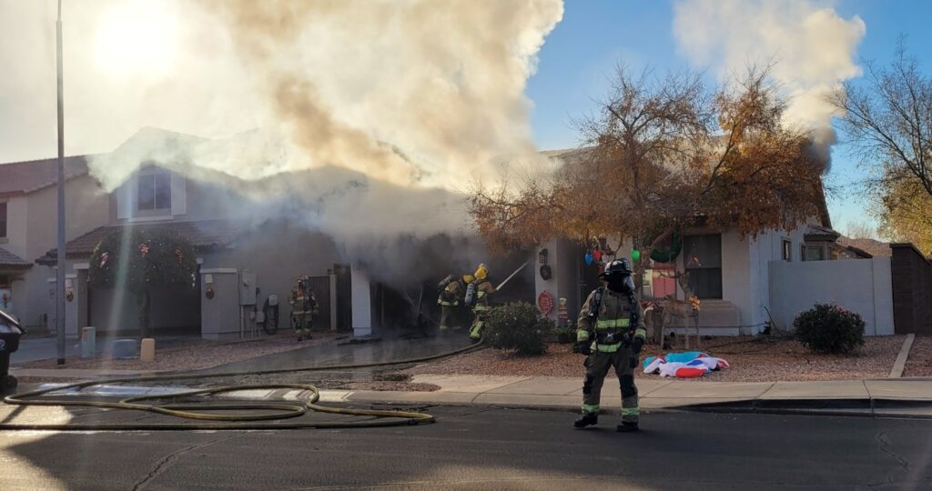 12/03/24 WF Avondale N 106th Ln W La Reata Ave House Fire Heavy Fire Conditions In The Garage No Ext The Bothers And Sisters Did A Nice Job Avondale Tolleson Phoenix Goodyear Working