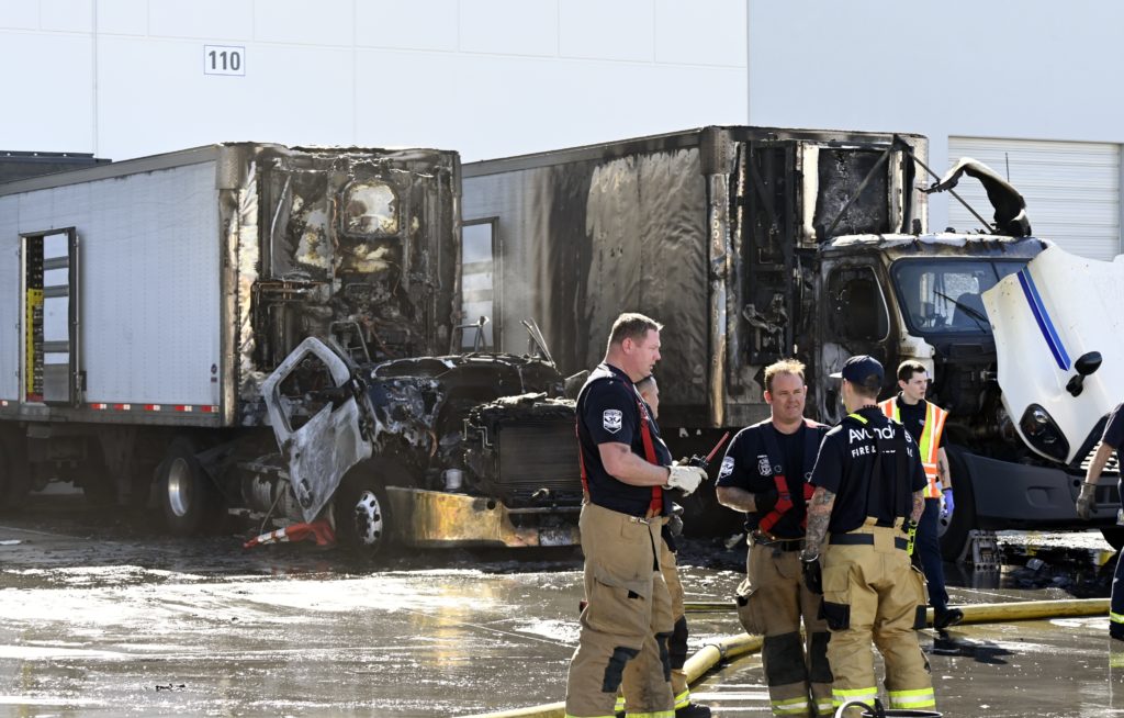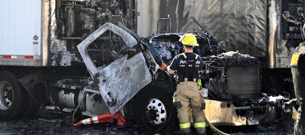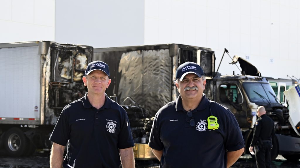 2/05/23 Avondale Two Semi-Trailer Trucks Up Again A Commercial Bld No Ext To The Bld 119th Ave W Corporate Dr Avondale & Tolleson Working