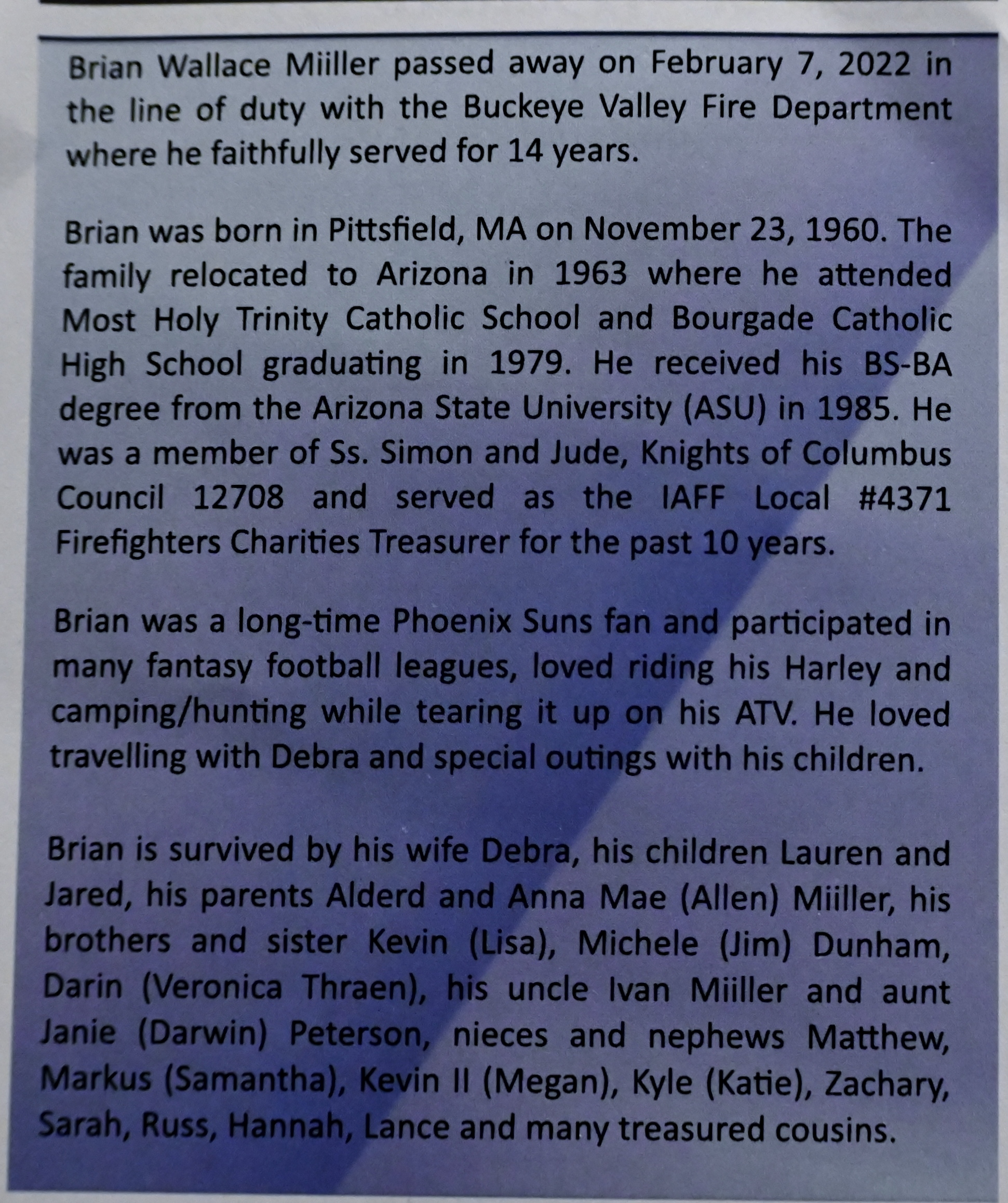 2/17/22 BUCKEYE VALLEY DIST. LODD FIREFIGHTER BRIAN WALLACE MIILLER DEPARTMENT FUNERAL