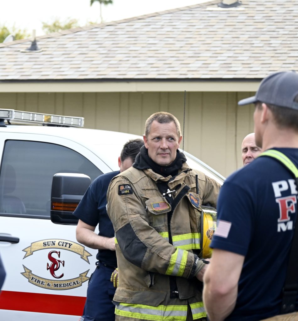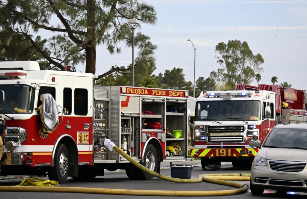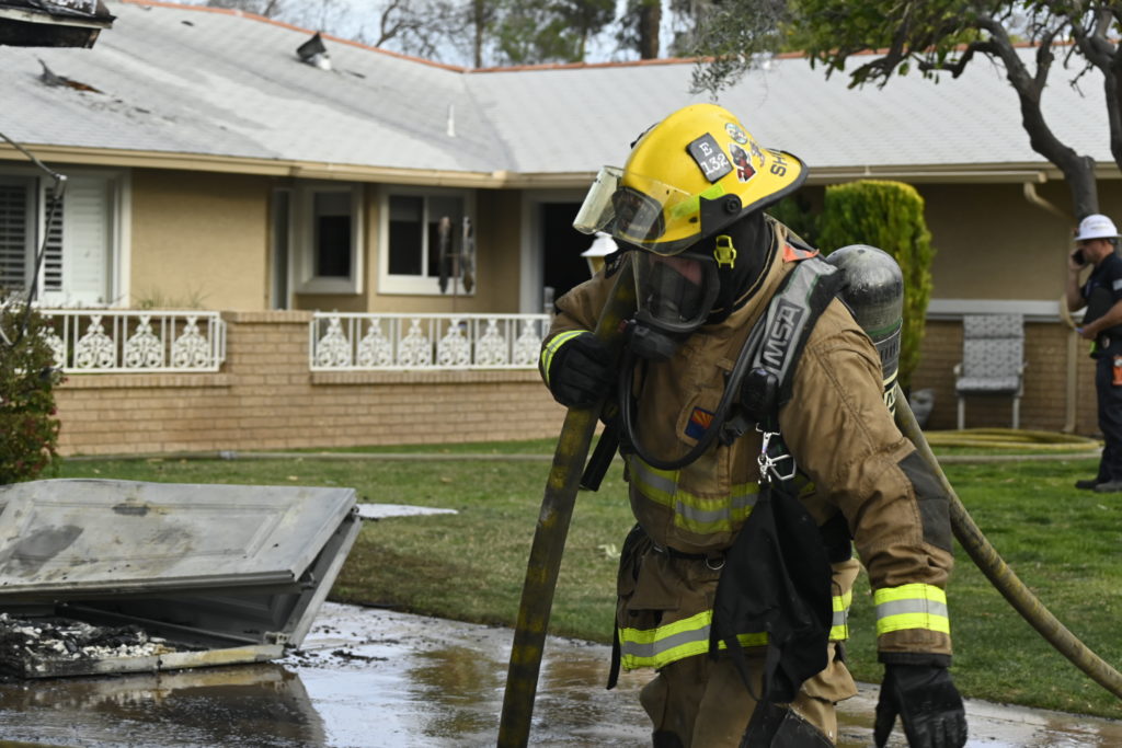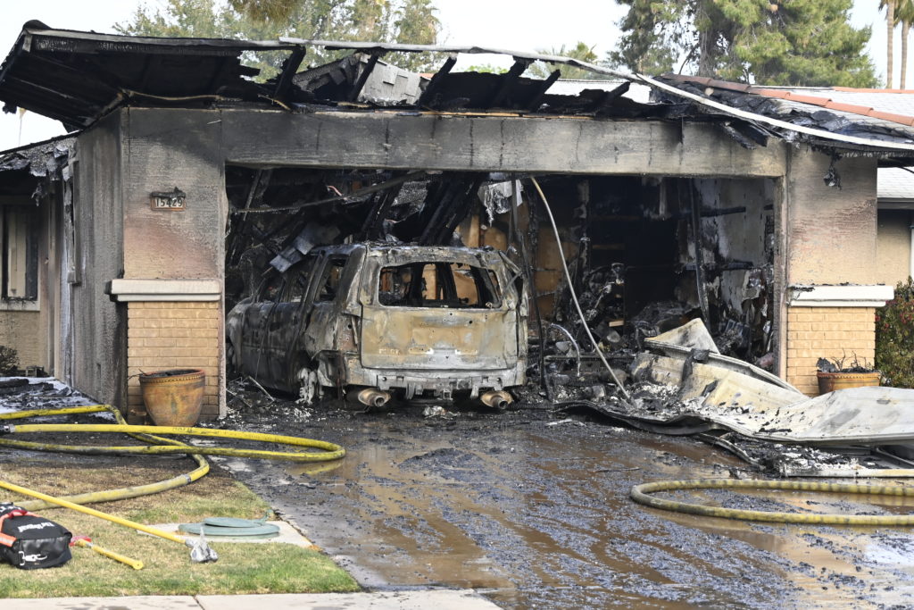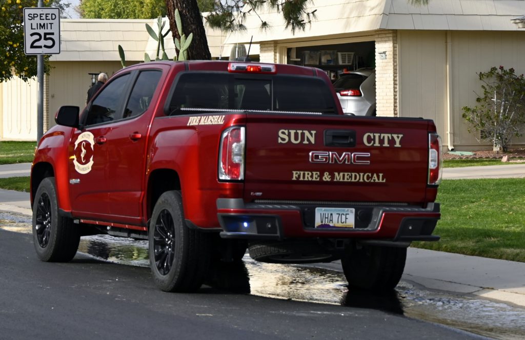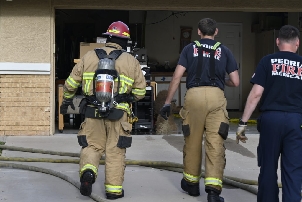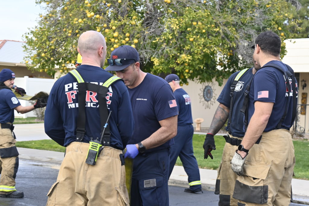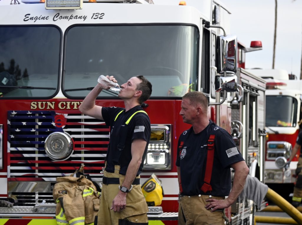 3/06/23 WF Suncity One Story Duplex Fire In One Garage With Heavy Ext Into The Unit The Attic And Thur The Roof Ext Into A Exp Garage Units When Defensive For A While The Units Did A Great Job Keeping It Out Of The Other Duplex Suncity & Peoria Glendale Working Cameo Dr Sandstone Dr