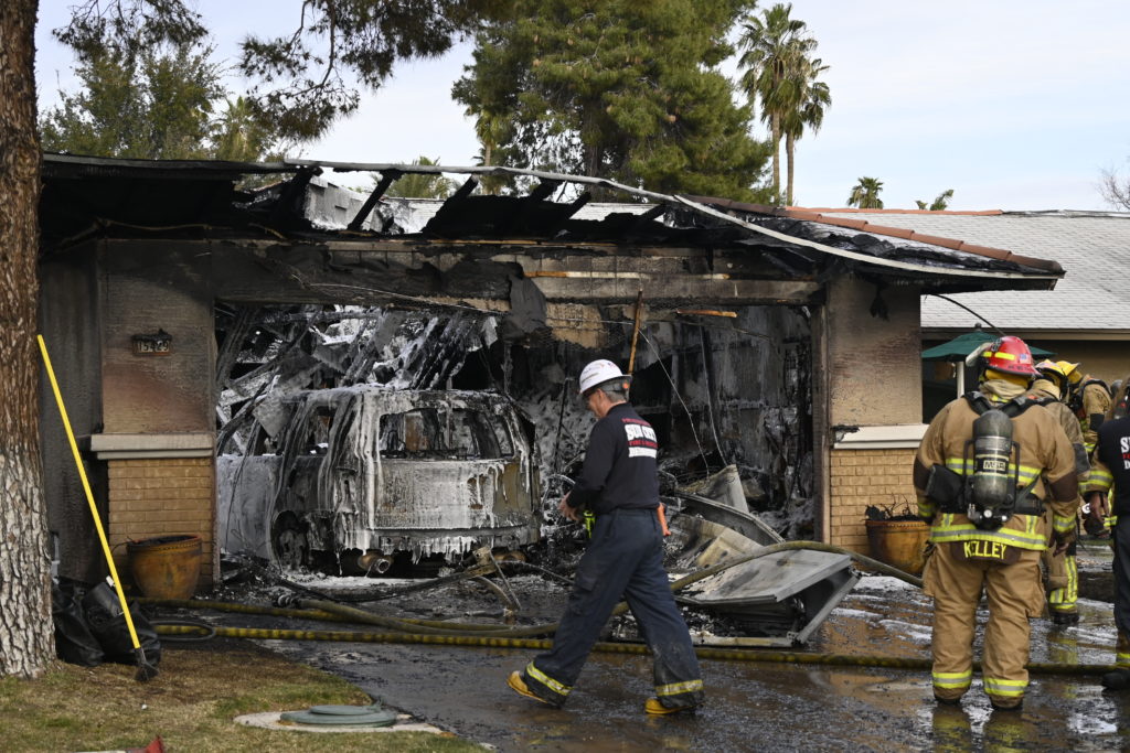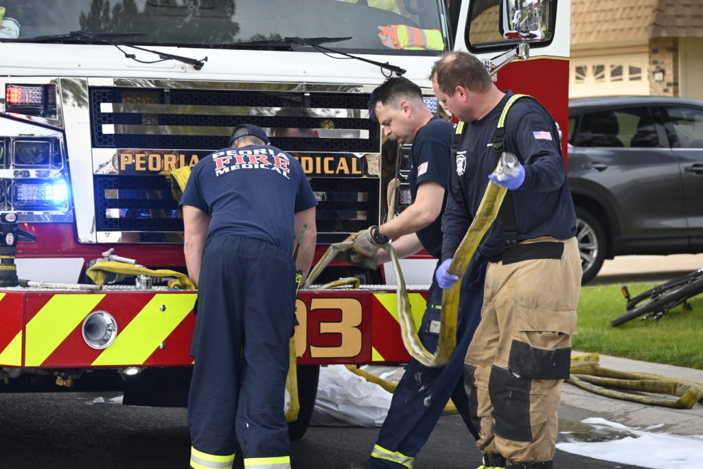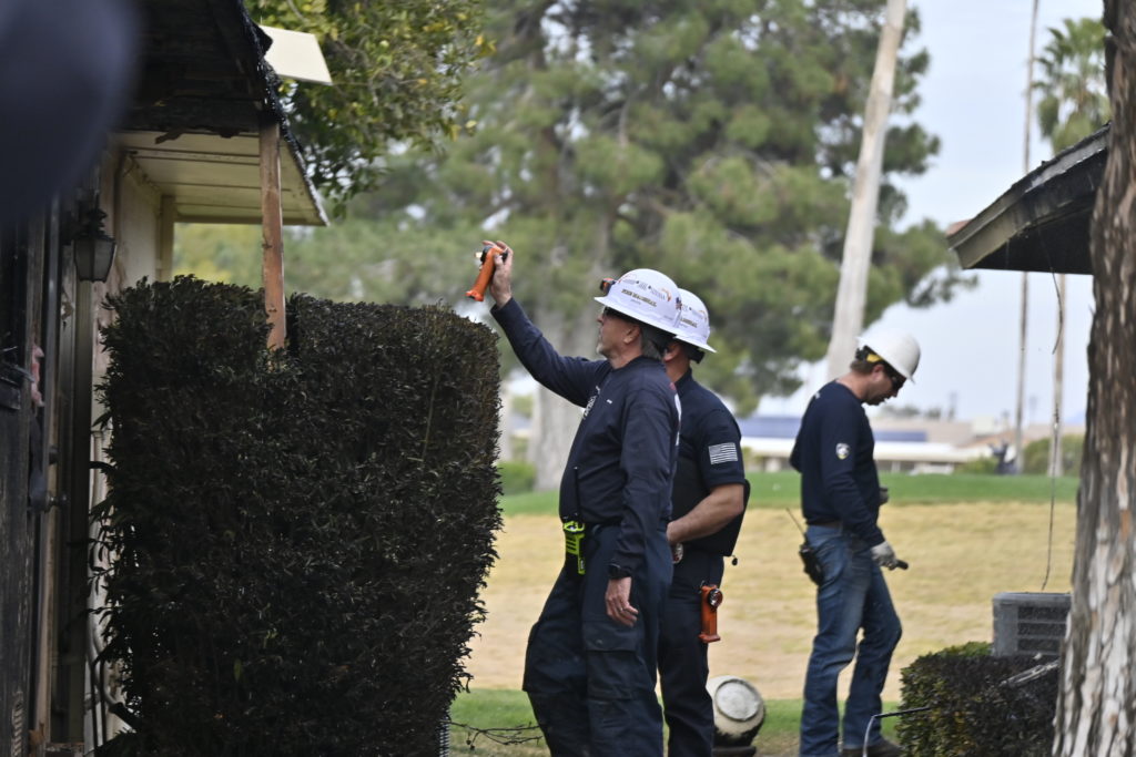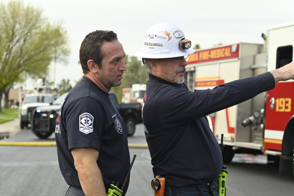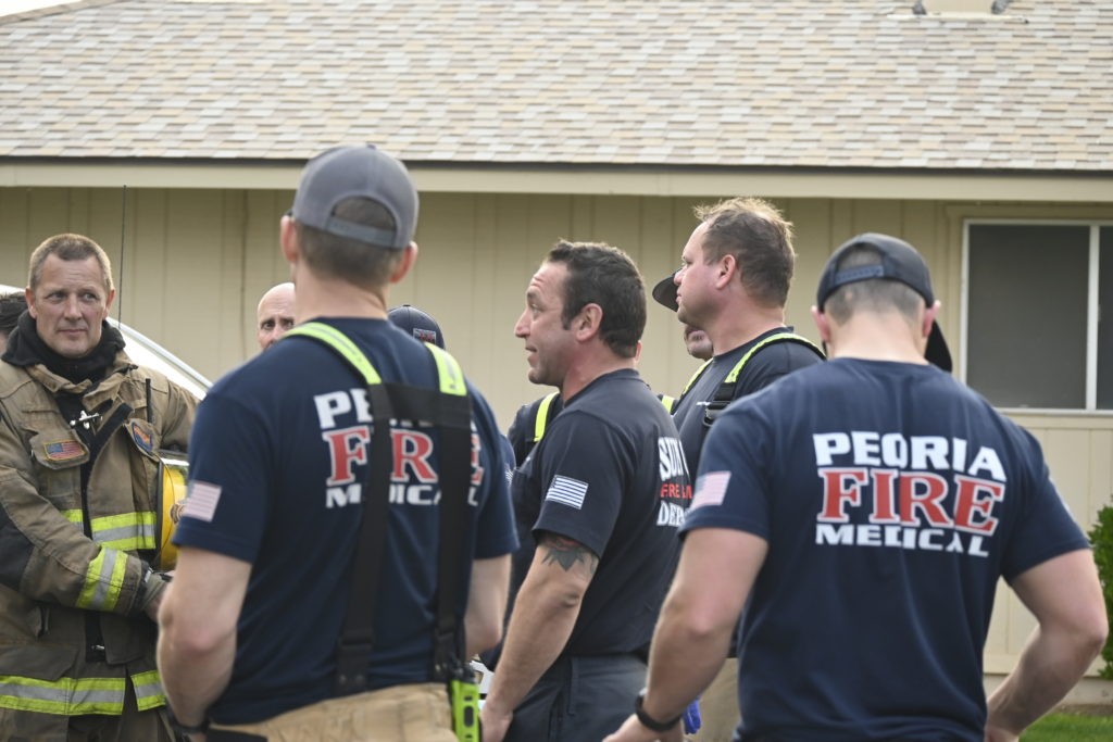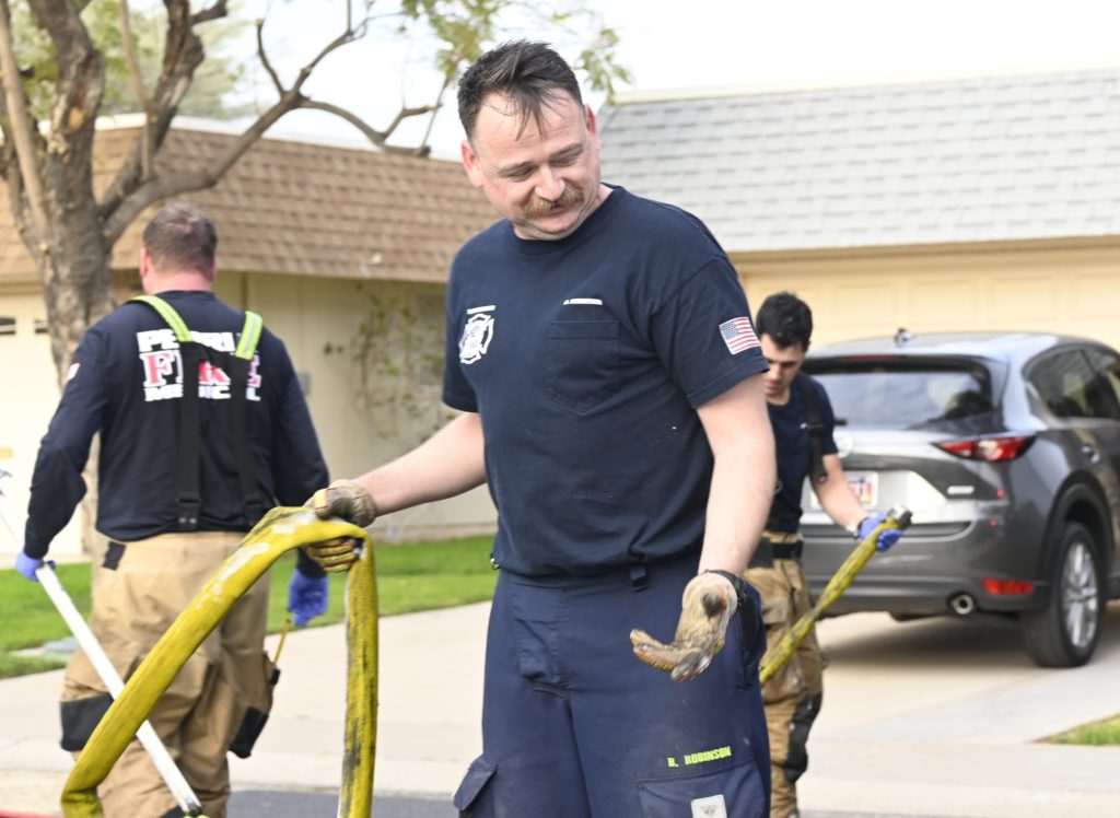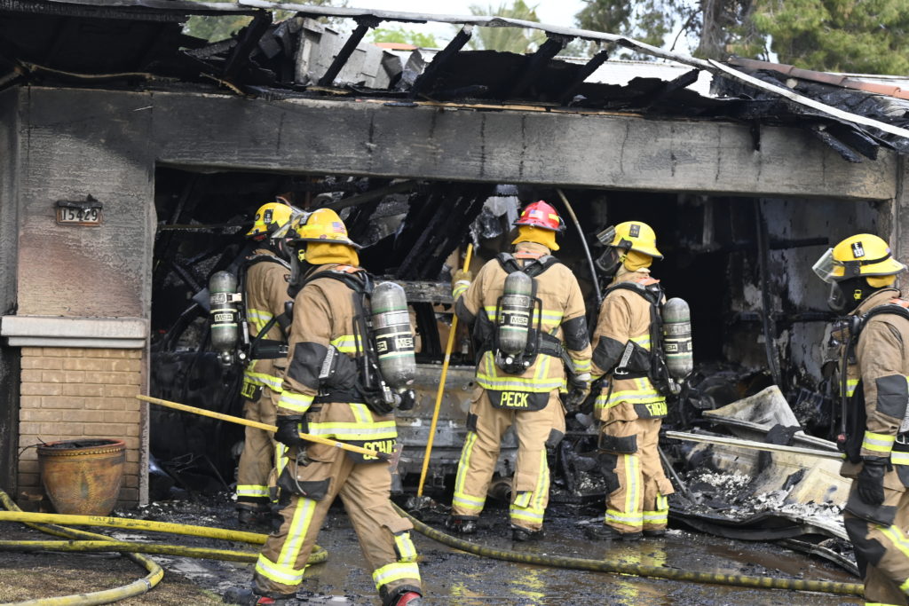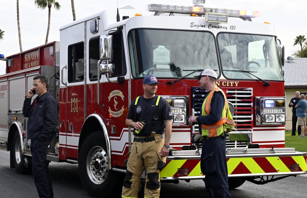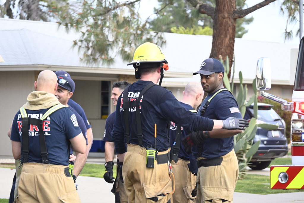 3/06/23 WF Suncity One Story Duplex Fire In One Garage With Heavy Ext Into The Unit The Attic And Thur The Roof Ext Into A Exp Garage Units When Defensive For A While The Units Did A Great Job Keeping It Out Of The Other Duplex Suncity & Peoria Glendale Working Cameo Dr Sandstone Dr