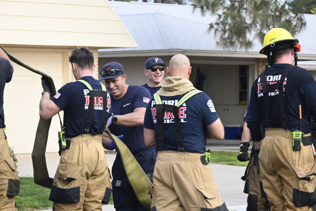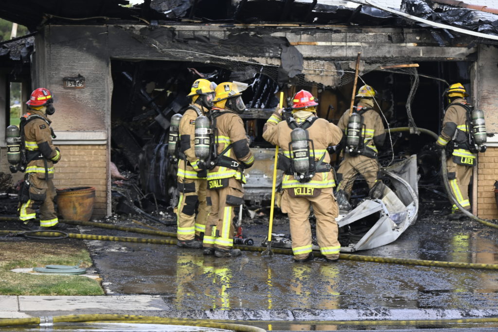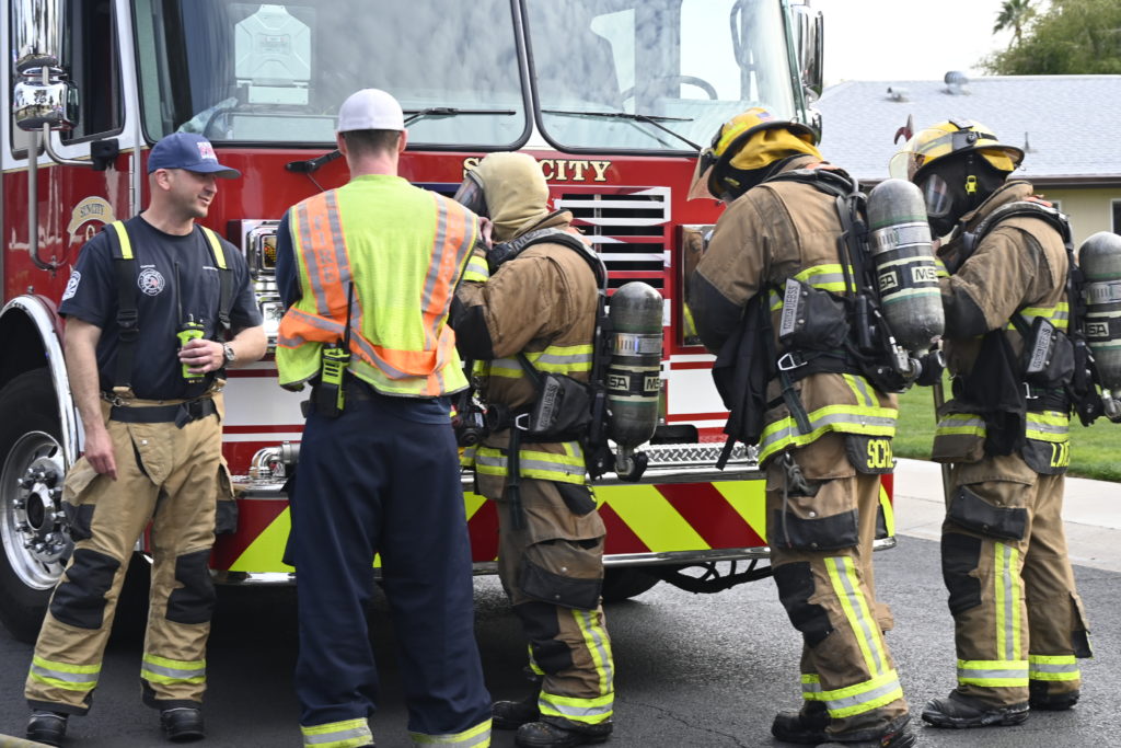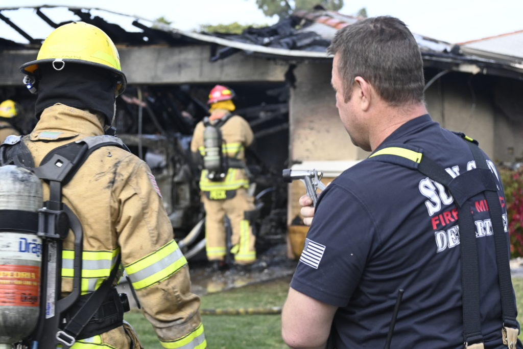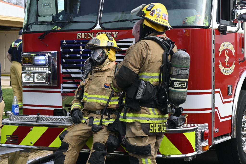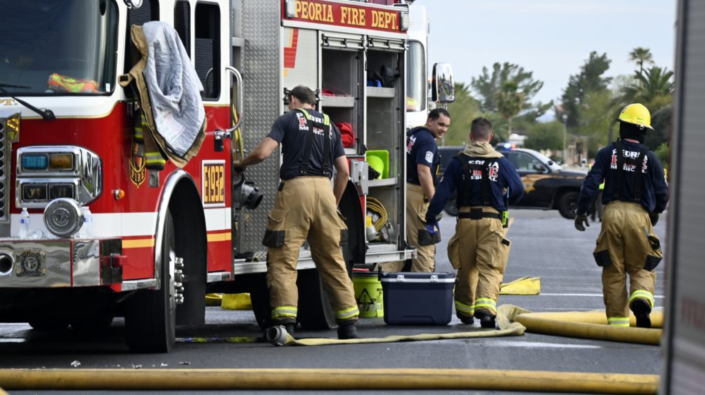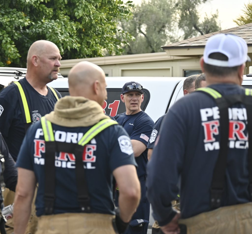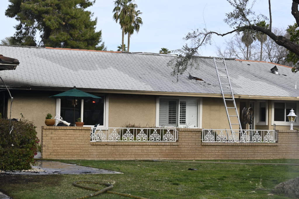 3/06/23 WF Suncity One Story Duplex Fire In One Garage With Heavy Ext Into The Unit The Attic And Thur The Roof Ext Into A Exp Garage Units When Defensive For A While The Units Did A Great Job Keeping It Out Of The Other Duplex Suncity & Peoria Glendale Working Cameo Dr Sandstone Dr
