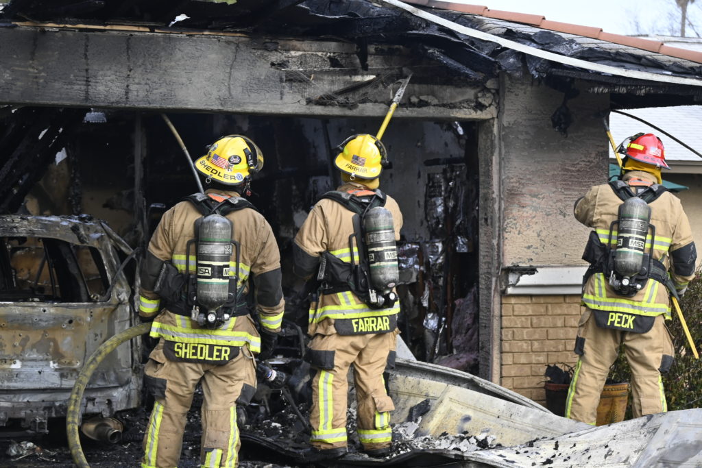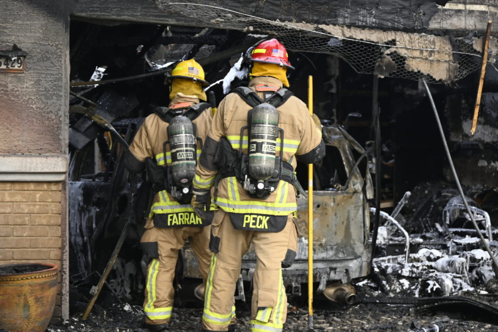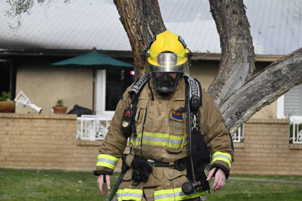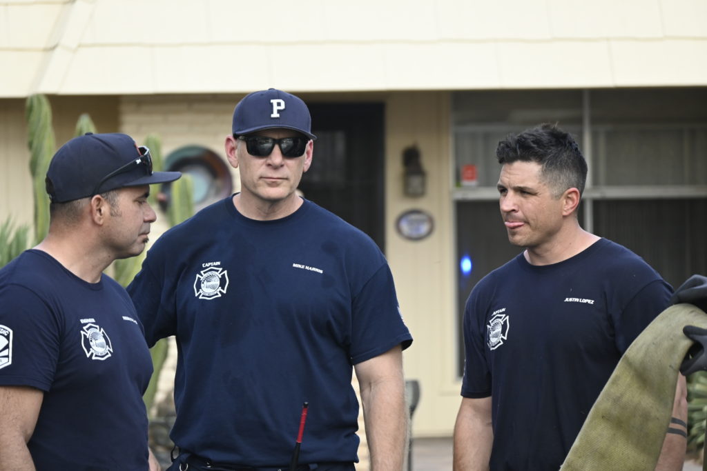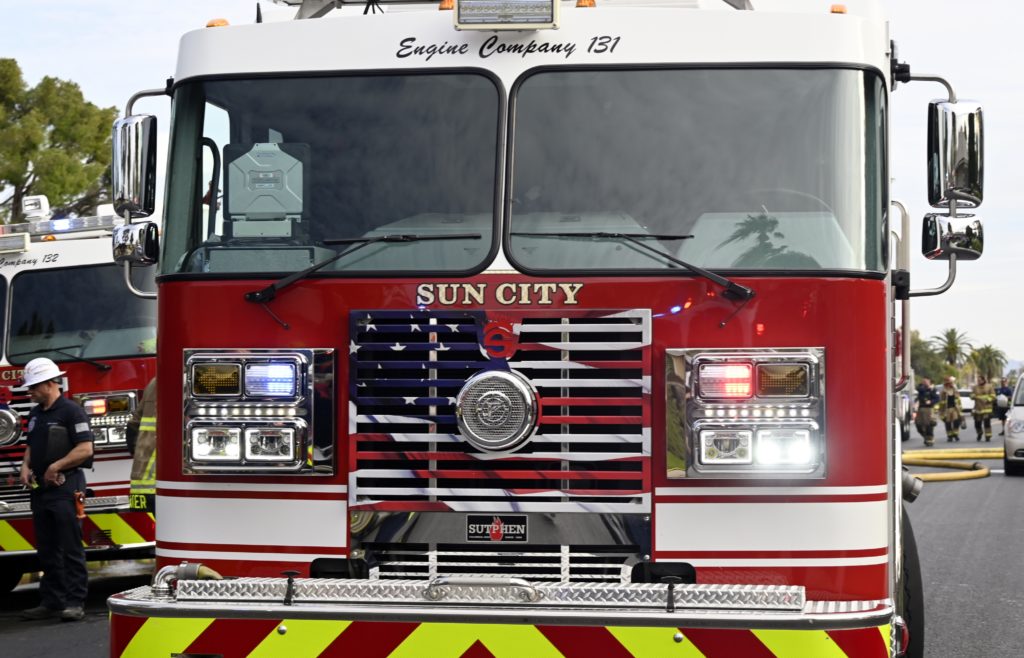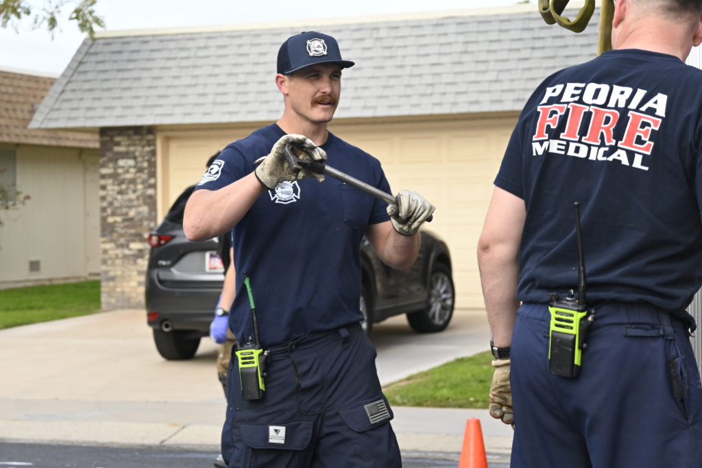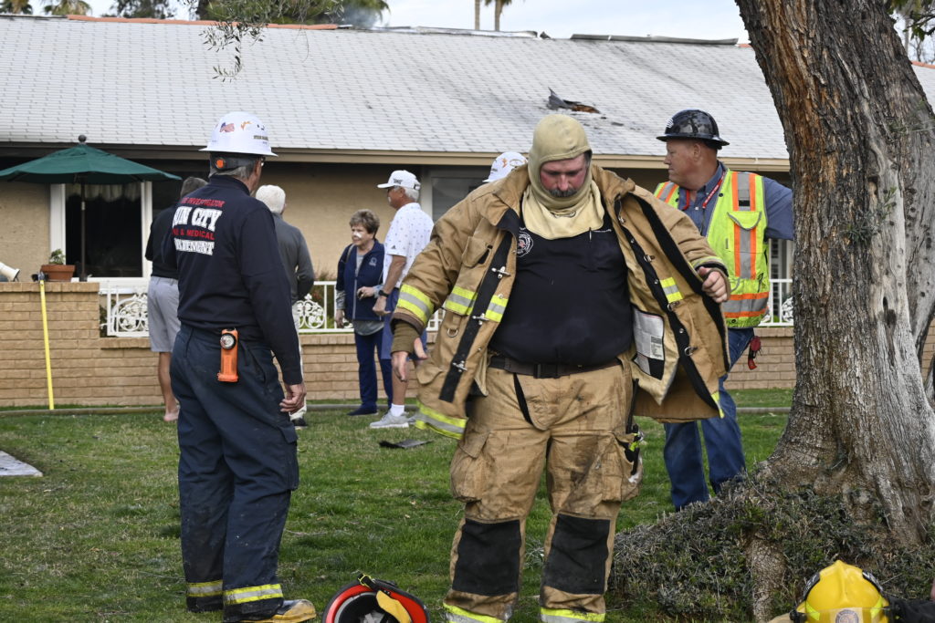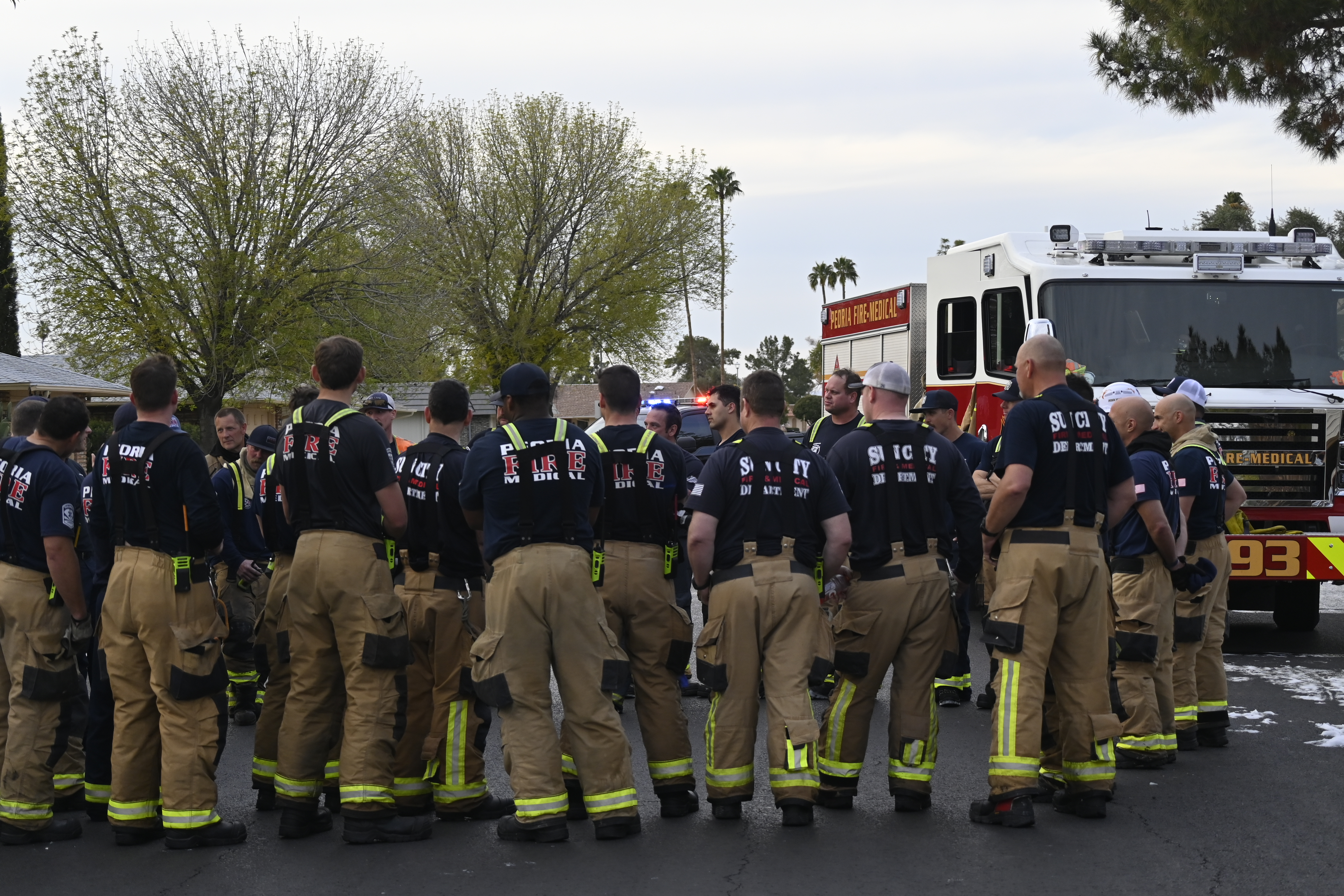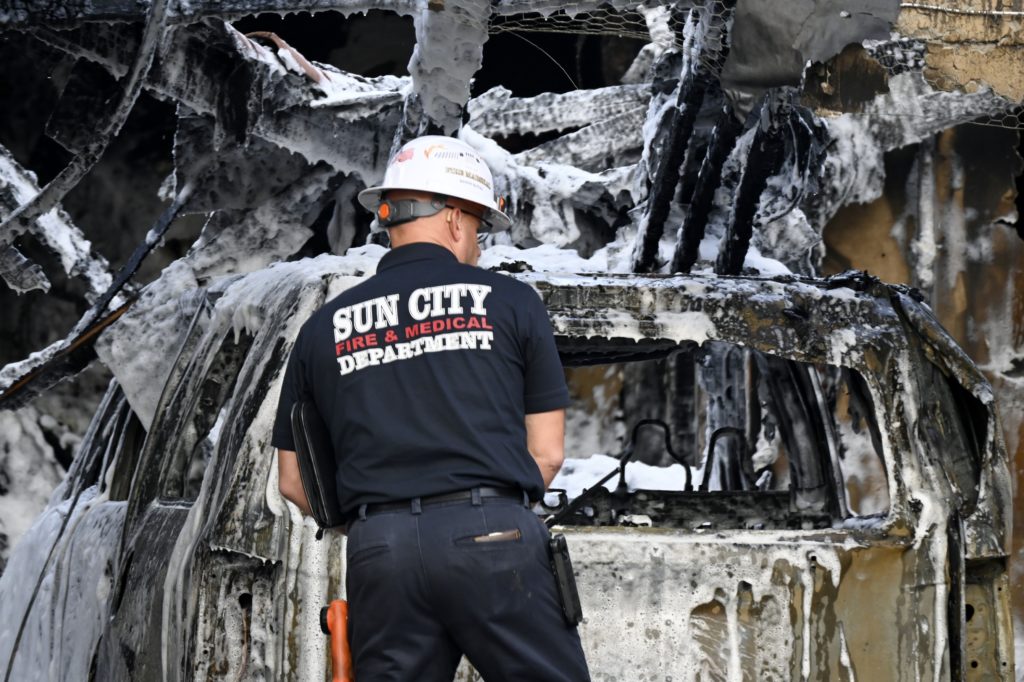 3/06/23 WF Suncity One Story Duplex Fire In One Garage With Heavy Ext Into The Unit The Attic And Thur The Roof Ext Into A Exp Garage Units When Defensive For A While The Units Did A Great Job Keeping It Out Of The Other Duplex Suncity & Peoria Glendale Working Cameo Dr Sandstone Dr