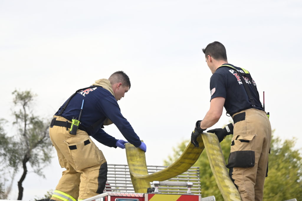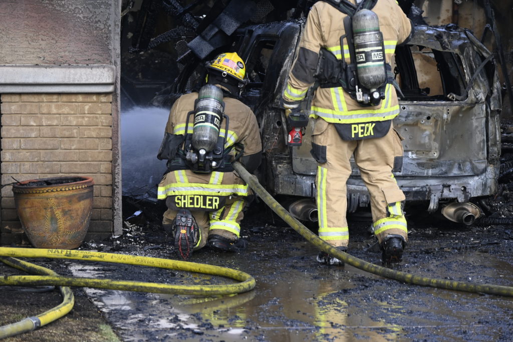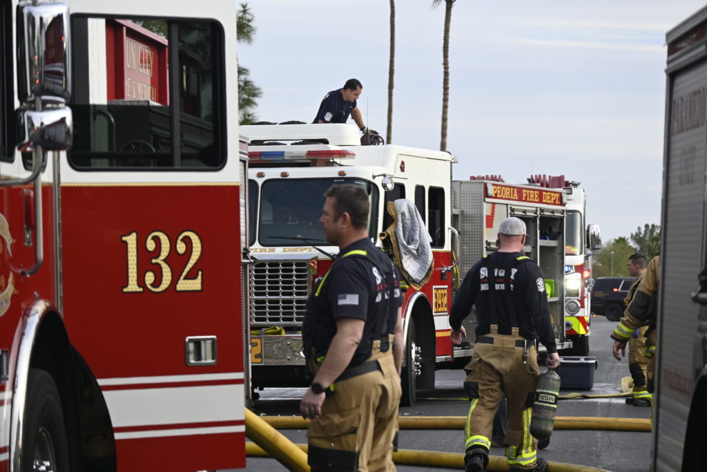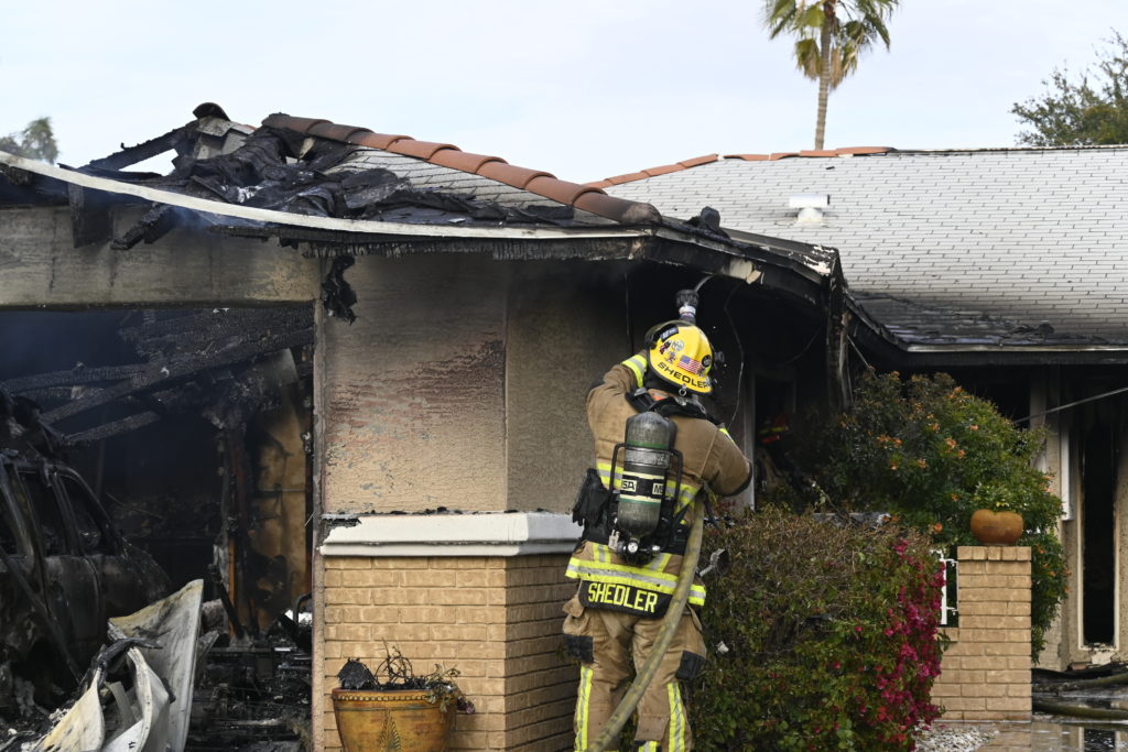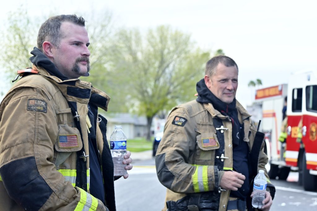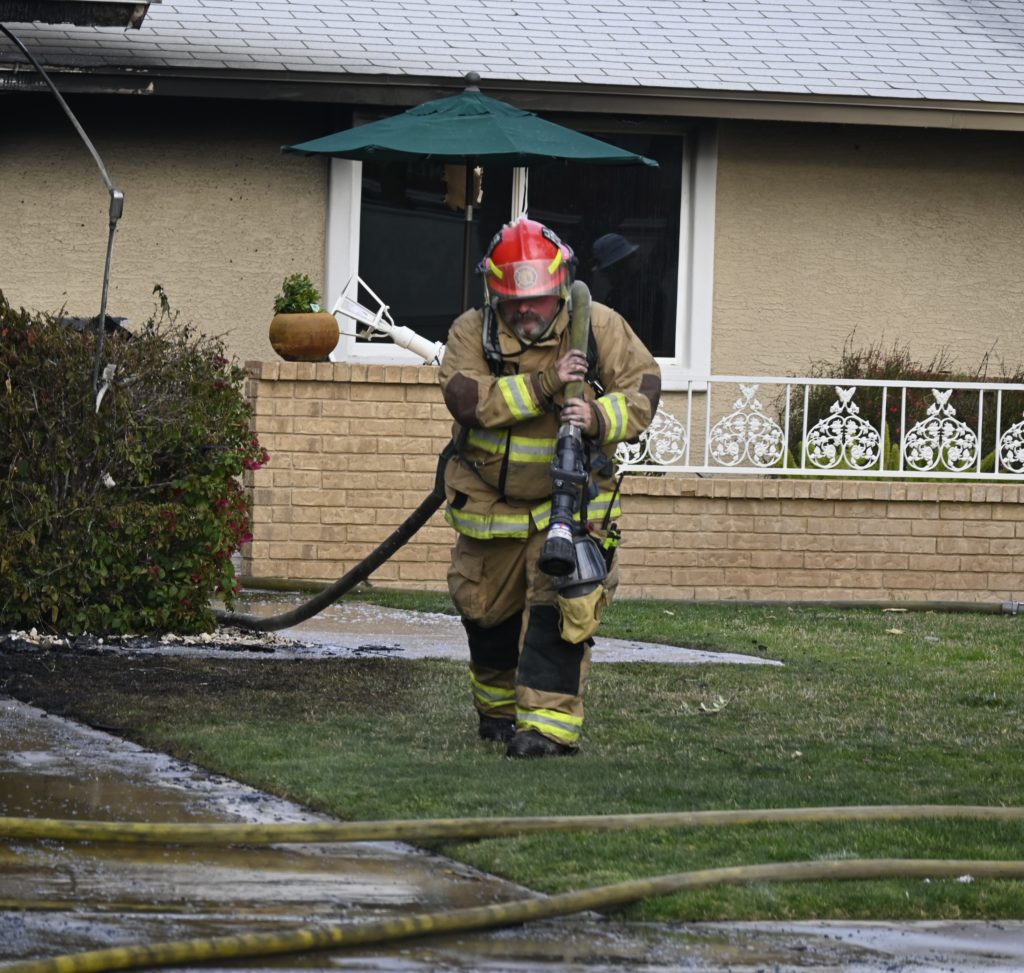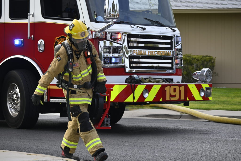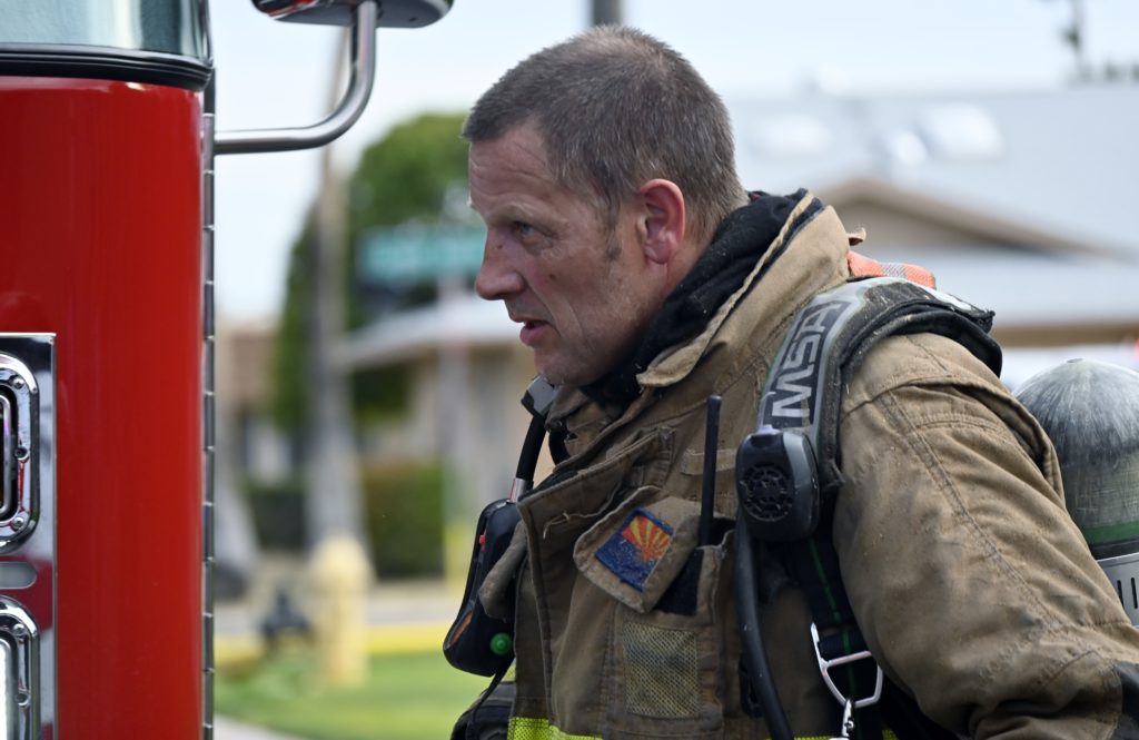 3/06/23 WF Suncity One Story Duplex Fire In One Garage With Heavy Ext Into The Unit The Attic And Thur The Roof Ext Into A Exp Garage Units When Defensive For A While The Units Did A Great Job Keeping It Out Of The Other Duplex Suncity & Peoria Glendale Working Cameo Dr Sandstone Dr