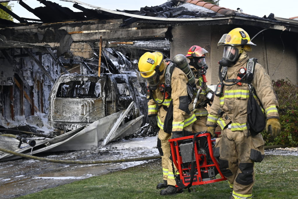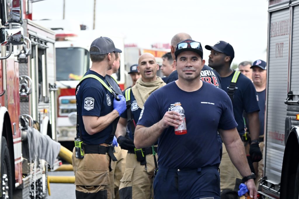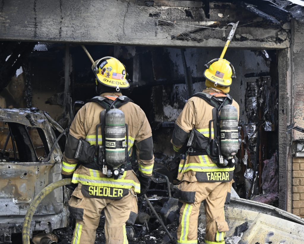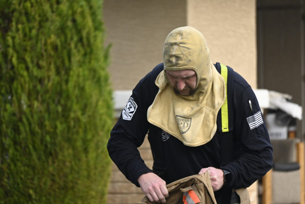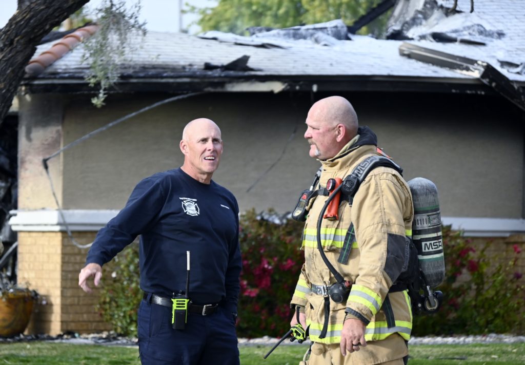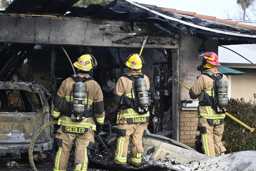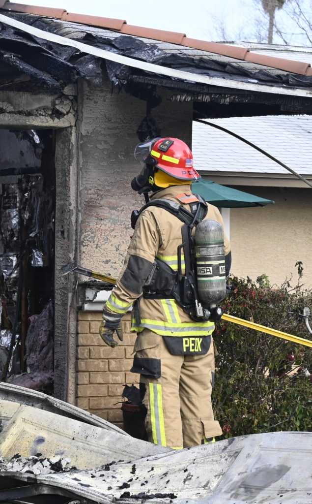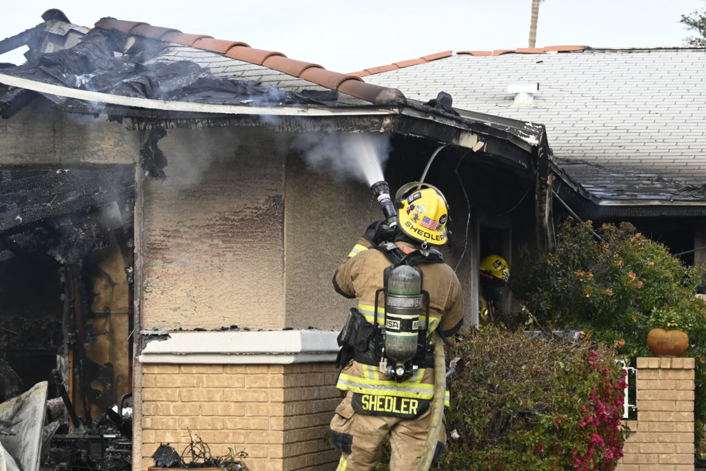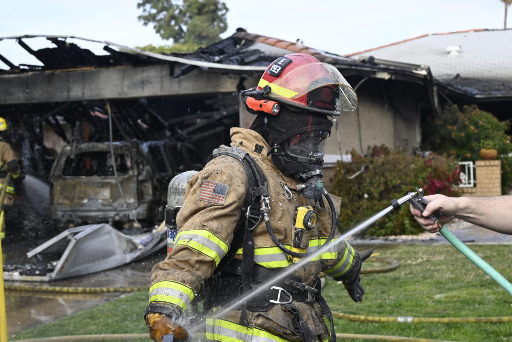 3/06/23 WF Suncity One Story Duplex Fire In One Garage With Heavy Ext Into The Unit The Attic And Thur The Roof Ext Into A Exp Garage Units When Defensive For A While The Units Did A Great Job Keeping It Out Of The Other Duplex Suncity & Peoria Glendale Working Cameo Dr Sandstone Dr