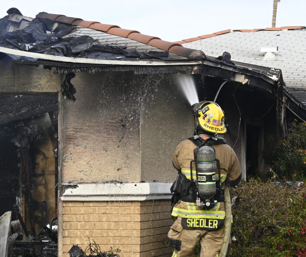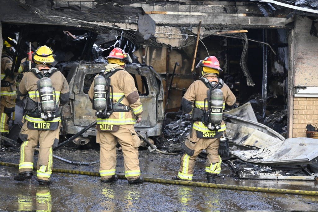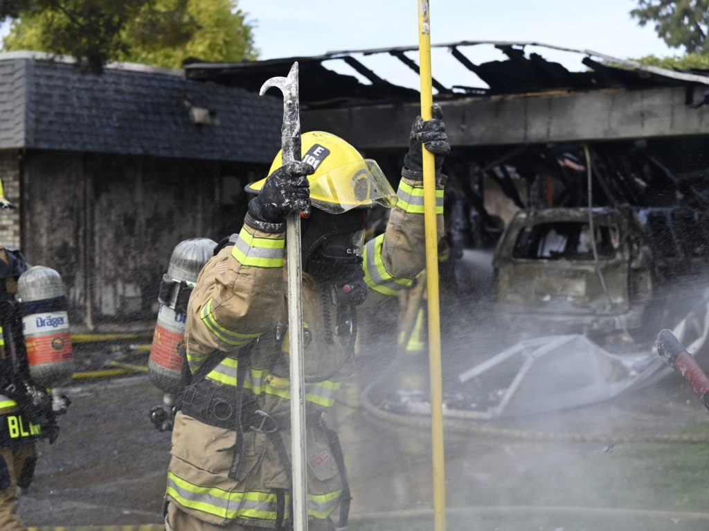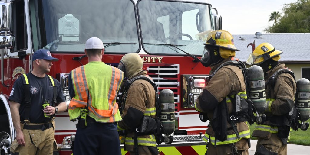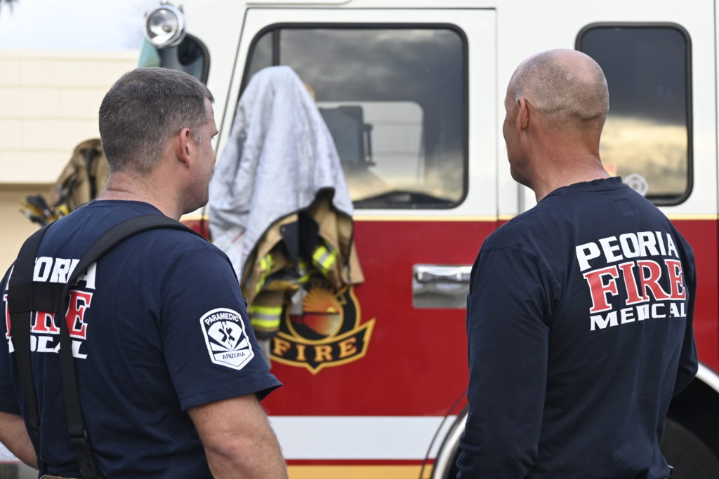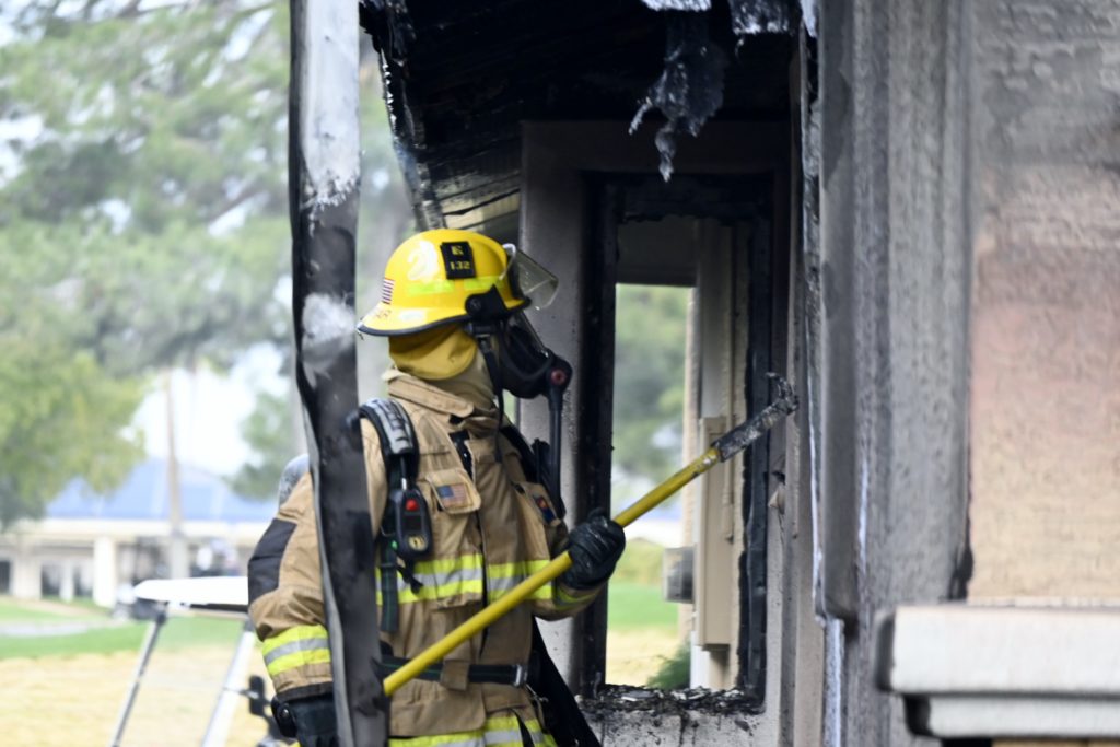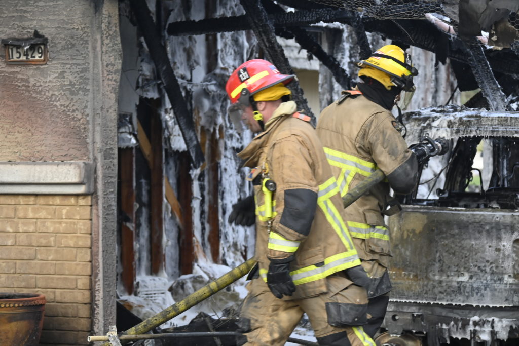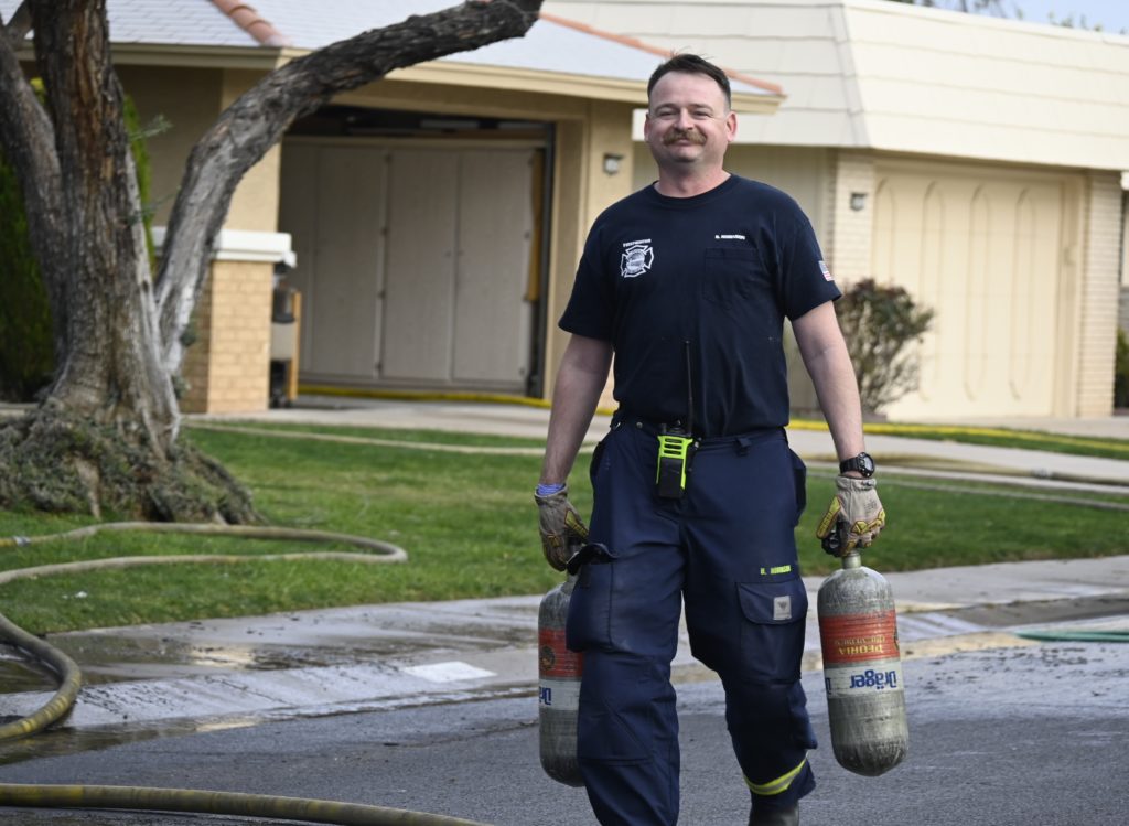 3/06/23 WF Suncity One Story Duplex Fire In One Garage With Heavy Ext Into The Unit The Attic And Thur The Roof Ext Into A Exp Garage Units When Defensive For A While The Units Did A Great Job Keeping It Out Of The Other Duplex Suncity & Peoria Glendale Working Cameo Dr Sandstone Dr