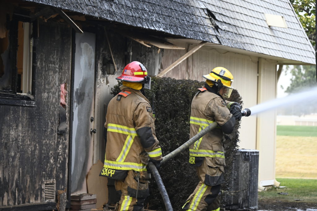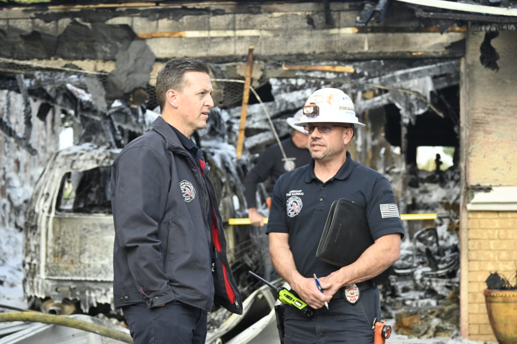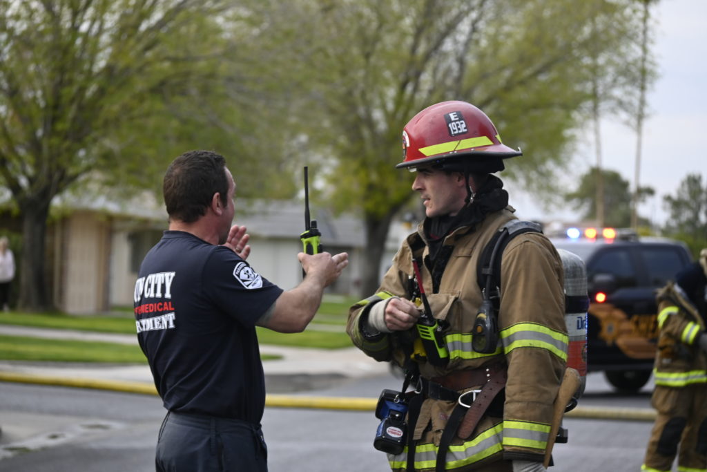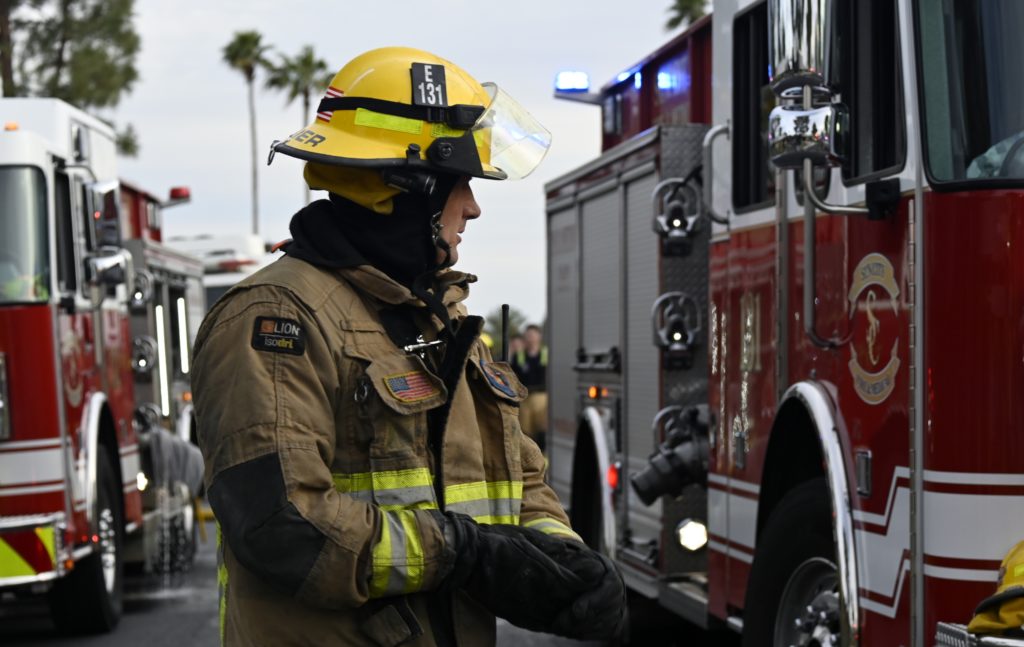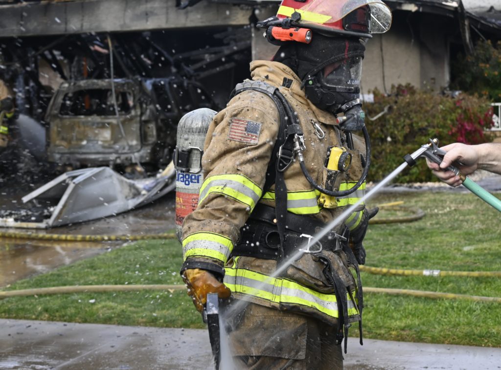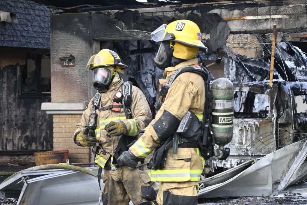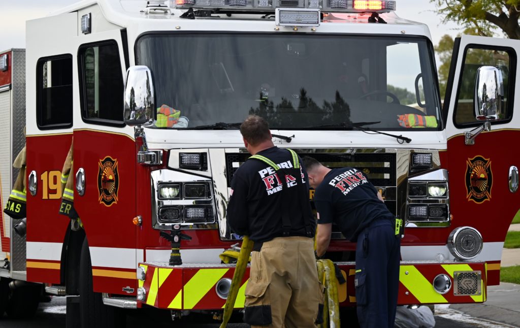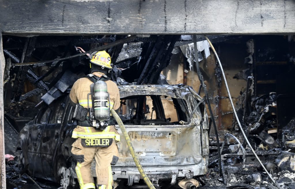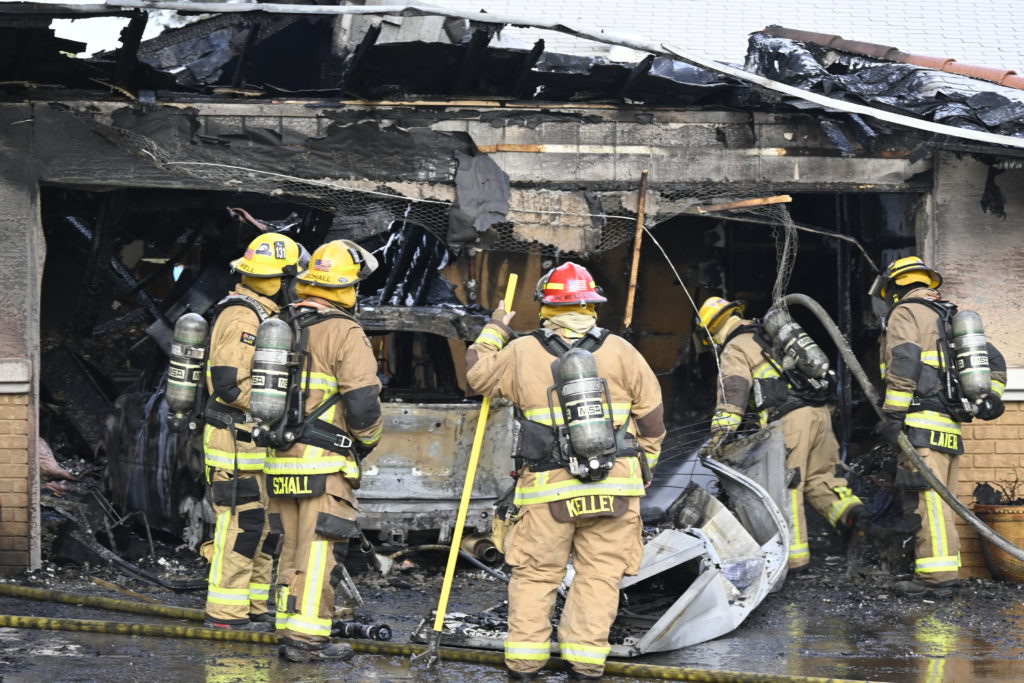 3/06/23 WF Suncity One Story Duplex Fire In One Garage With Heavy Ext Into The Unit The Attic And Thur The Roof Ext Into A Exp Garage Units When Defensive For A While The Units Did A Great Job Keeping It Out Of The Other Duplex Suncity & Peoria Glendale Working Cameo Dr Sandstone Dr