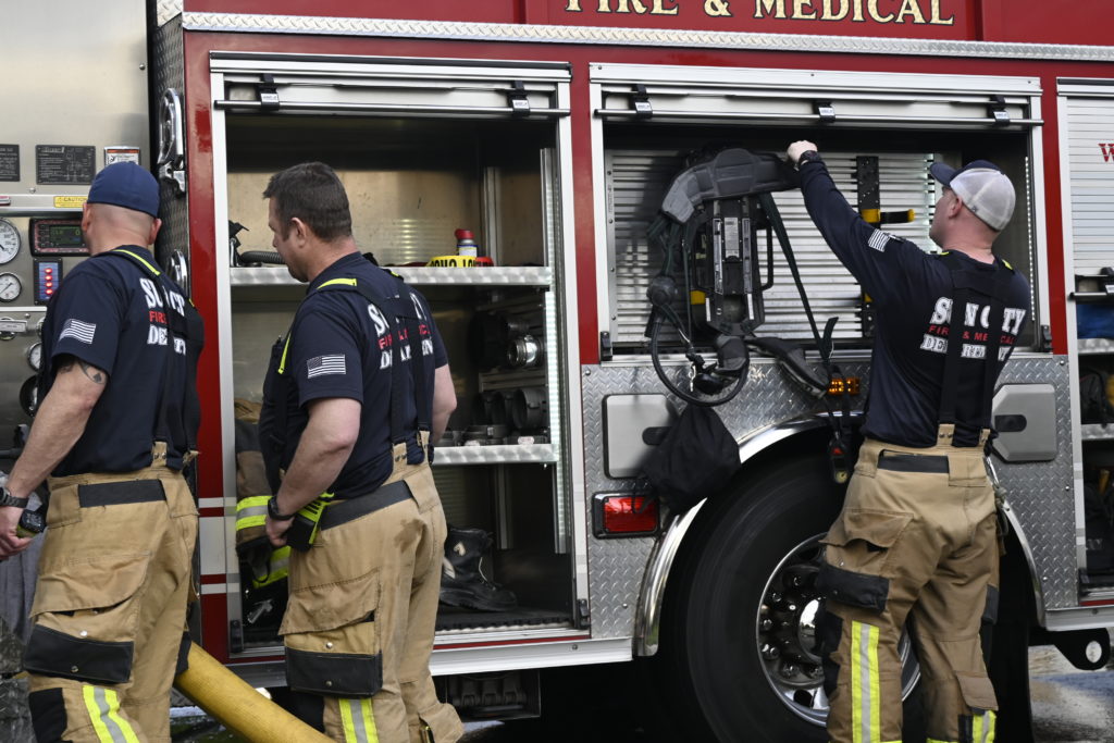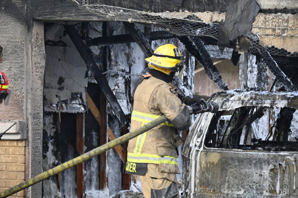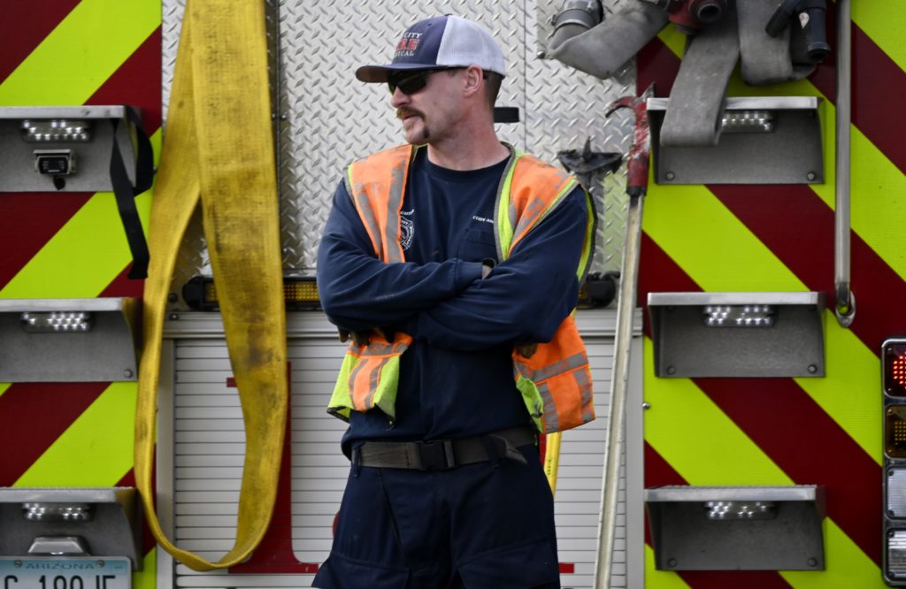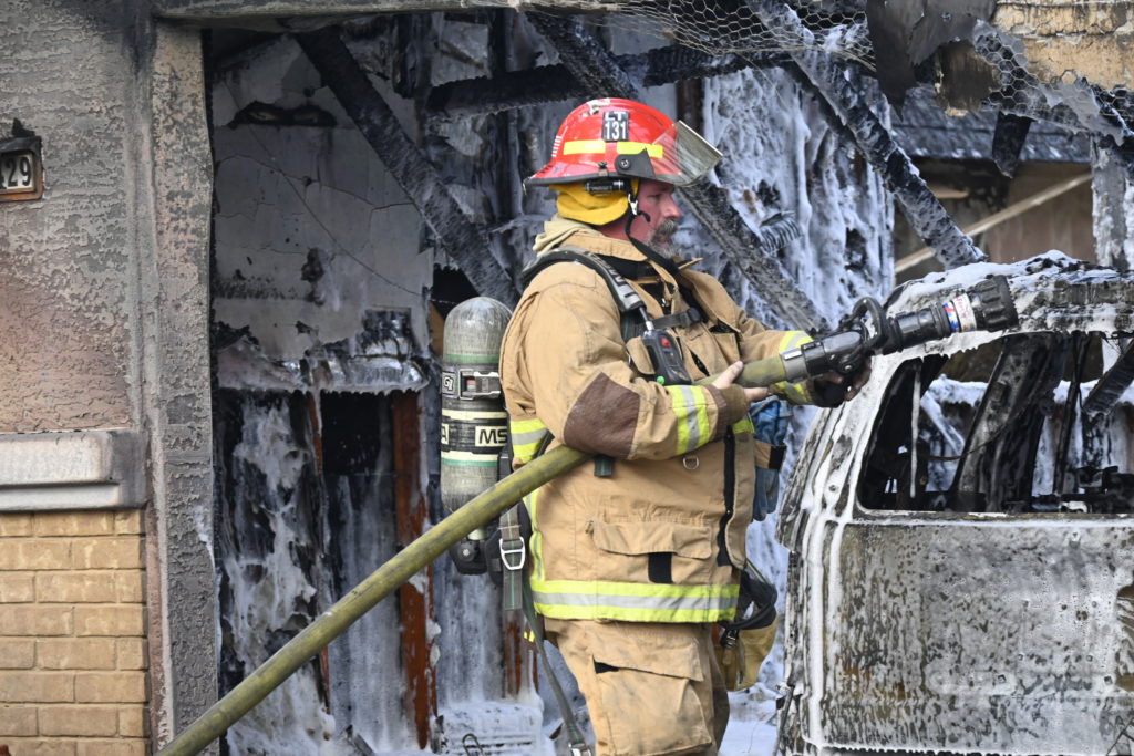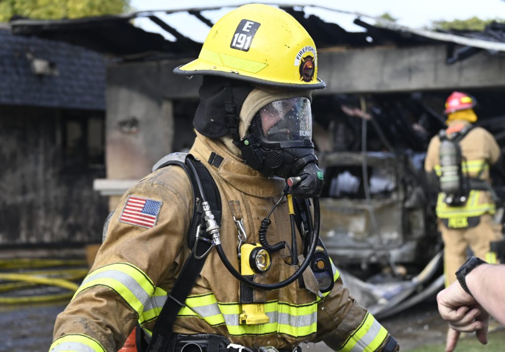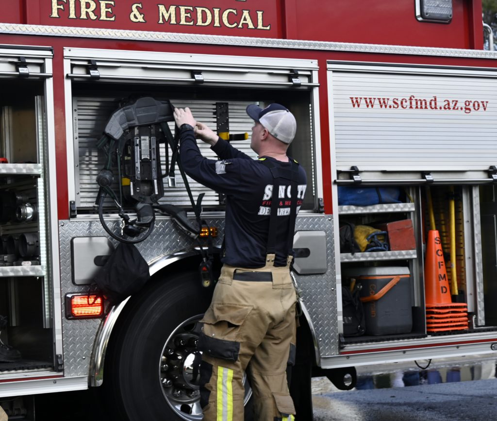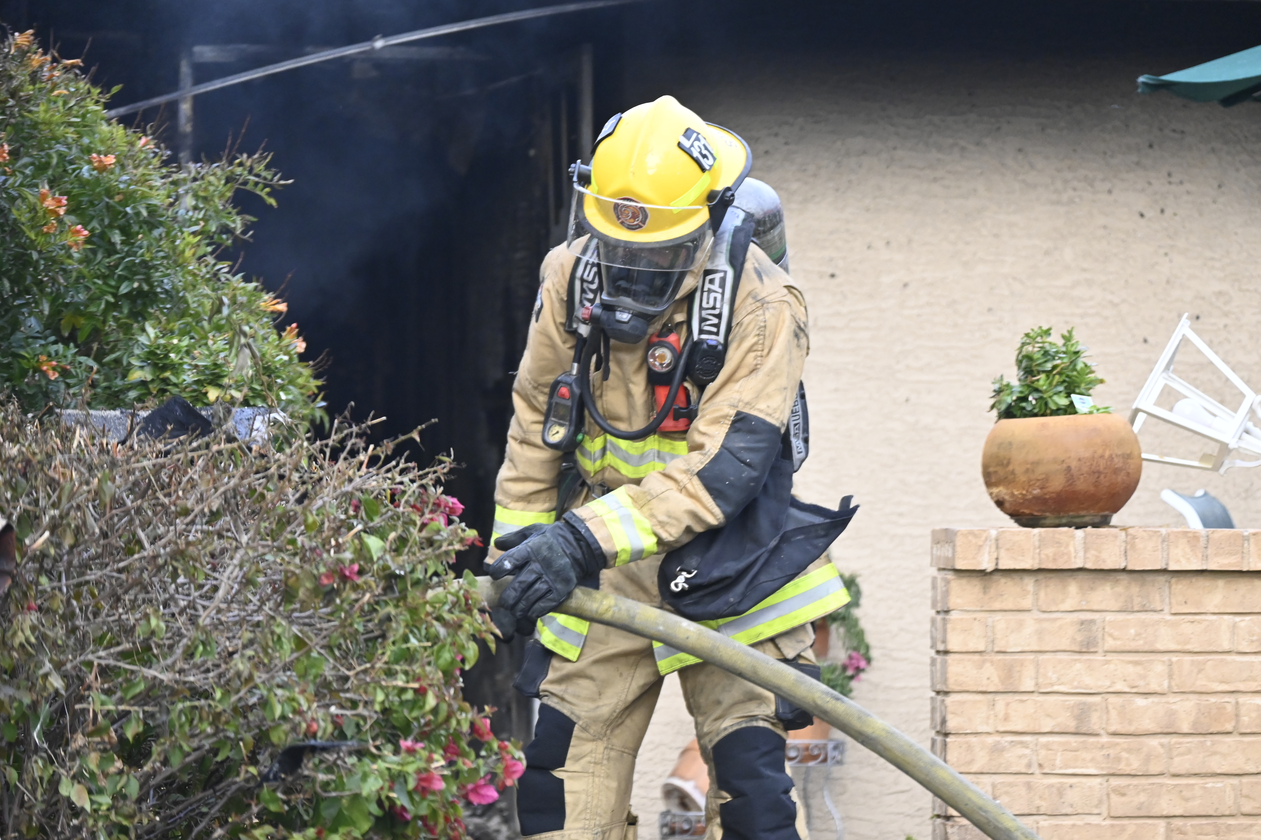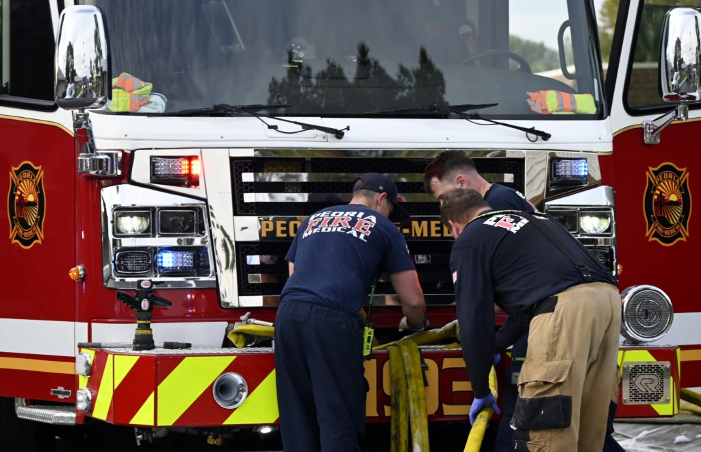 3/06/23 WF Suncity One Story Duplex Fire In One Garage With Heavy Ext Into The Unit The Attic And Thur The Roof Ext Into A Exp Garage Units When Defensive For A While The Units Did A Great Job Keeping It Out Of The Other Duplex Suncity & Peoria Glendale Working Cameo Dr Sandstone Dr