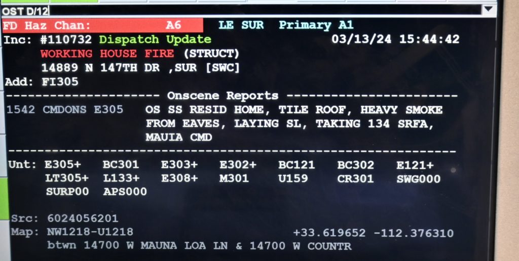 3/13/24 WF Surprise 147th Dr Country Gables Dr House Attic Fire Surprise El Mirage Sun City Glendale Working