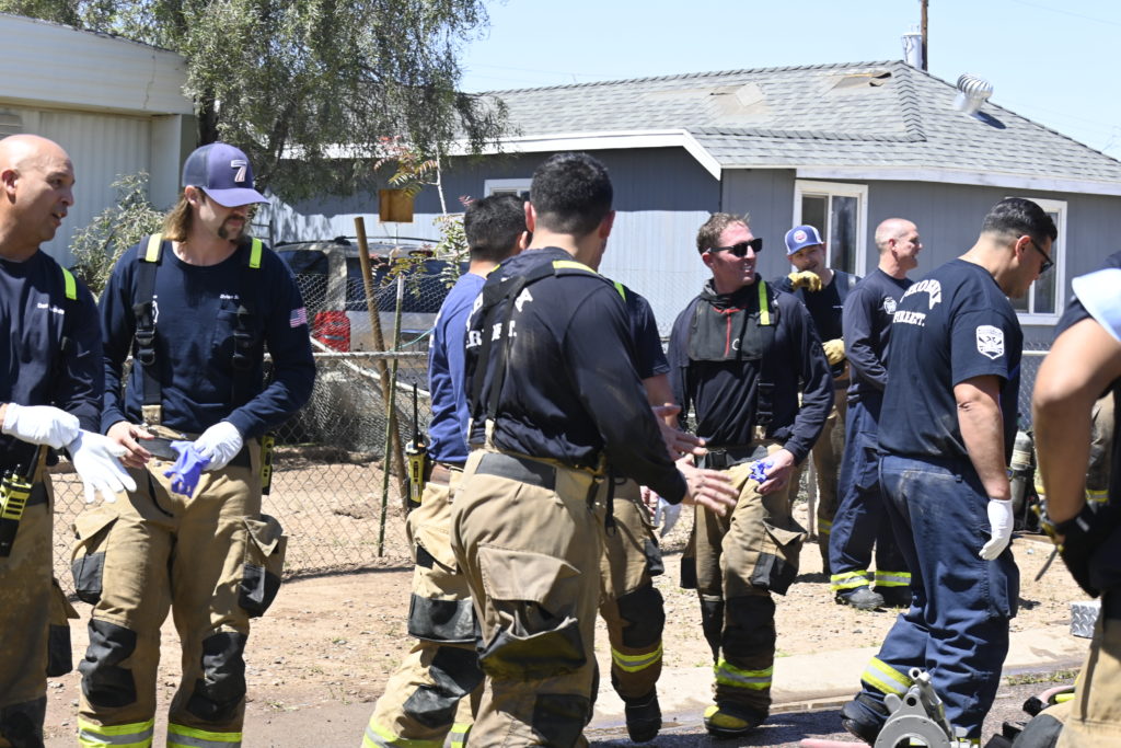 4/08/24 WF Phoenix S 35th dr W Wier Ave Mobile Home Heavy Fire In The rear Heavy Clutter The Brothers And Sisters Did A nice Job Keeping out of the Exps Phoenix Working