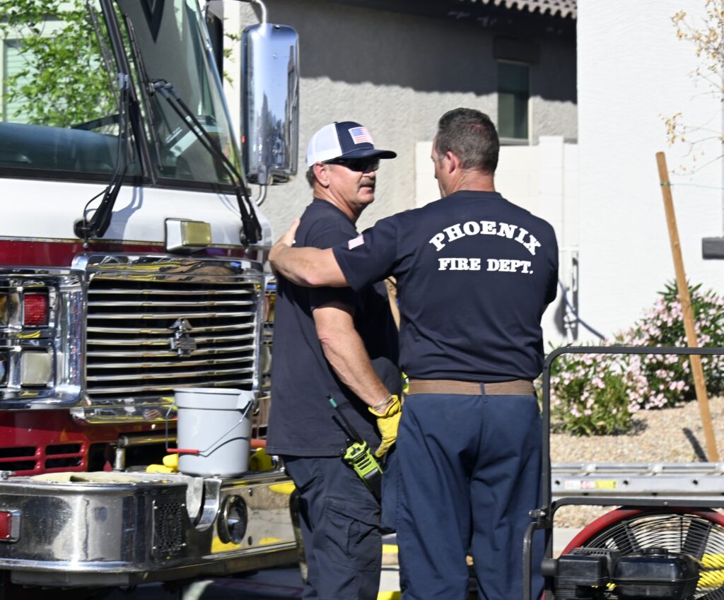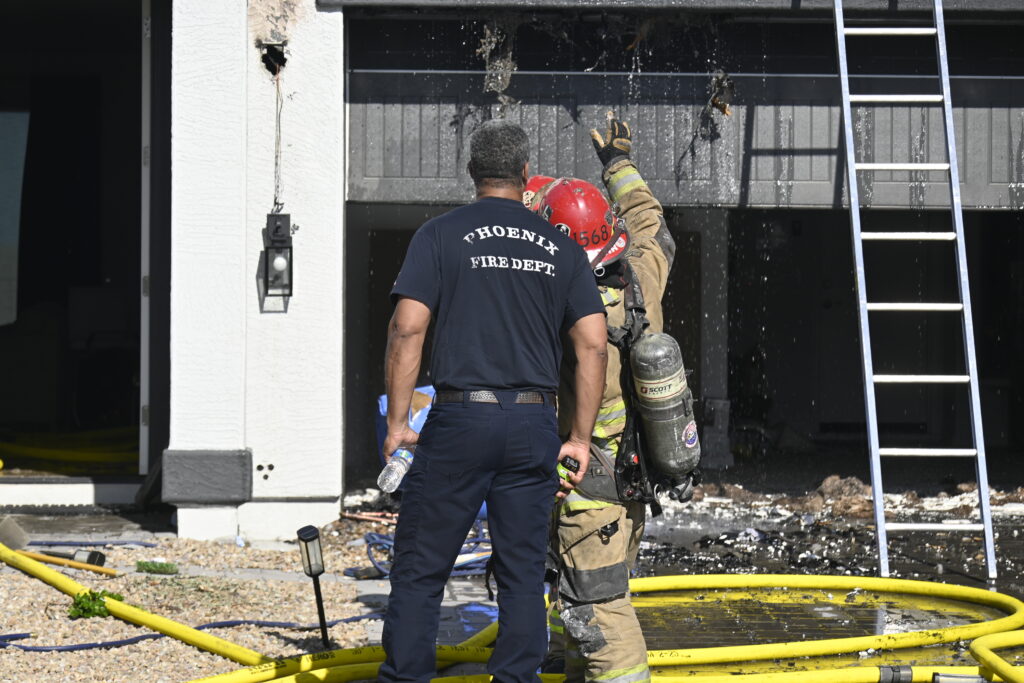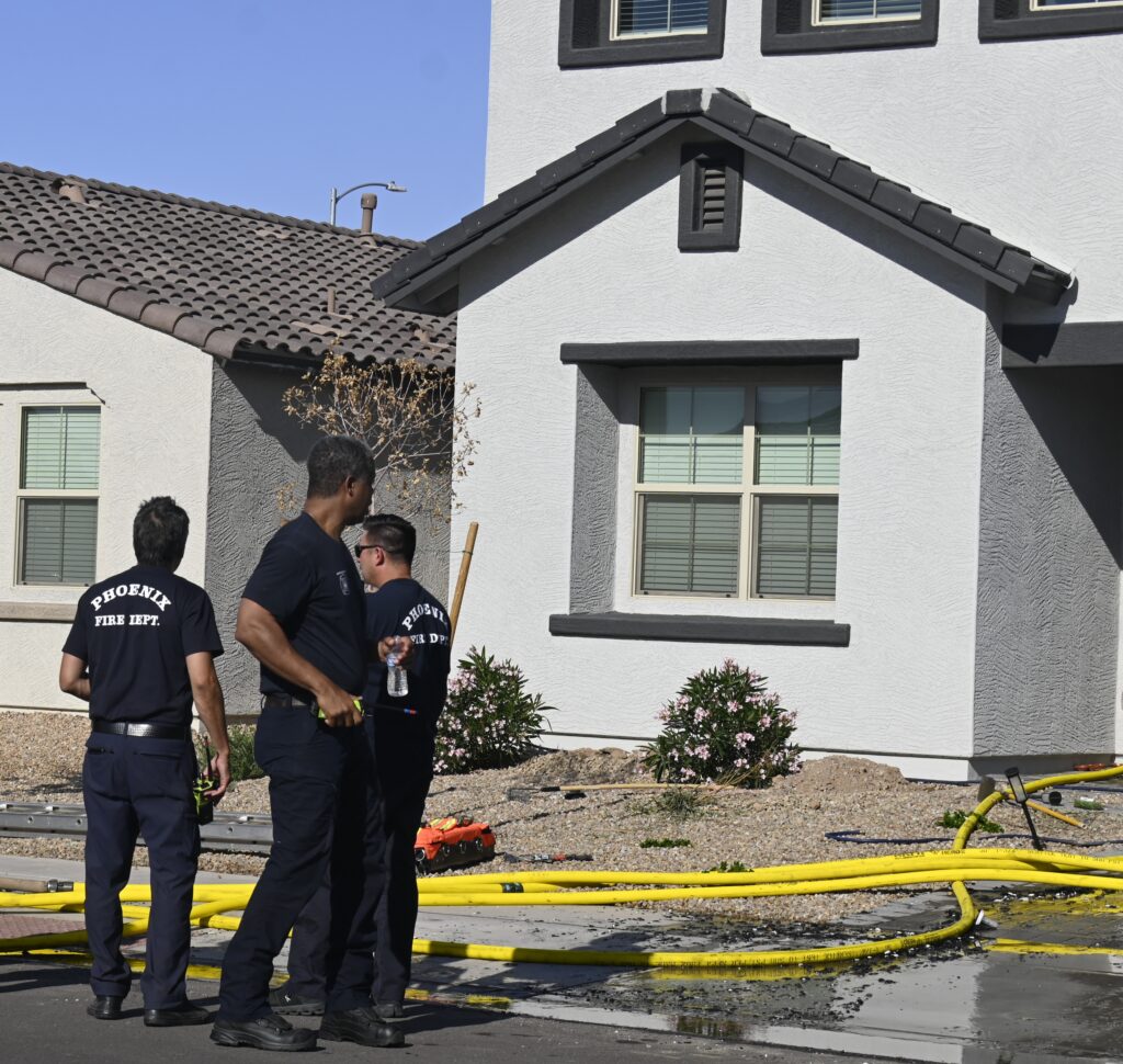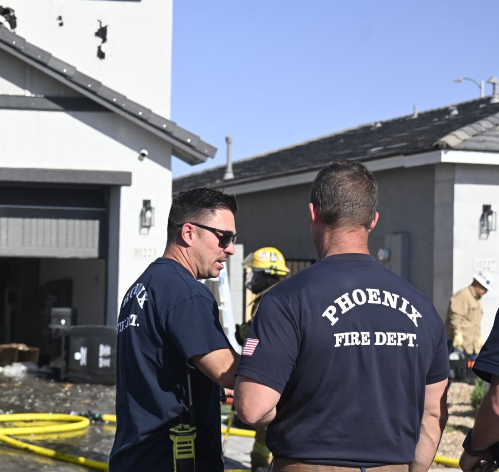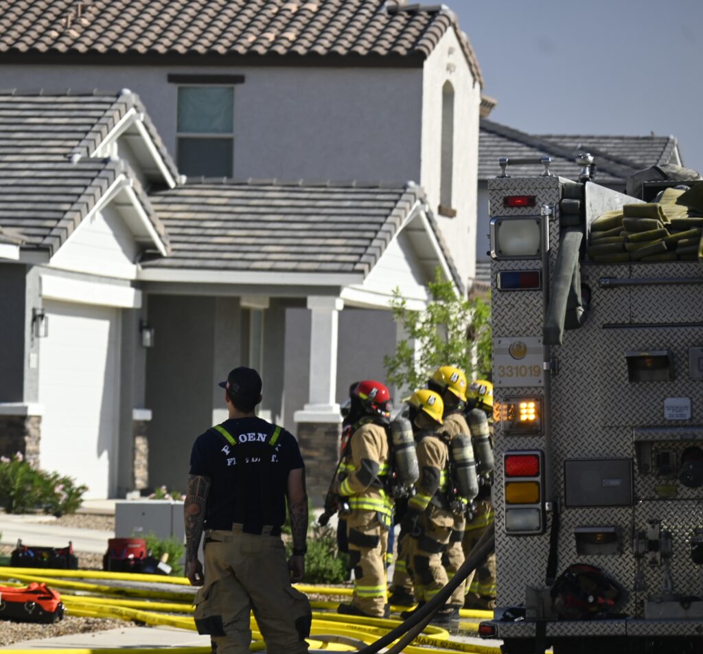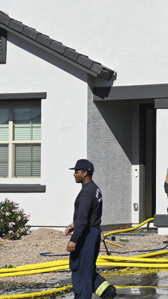 4/10/25 WF Phoenix S 55th Dr W Lodge Dr Two Story House Fire Originated buy The Water Heater Ext Into The Wall And The Second Floor And The Attic Extensive Opening Up The Brothers And Sisters Did A Nice Job Phoenix Working