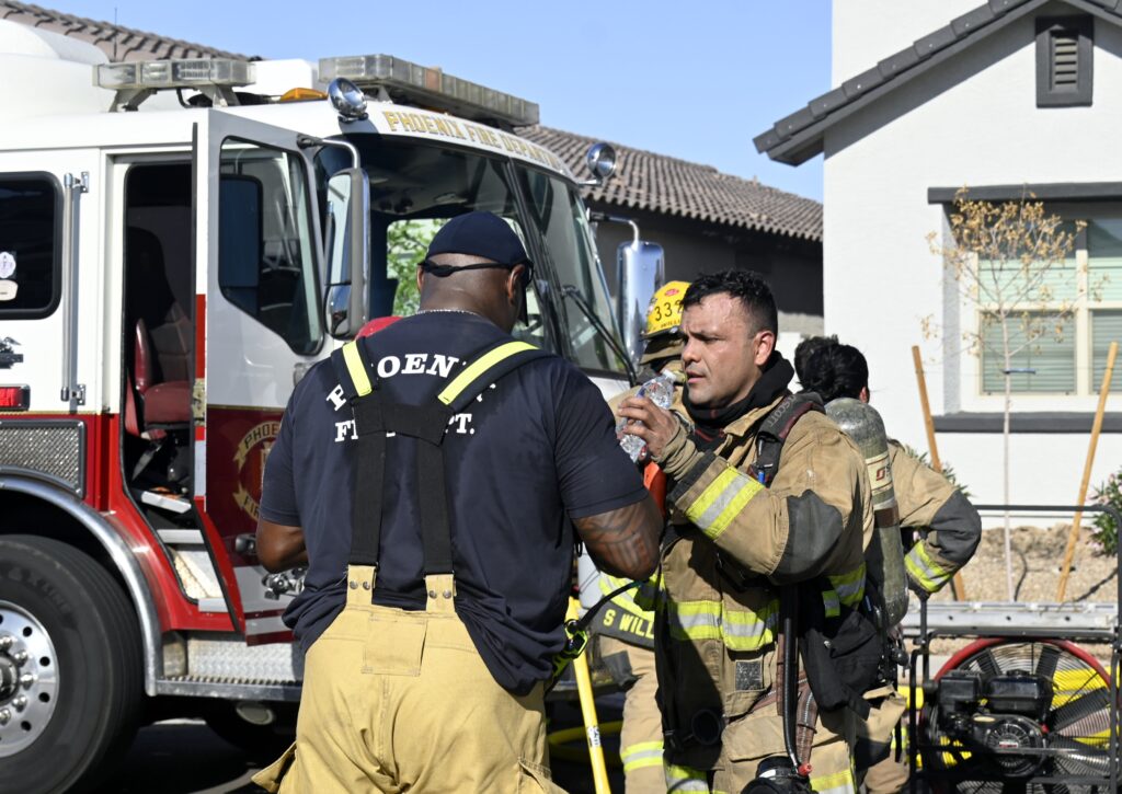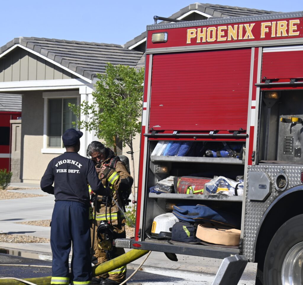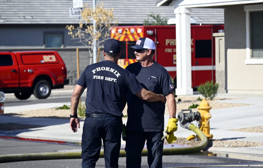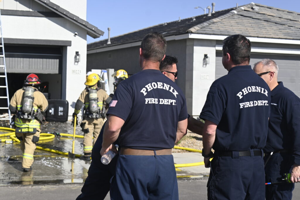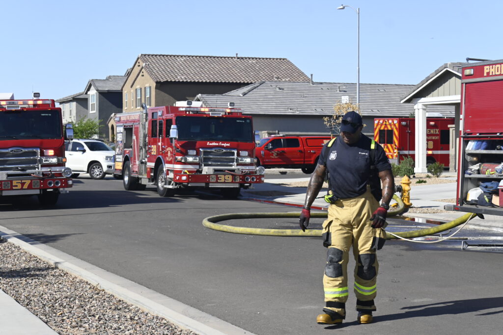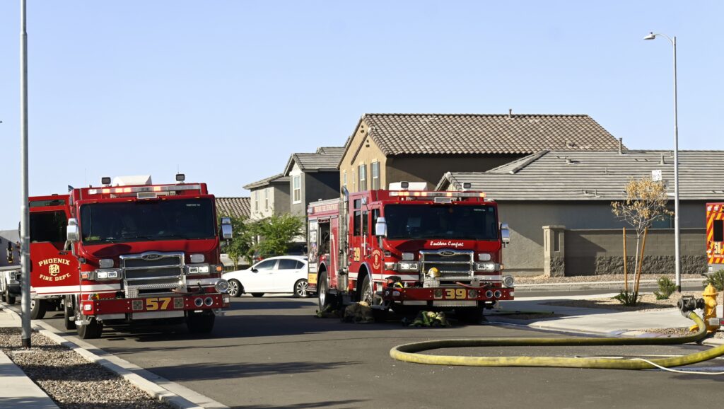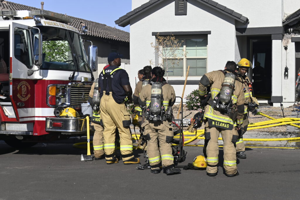 4/10/25 WF Phoenix S 55th Dr W Lodge Dr Two Story House Fire Originated buy The Water Heater Ext Into The Wall And The Second Floor And The Attic Extensive Opening Up The Brothers And Sisters Did A Nice Job Phoenix Working