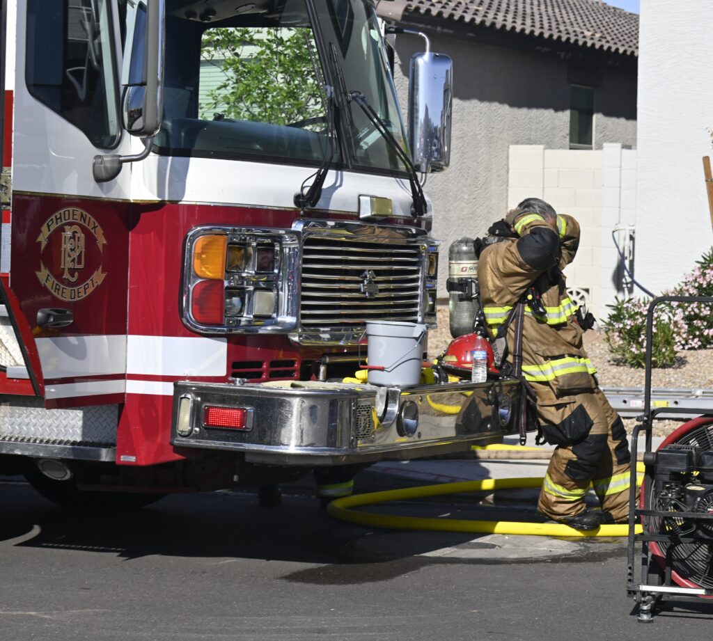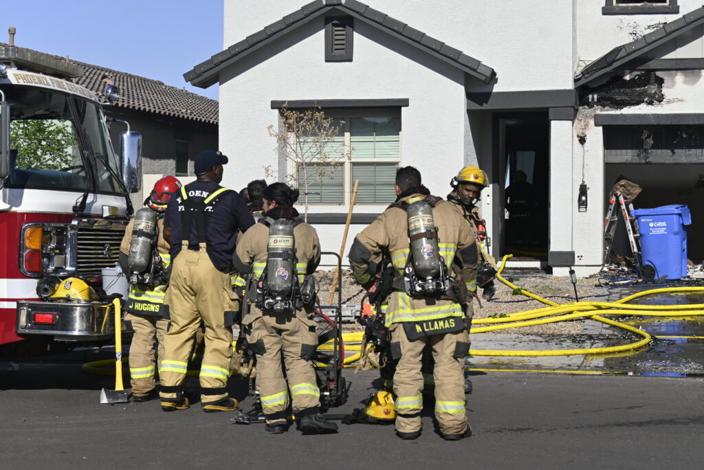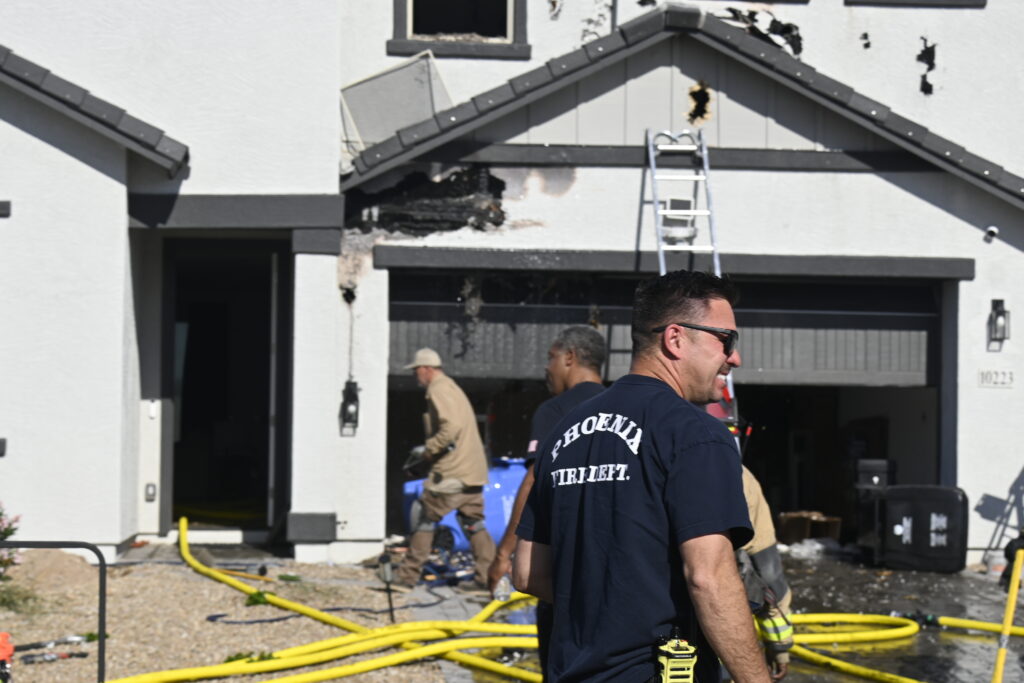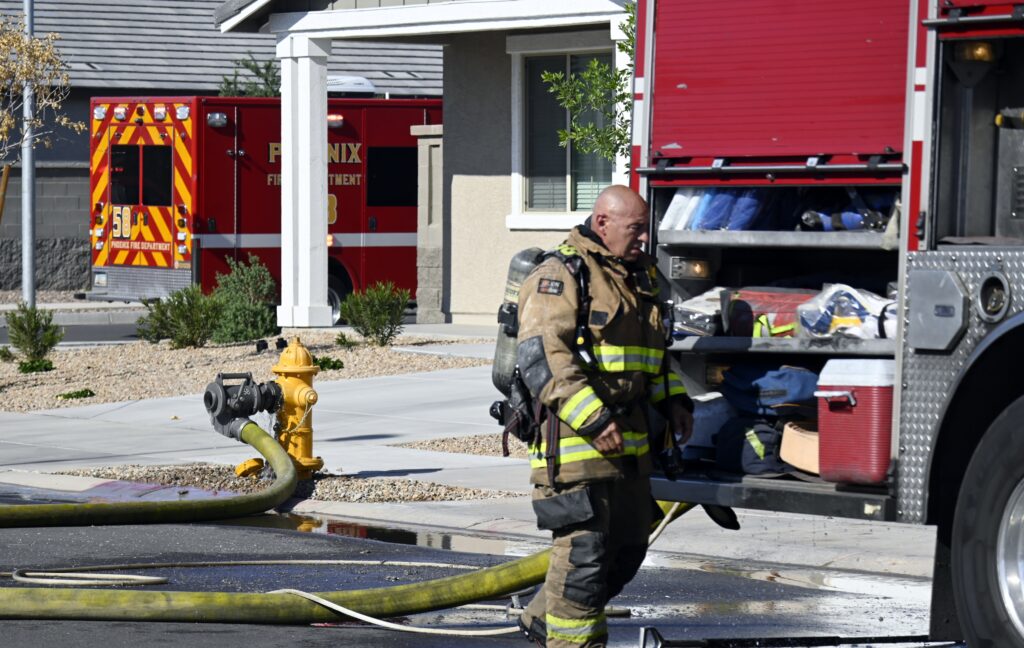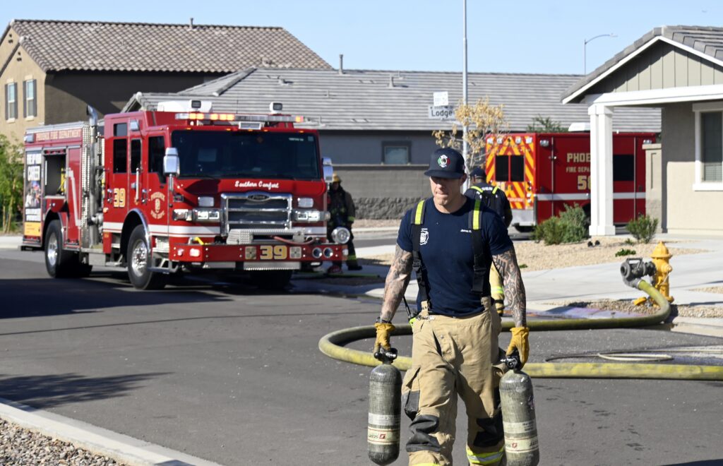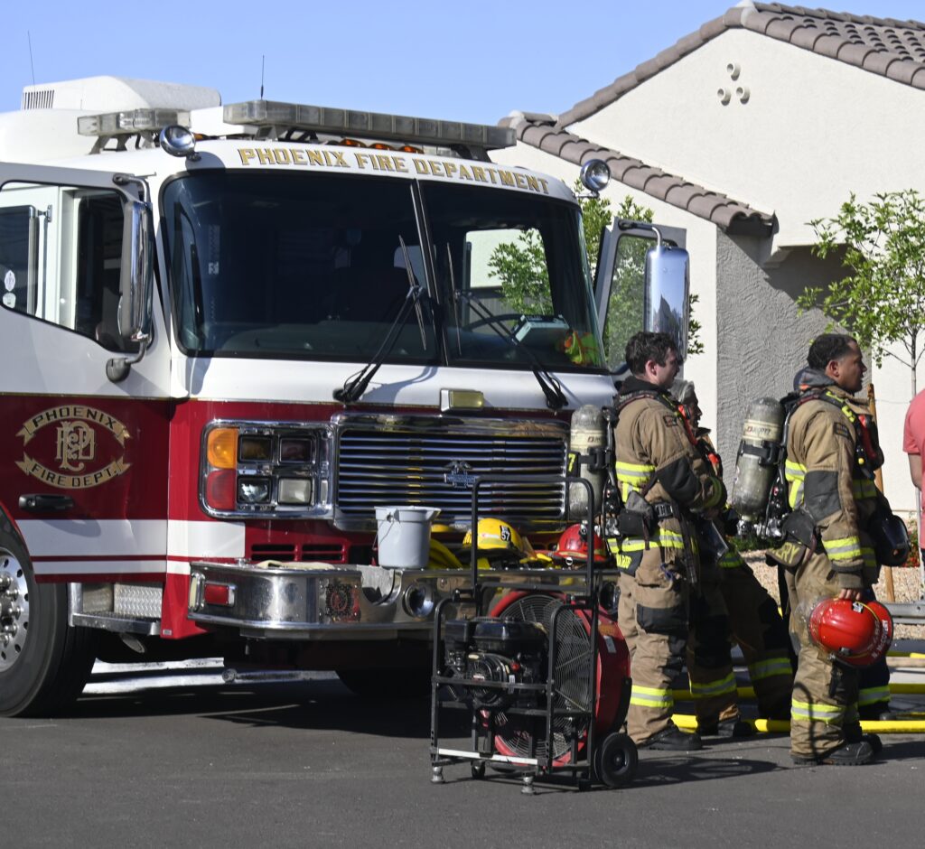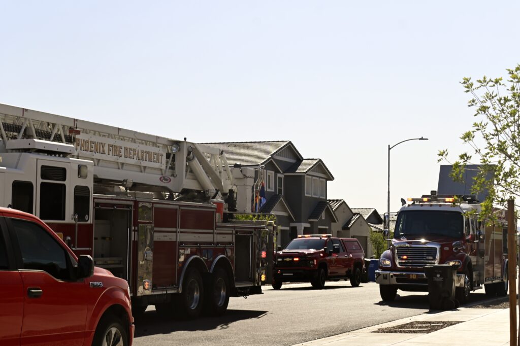 4/10/25 WF Phoenix S 55th Dr W Lodge Dr Two Story House Fire Originated buy The Water Heater Ext Into The Wall And The Second Floor And The Attic Extensive Opening Up The Brothers And Sisters Did A Nice Job Phoenix Working