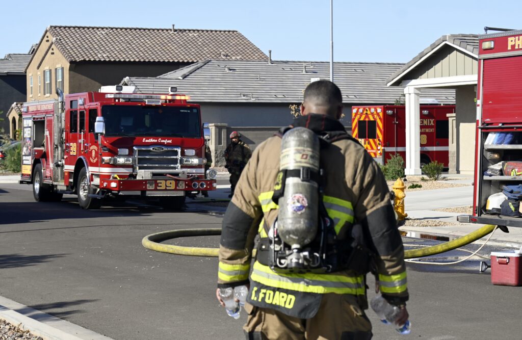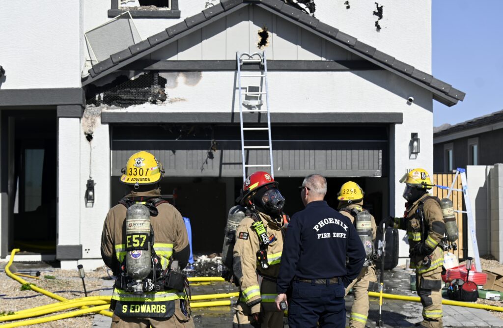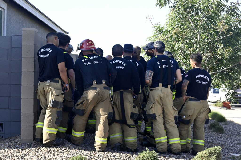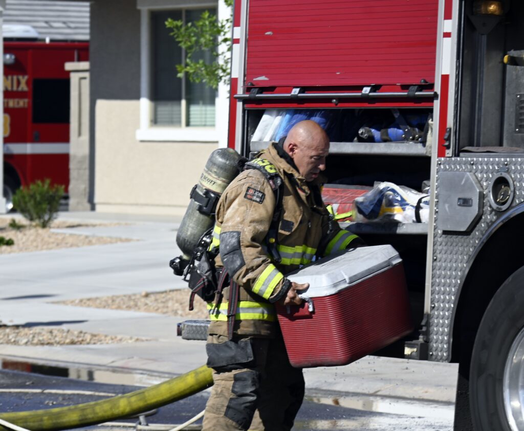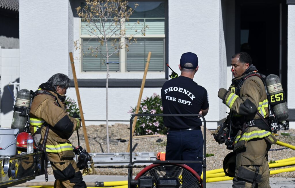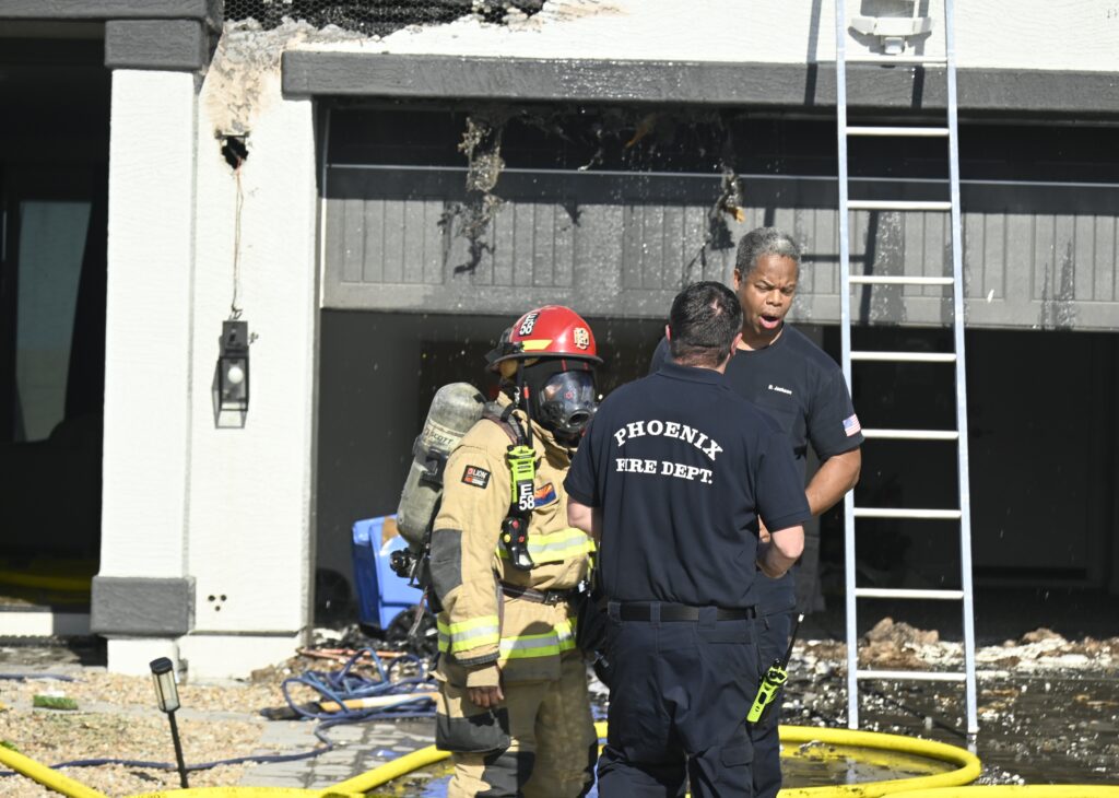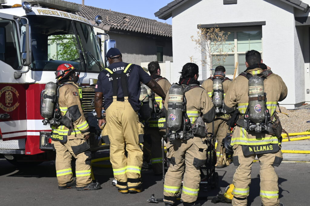 4/10/25 WF Phoenix S 55th Dr W Lodge Dr Two Story House Fire Originated buy The Water Heater Ext Into The Wall And The Second Floor And The Attic Extensive Opening Up The Brothers And Sisters Did A Nice Job Phoenix Working