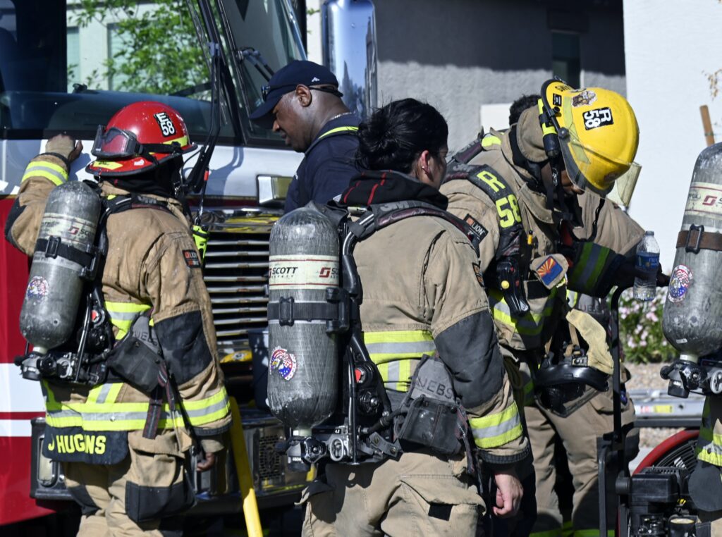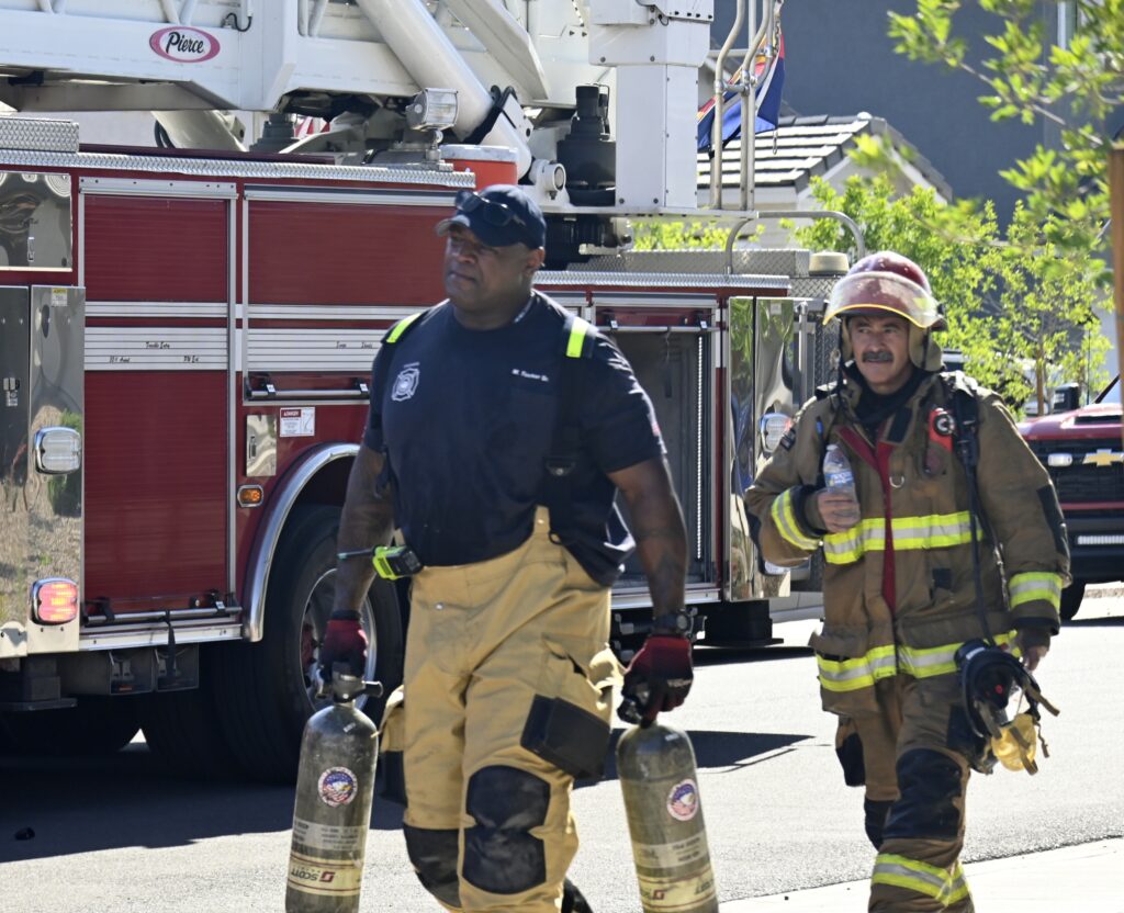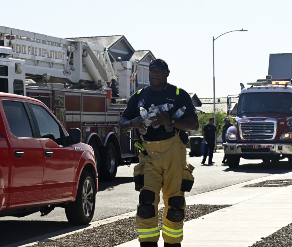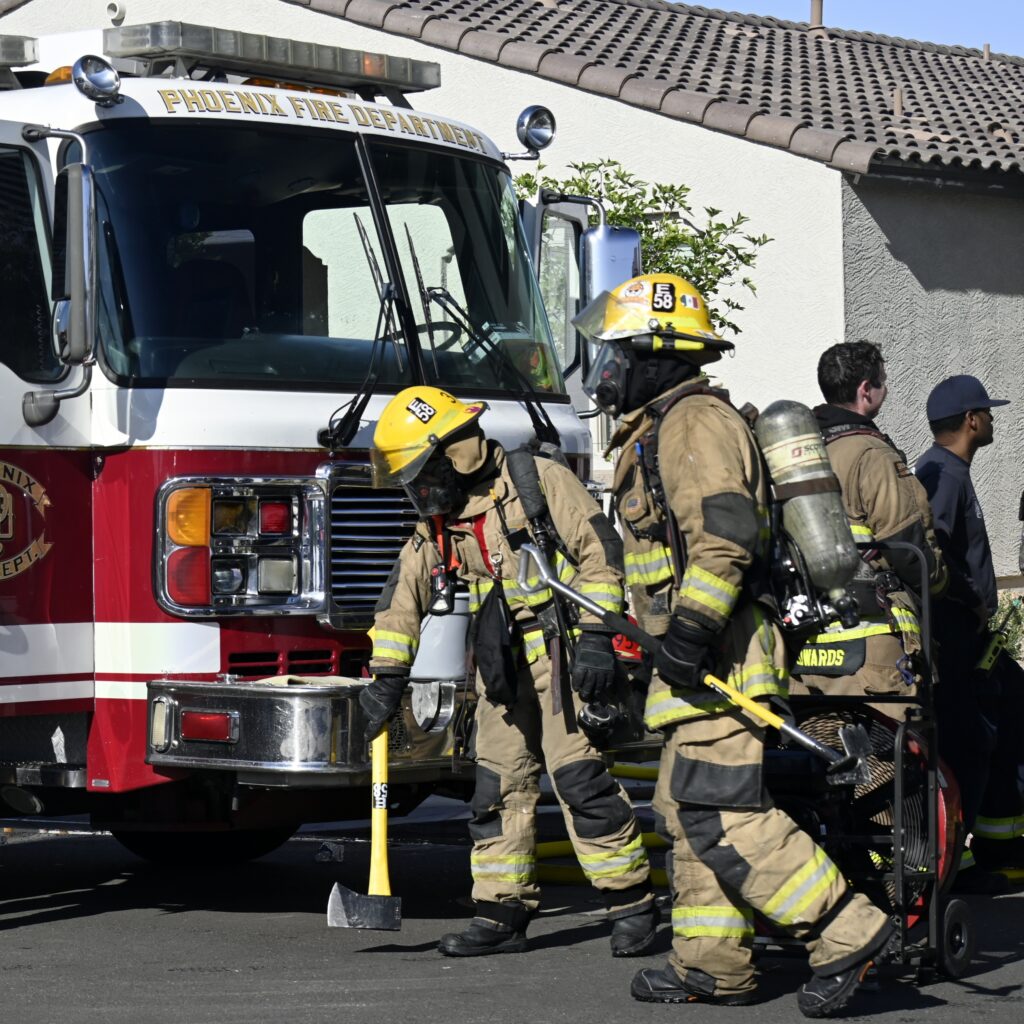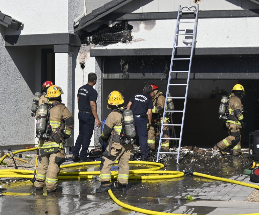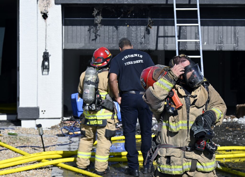 4/10/25 WF Phoenix S 55th Dr W Lodge Dr Two Story House Fire Originated buy The Water Heater Ext Into The Wall And The Second Floor And The Attic Extensive Opening Up The Brothers And Sisters Did A Nice Job Phoenix Working