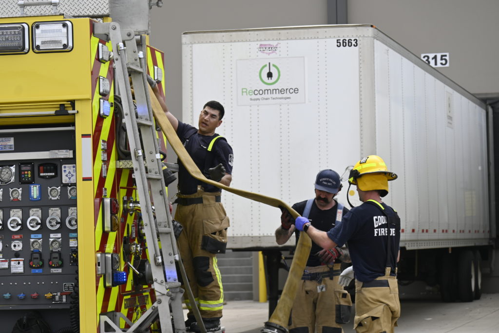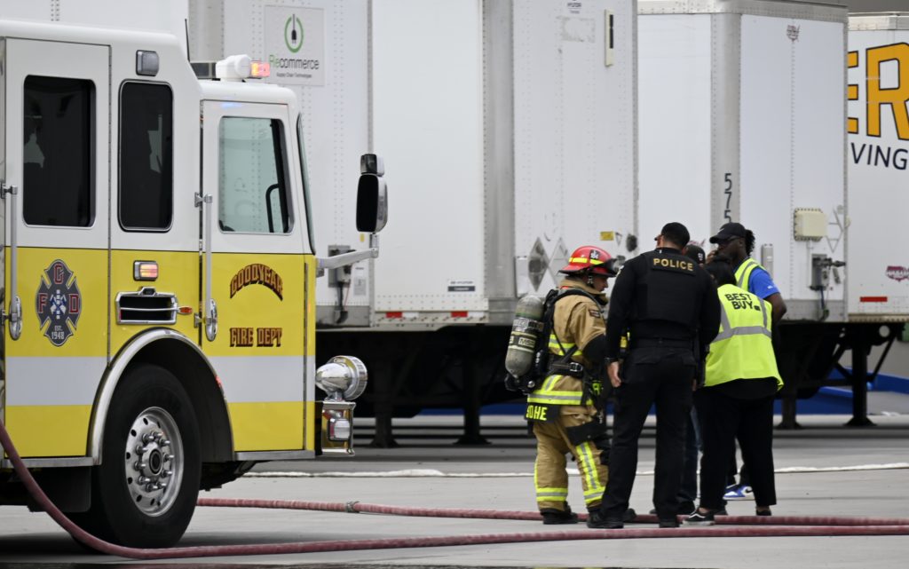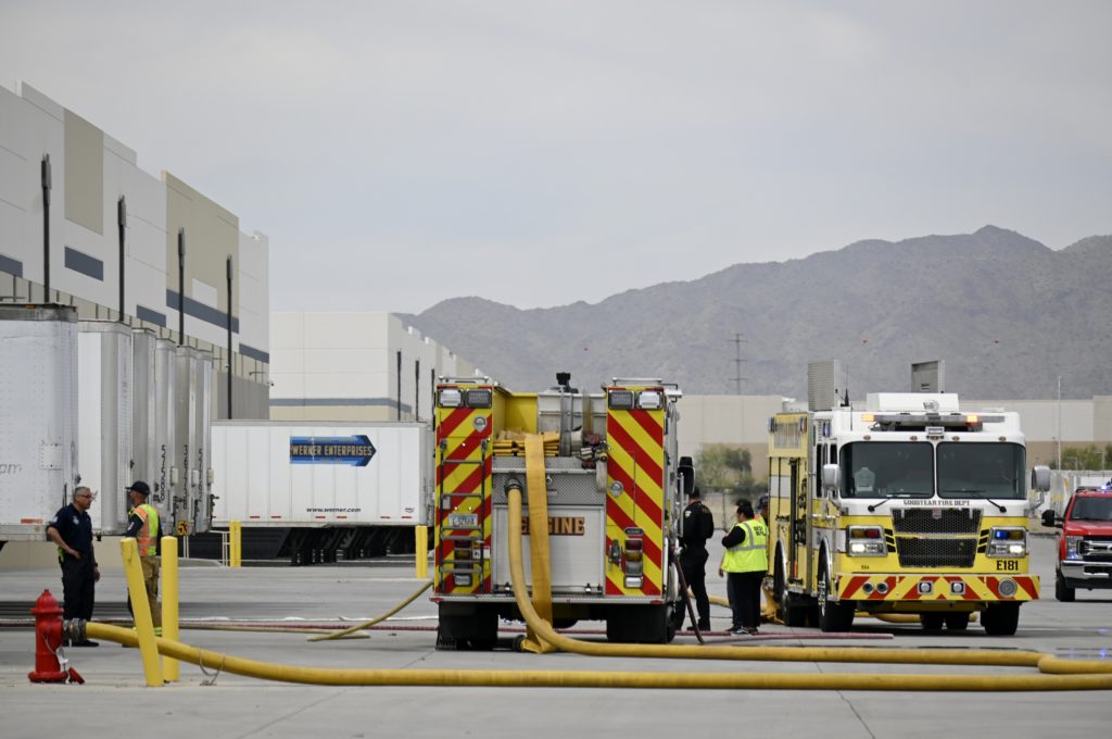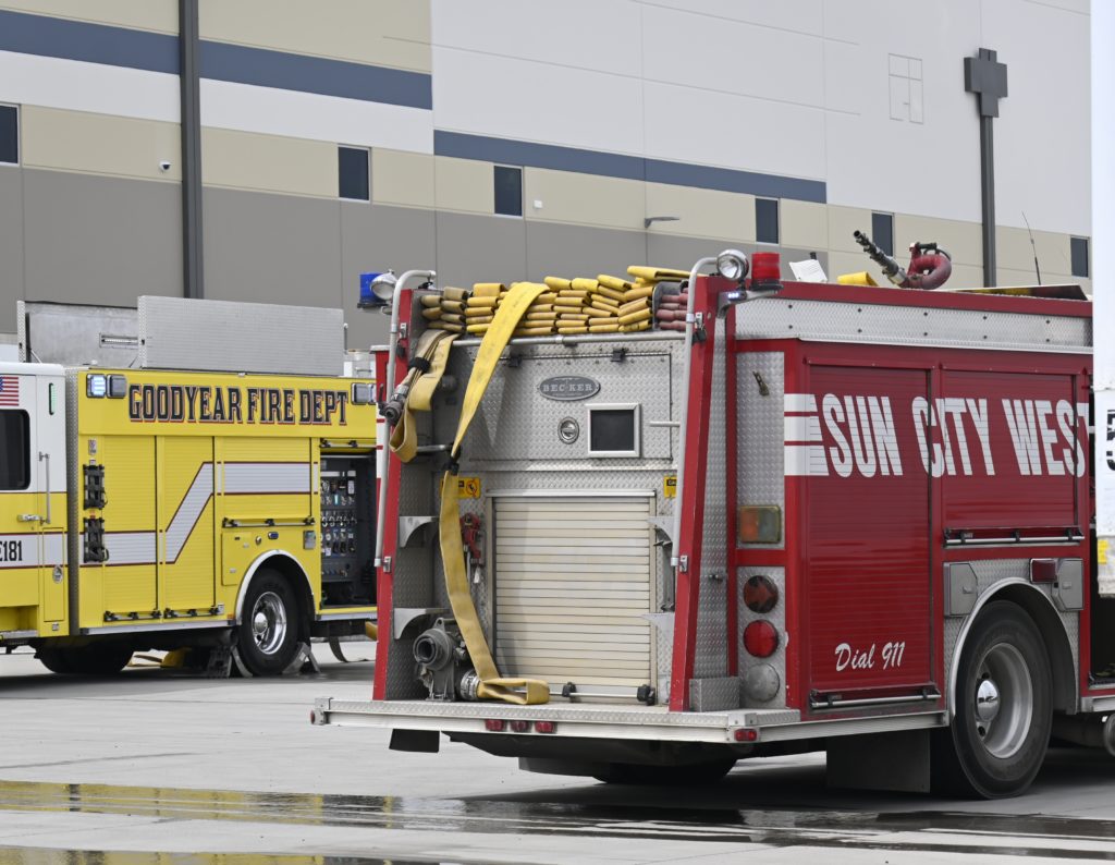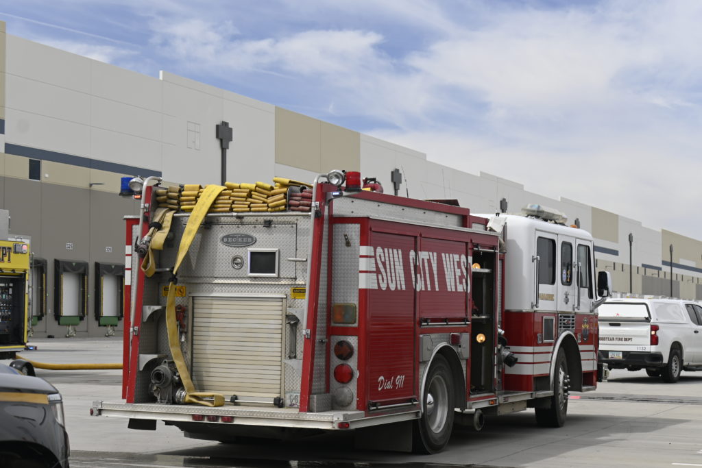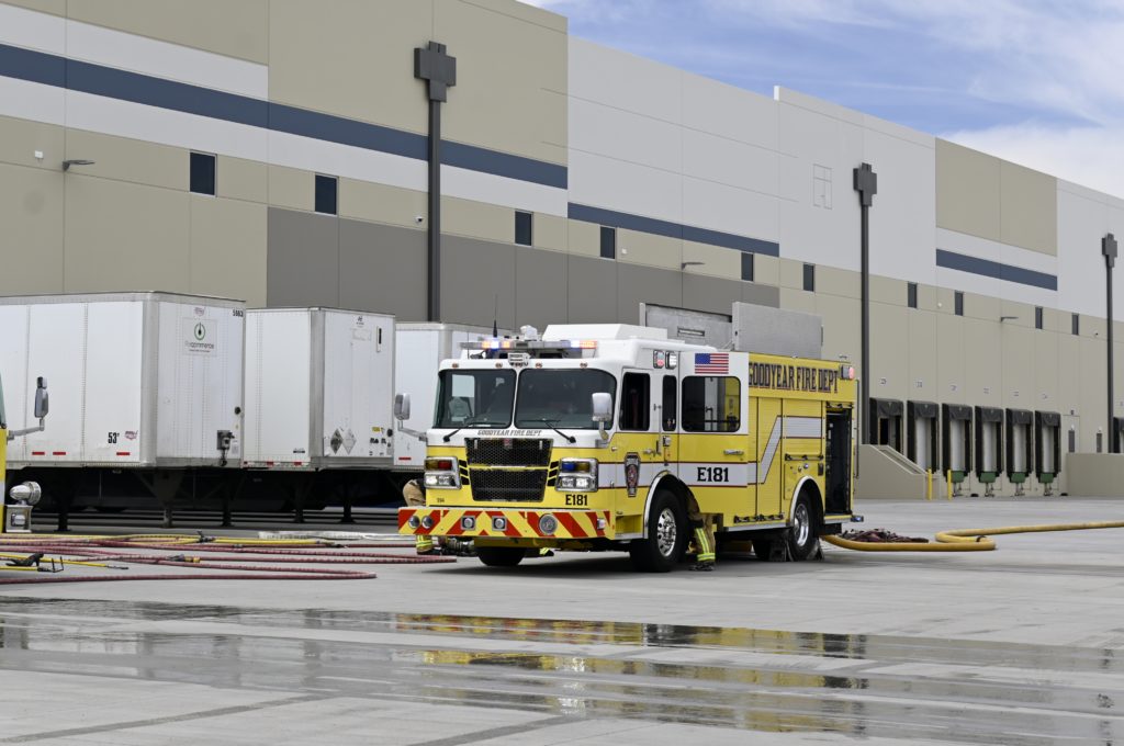 4/12/23 First Alarm Goodyear Best Buy Fulfillment Center Charles Blvd Pebblecreek Pkwy Fire In A Foam Hopper No Ext Goodyear Glendale Buckeye AzFireMed Phoenix Avondale Surprise Working