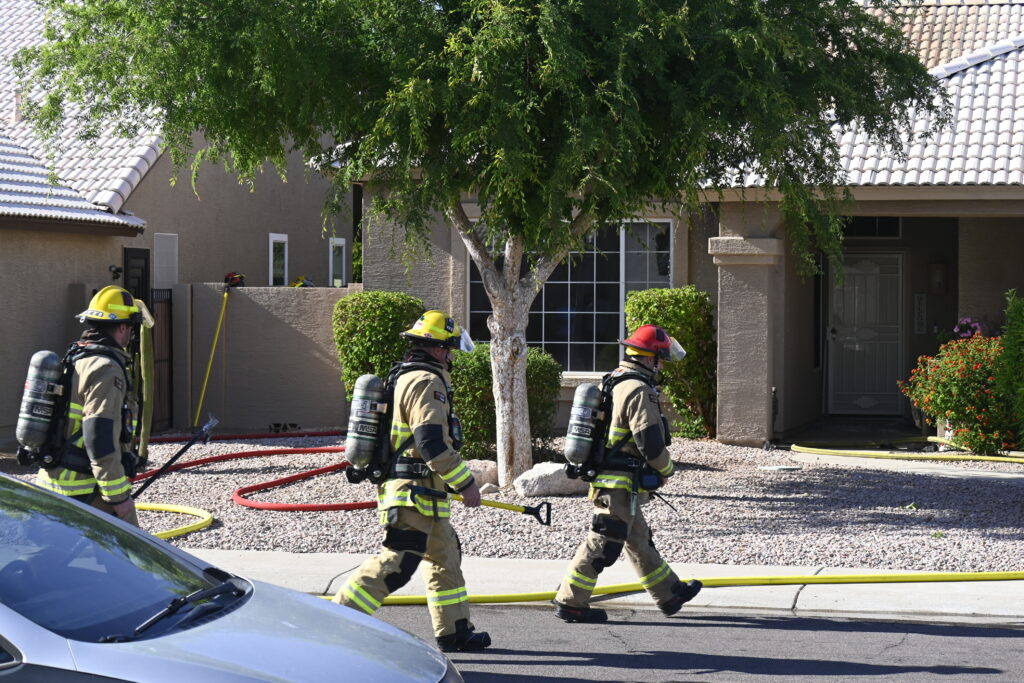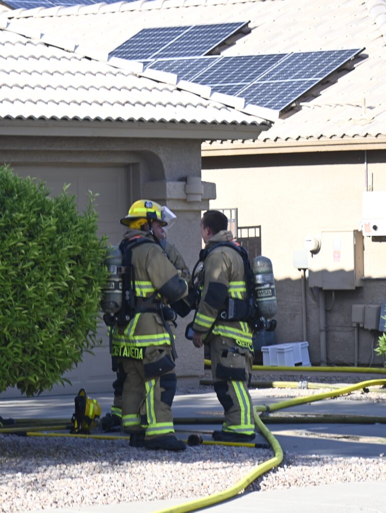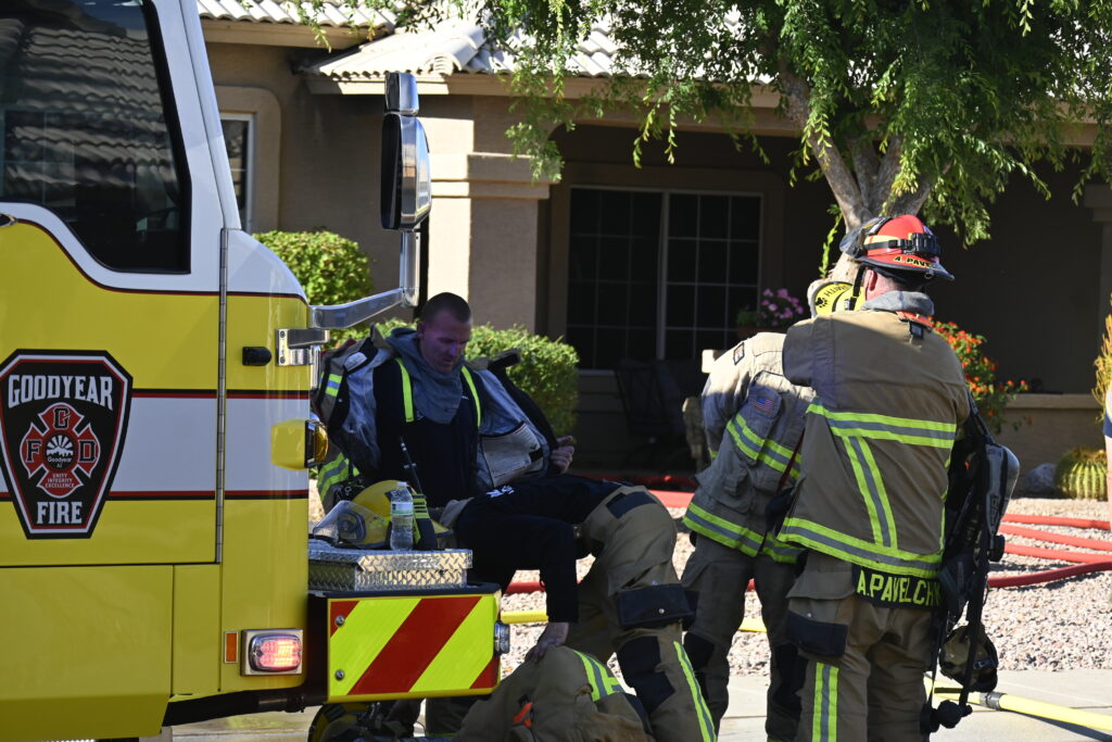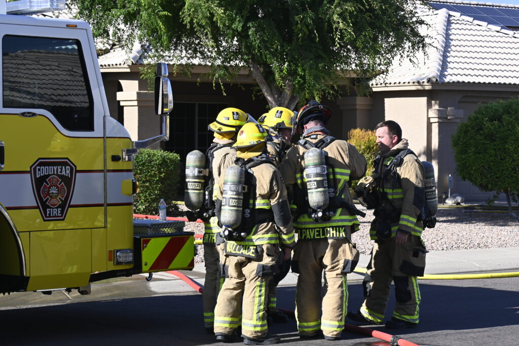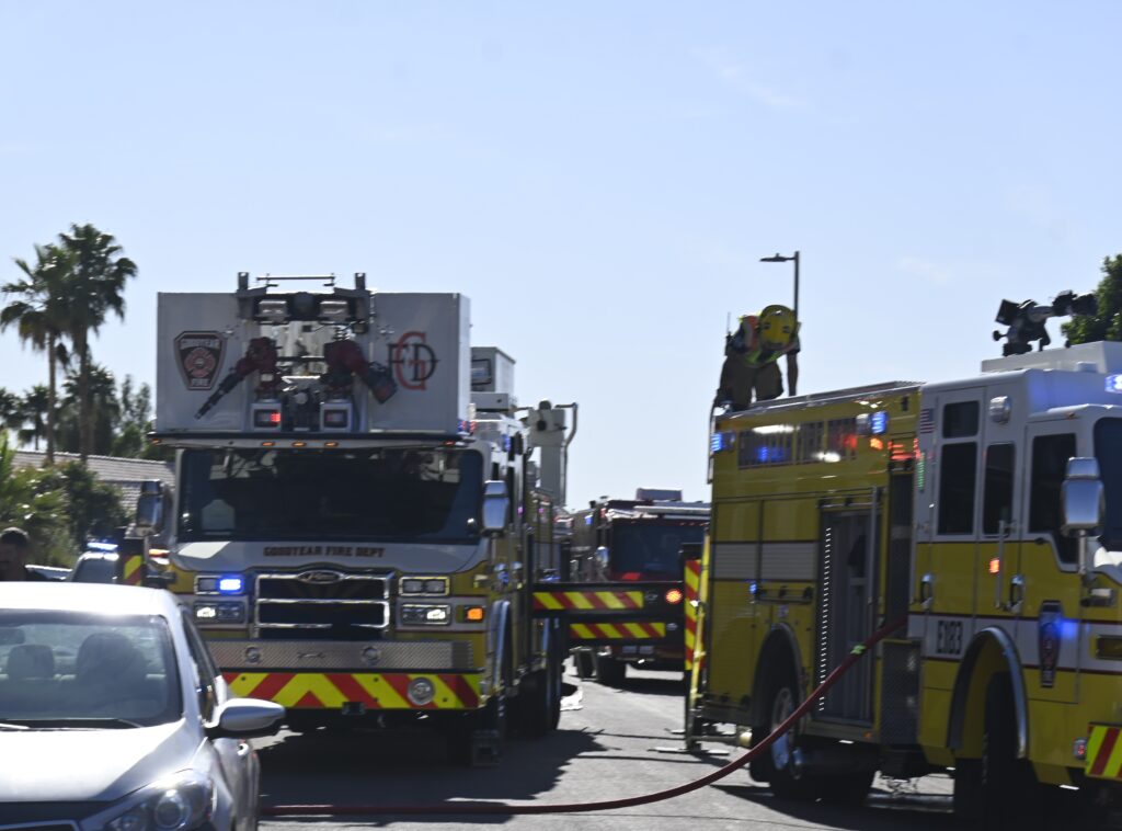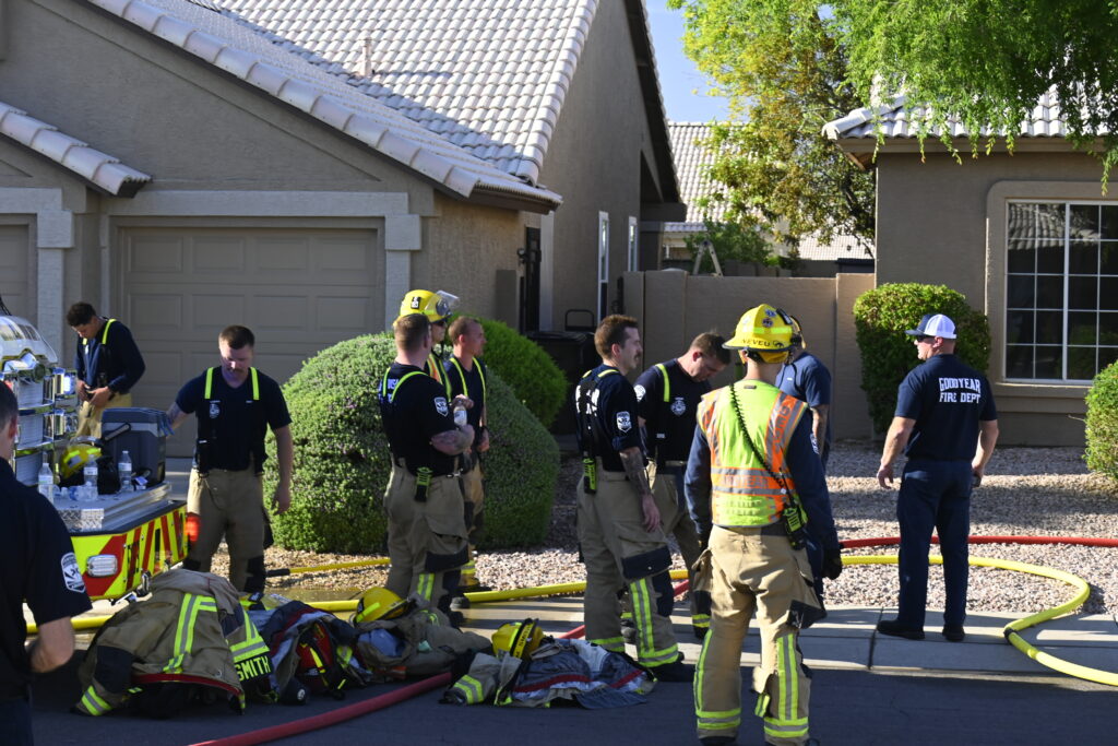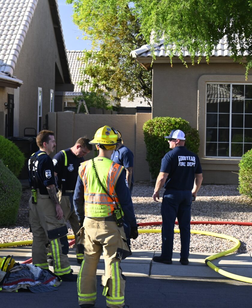 4/22/25 WF Goodyear N 132nd Ave W Wilshire Dr House Fire Started In The Rear Heavy Fire Ext Into The Attic Partial Roof Collapse Unit’s Went Defensive Brothers And Sisters Did A Nice Job No Ext To The Exps Goodyear Avondale Working