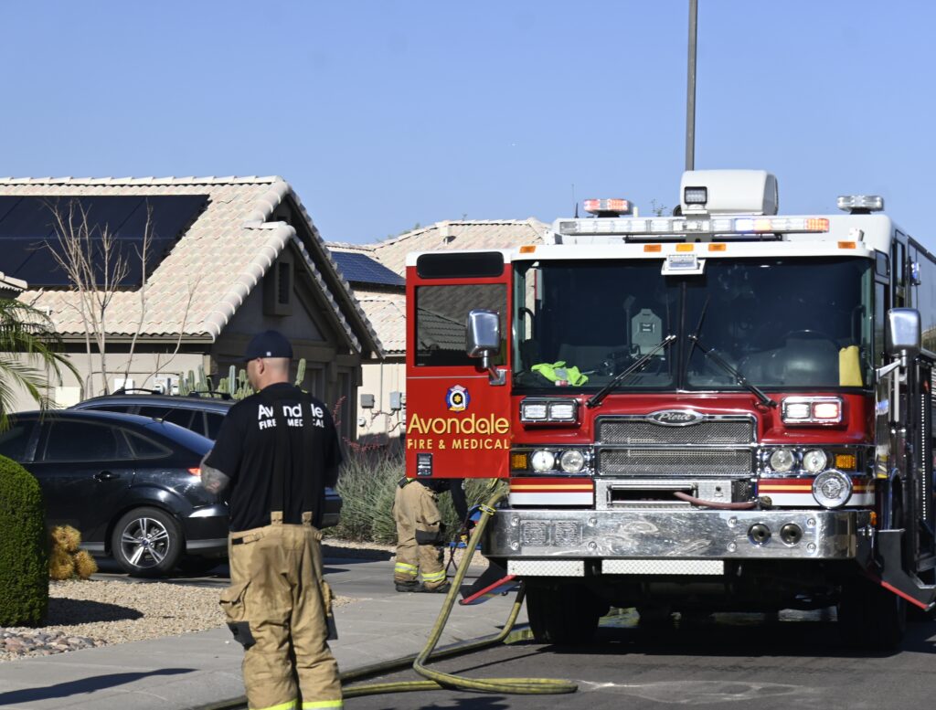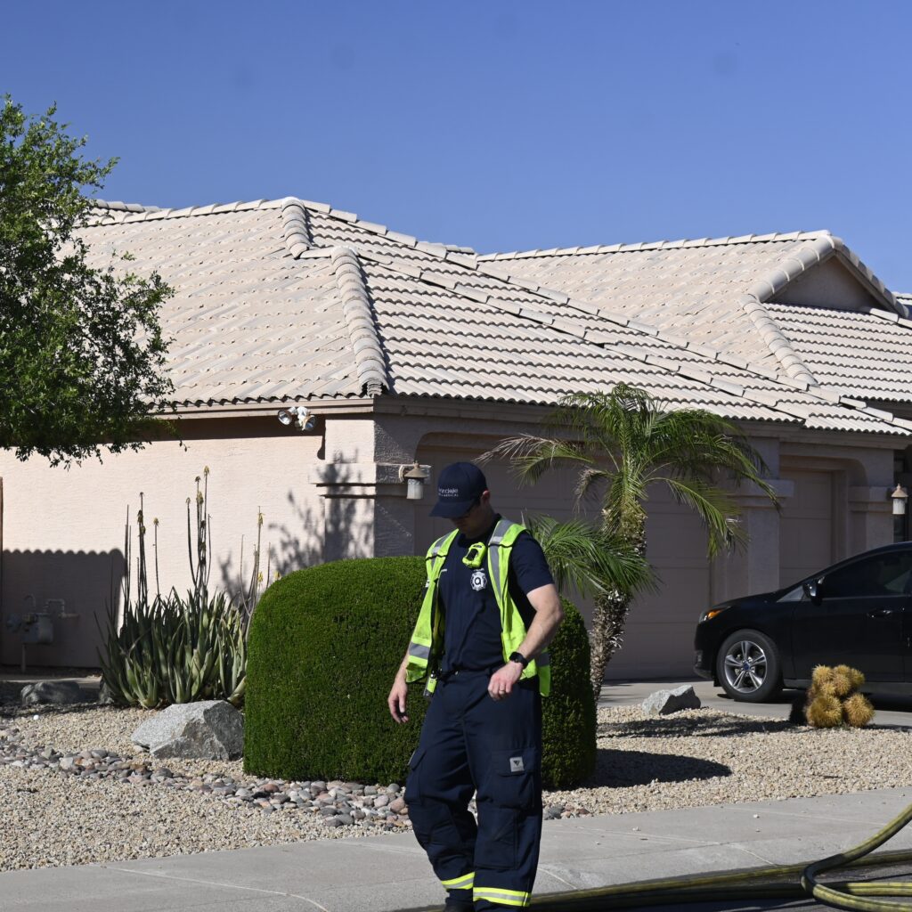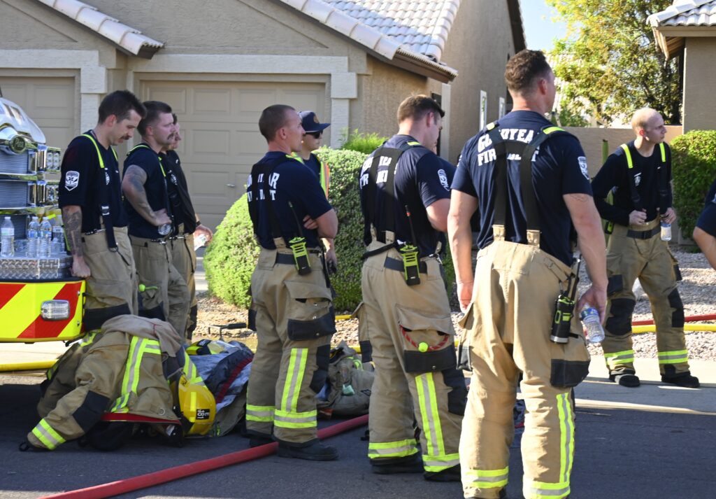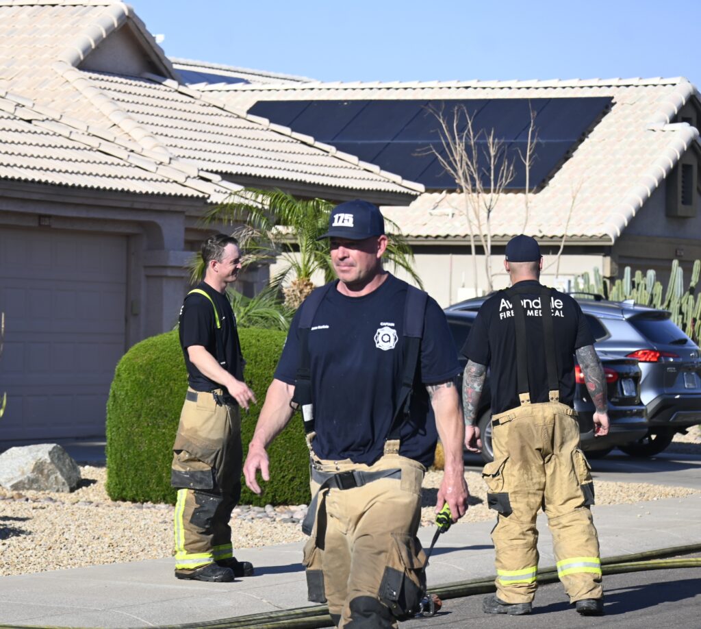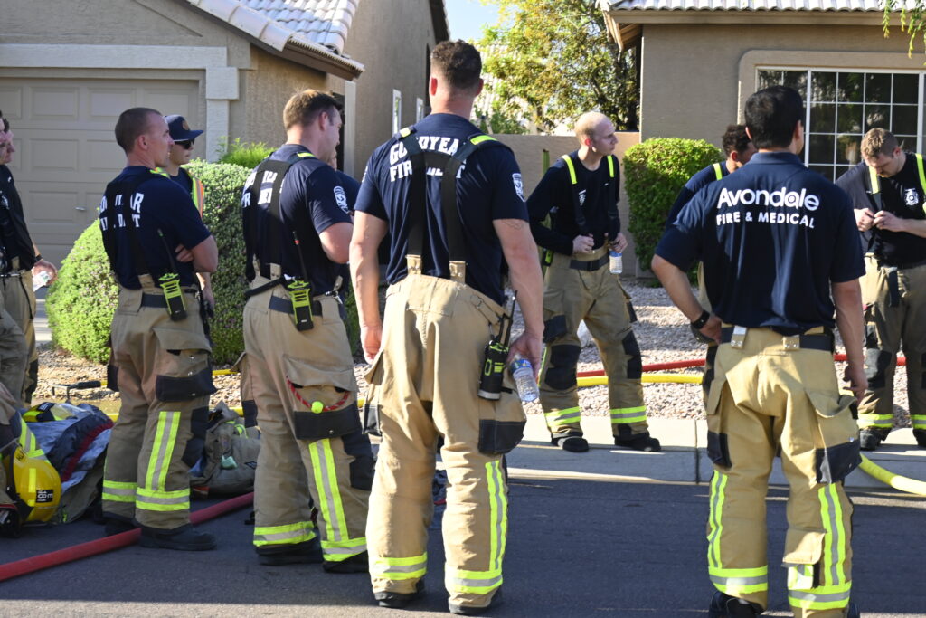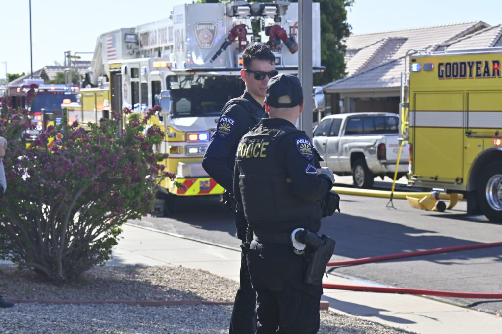 4/22/25 WF Goodyear N 132nd Ave W Wilshire Dr House Fire Started In The Rear Heavy Fire Ext Into The Attic Partial Roof Collapse Unit’s Went Defensive Brothers And Sisters Did A Nice Job No Ext To The Exps Goodyear Avondale Working