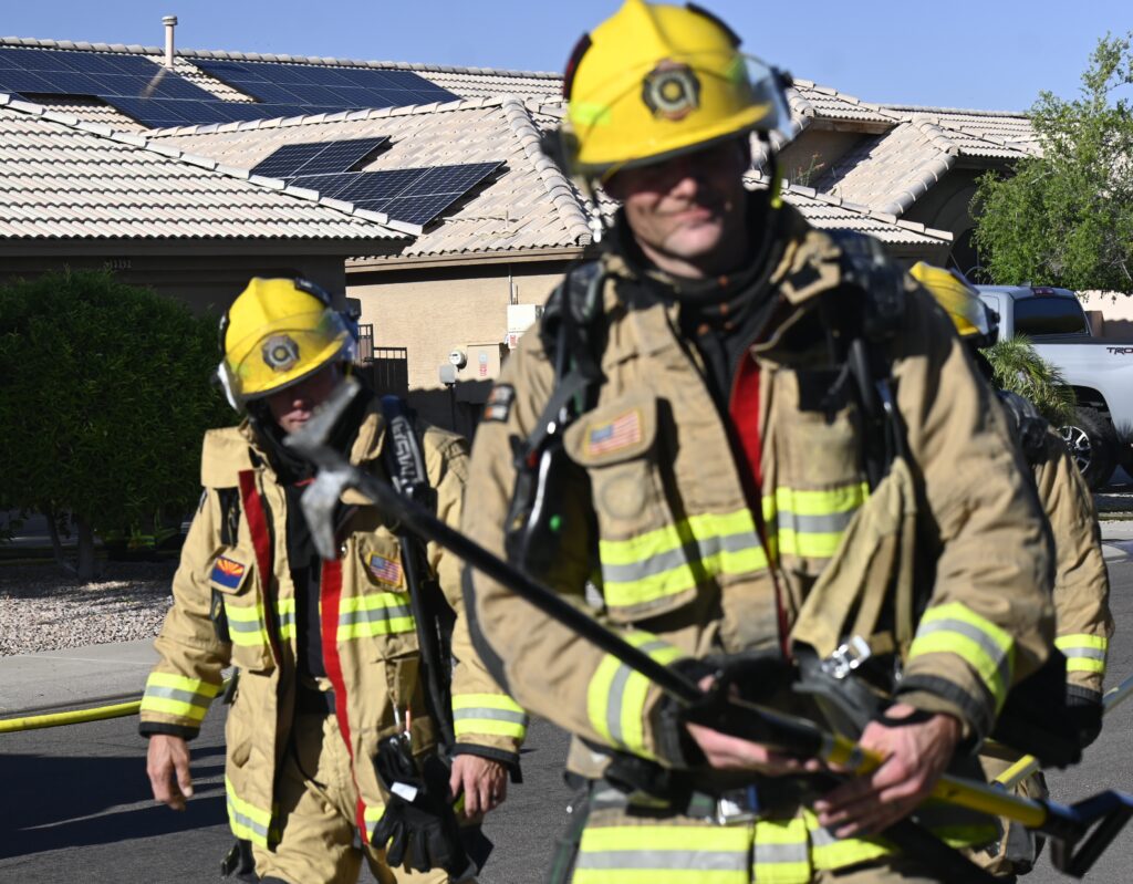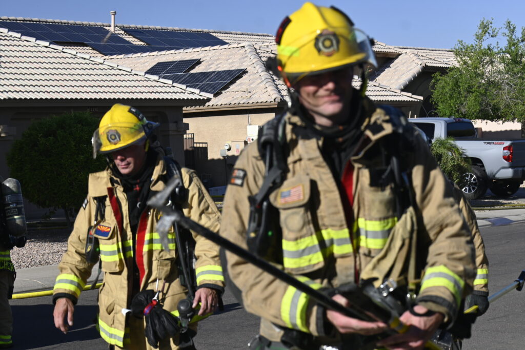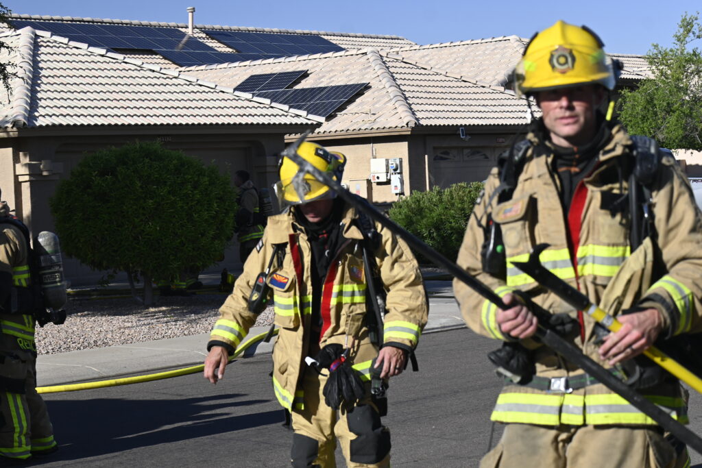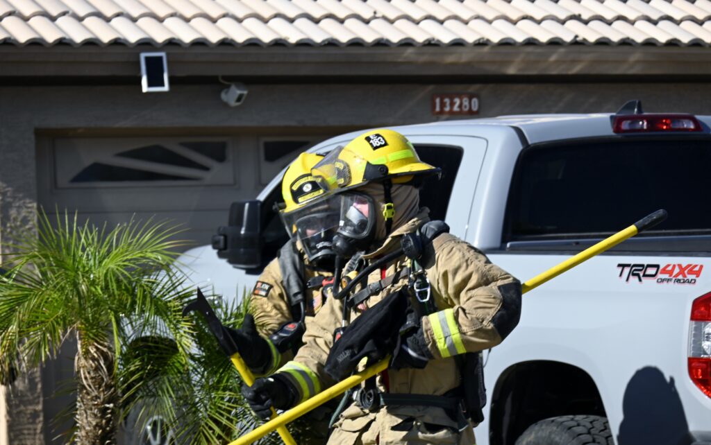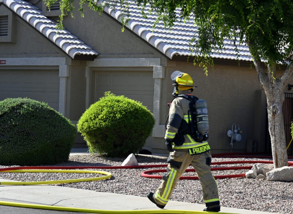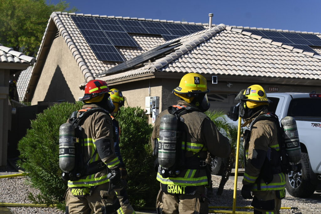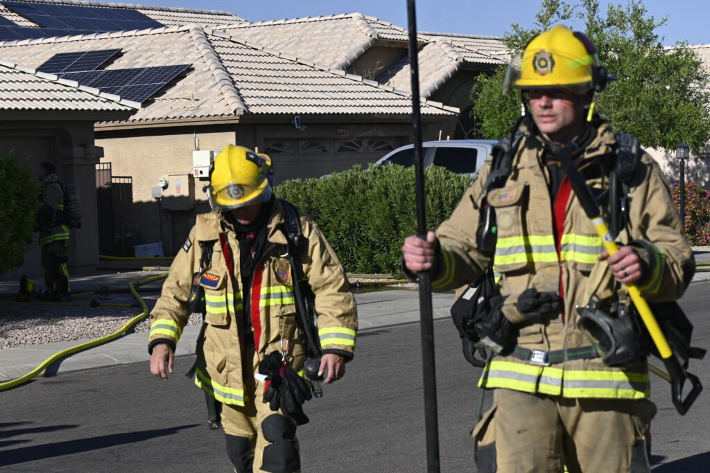 4/22/25 WF Goodyear N 132nd Ave W Wilshire Dr House Fire Started In The Rear Heavy Fire Ext Into The Attic Partial Roof Collapse Unit’s Went Defensive Brothers And Sisters Did A Nice Job No Ext To The Exps Goodyear Avondale Working