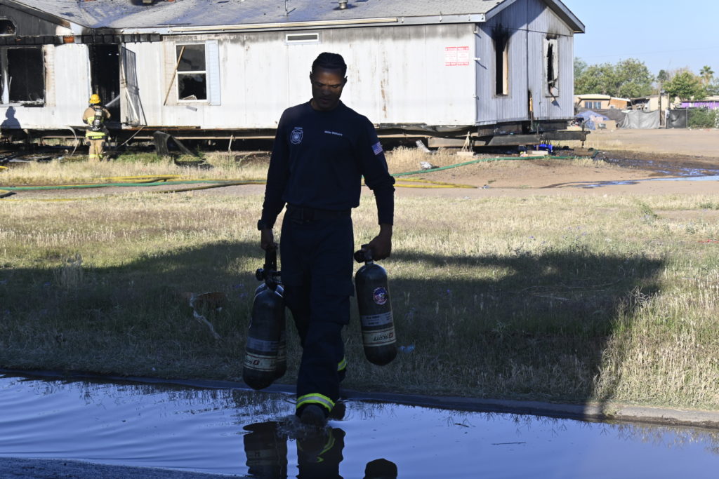 4/28/24 WF Phoenix N 40th Ave W Van Buren St Vacant Mobile Home Numerous Fires Unit’s Went Defensive Partial Collapse No Members Hurt Phoenix Working