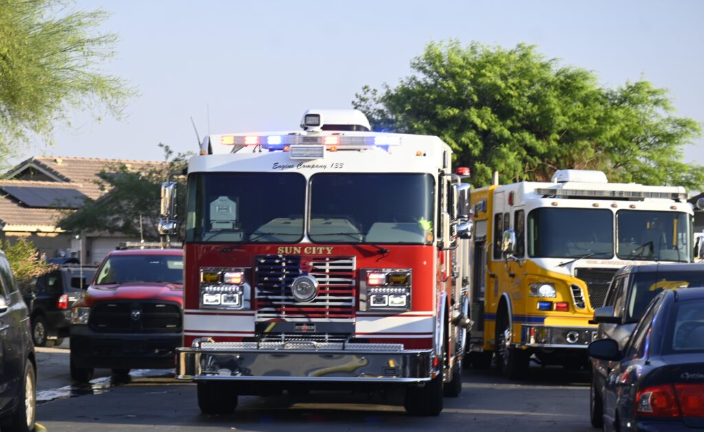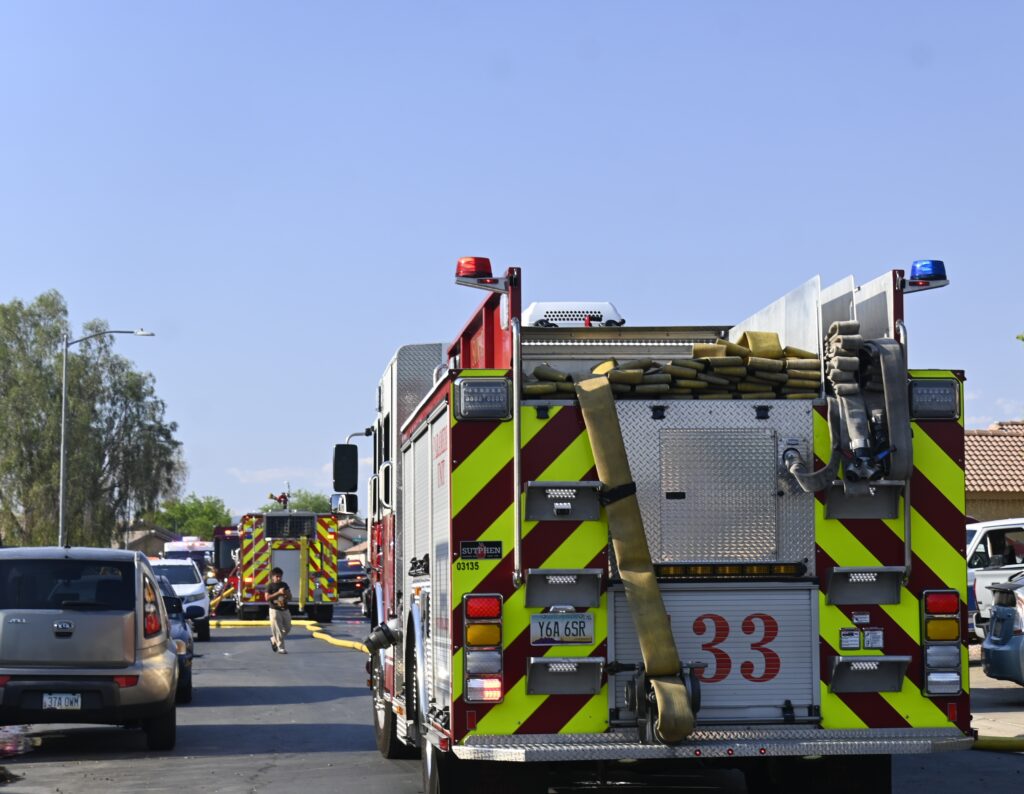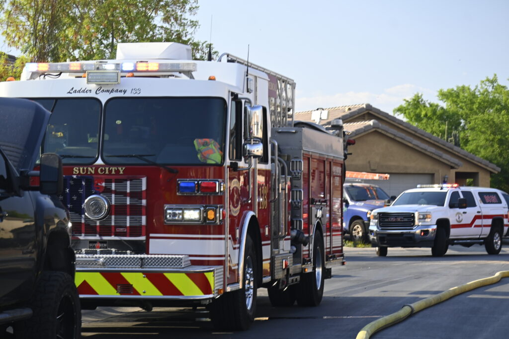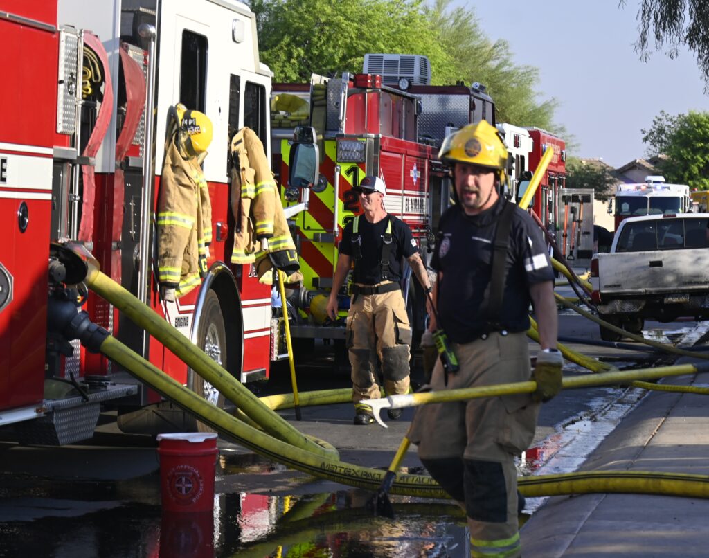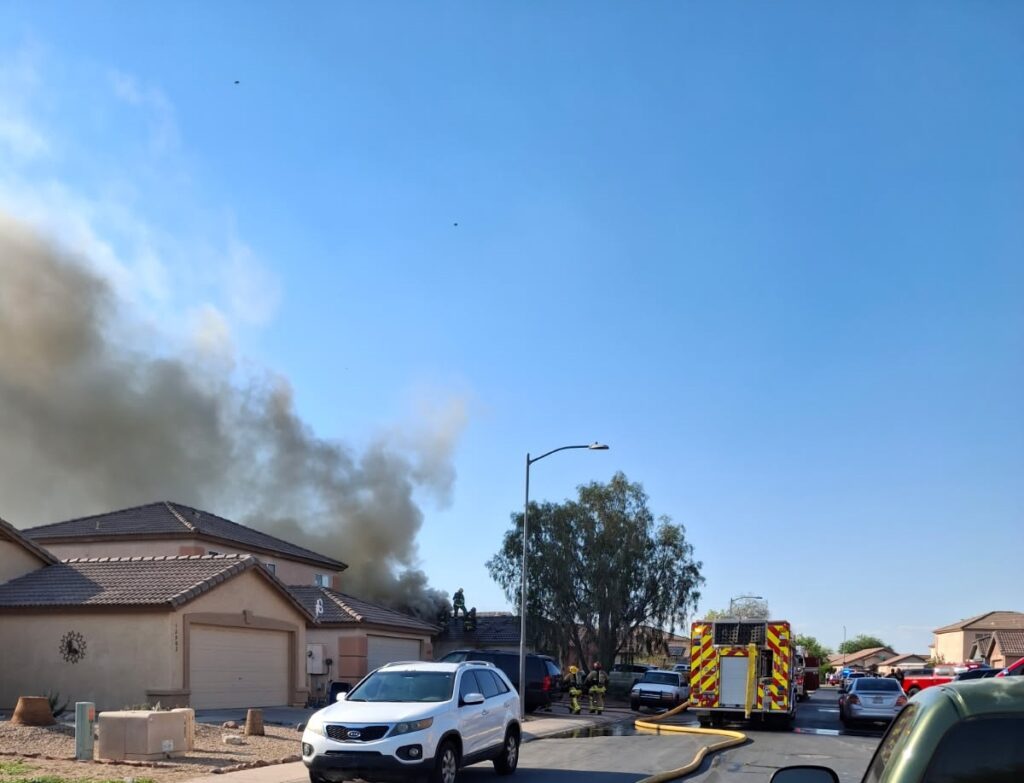 5/10/25 WF EL Mirage N 127th Dr W Corrine Dr House Fire Started In The Rear Yard Heavy Ext Into The House And Attic Units When Deff El Mirage Surprise Suncity Glendale Working