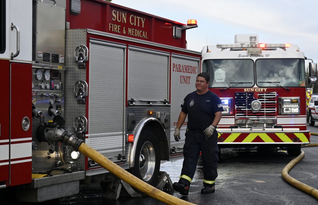 5/12/25 WF Suncity Springfield Dr Turquiose Hills Dr House Fire Started In The Garage Ext To The Attic Brothers And Sisters Did A Nice Job Cutting Off Further Ext Suncity Peoria Glendale Working