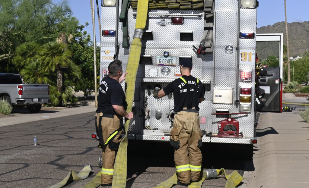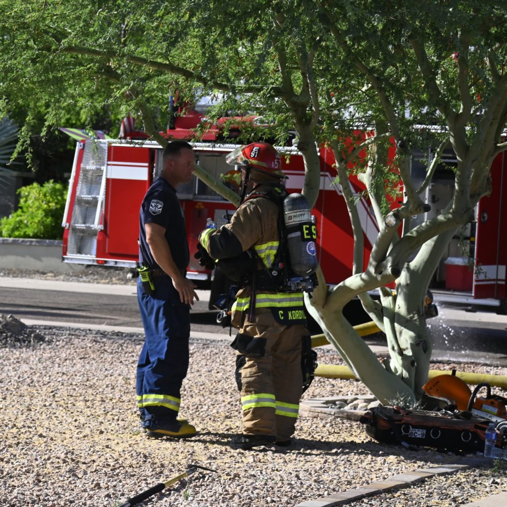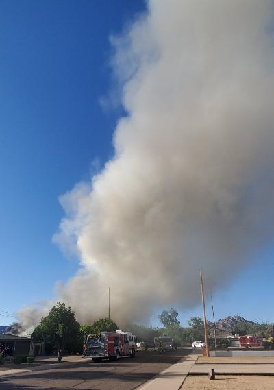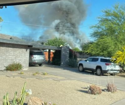 5/27/23 WF Phoenix House Fire Started In The Rear Yard Heavy Ext Into The House And Attic N 29th Pl E Turquoise Dr Phoenix Scottsdale Working