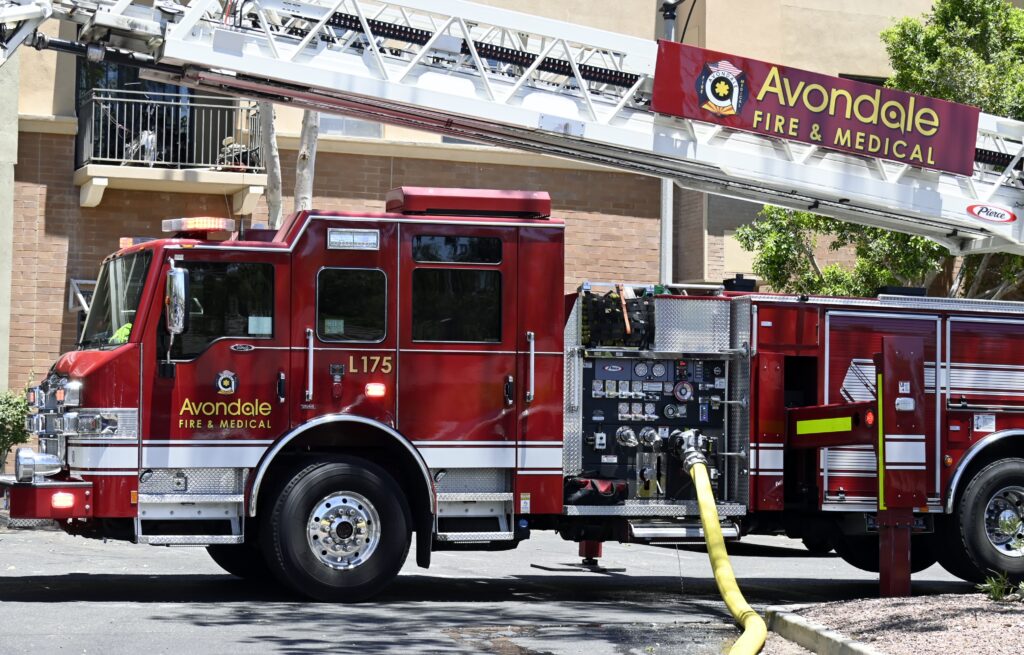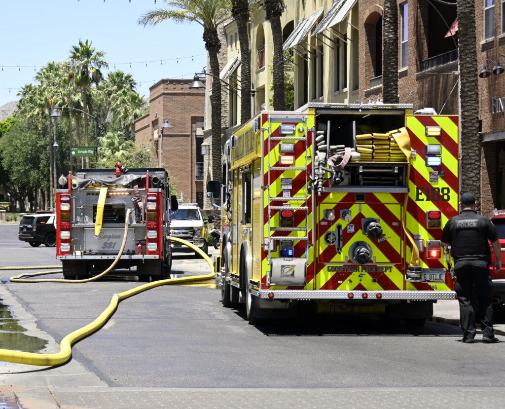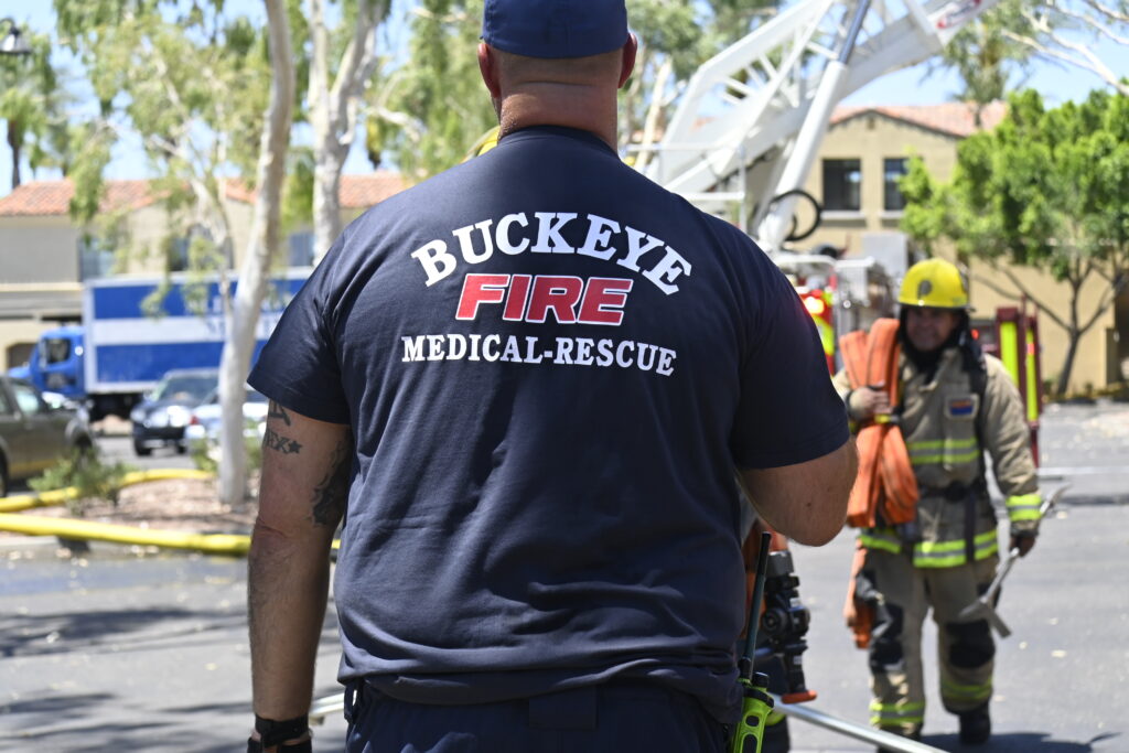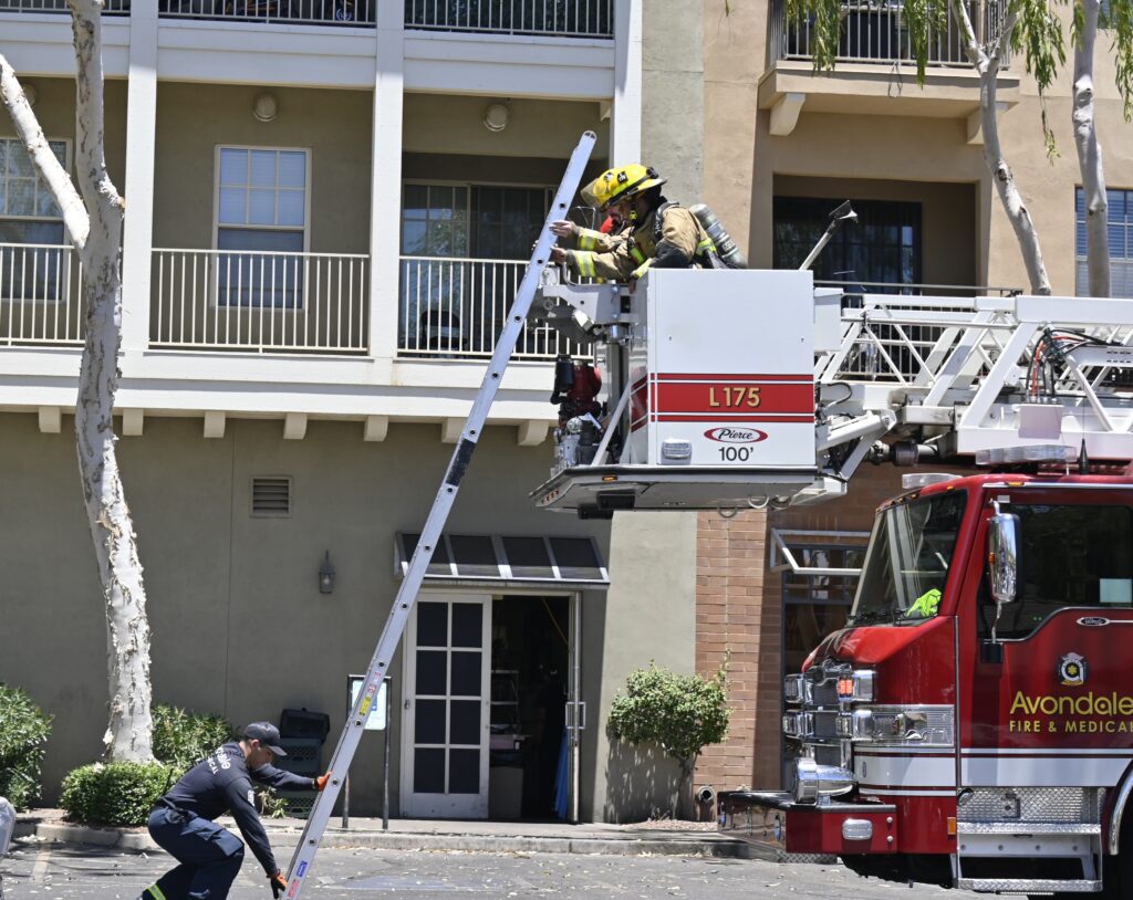 6/01/24 First Alarm Buckeye Main St Verrado Way Three Story Comm On The First Second And Third Fls Apts Fire Contained To A Air Handle On The Roof Buckeye Goodyear Avondale AzFireMed Tolleson Phoenix Working