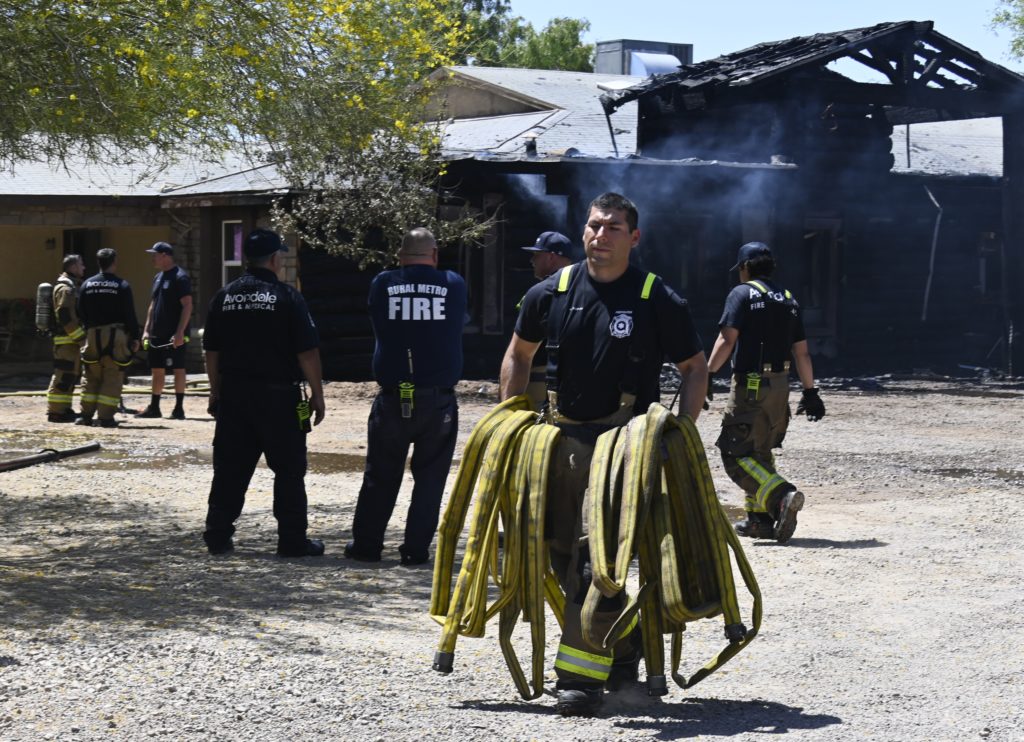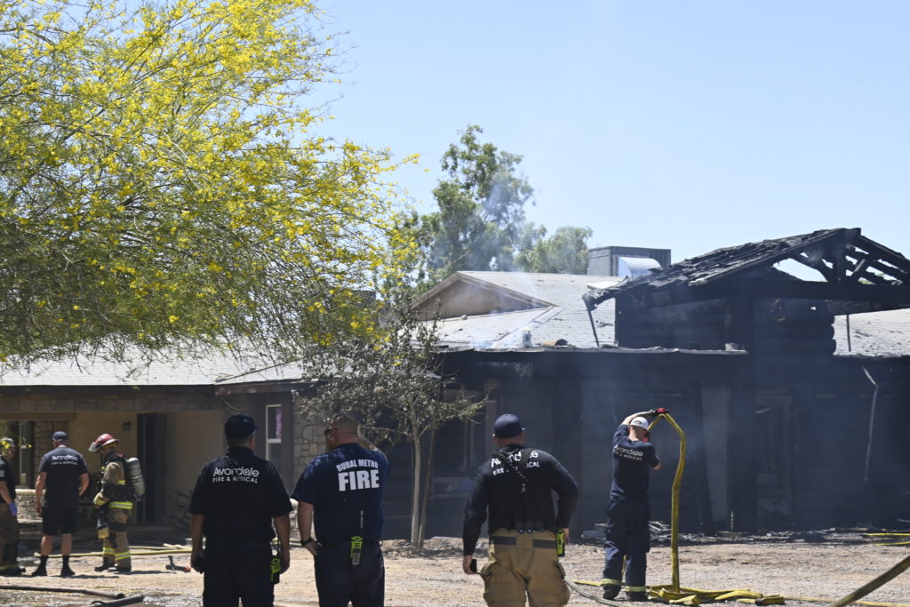 6/02/23 WF County House Fire Started In A Tree Heavy Ext Into The House 107th Ave Miami Ave Avondale Tolleson Goodyear Phoenix Rural Metro Working