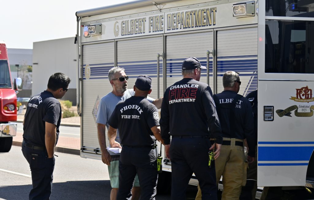 7/31/23 Second Alarm /Haz-Mat Response Chandler N 56th St W Oakland St Comm Bld Fire Minor Explosion Chandler AZFireMed Gilbert Guadalupe Tempe Mesa Phoenix Working
