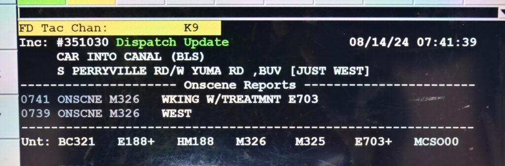 8/14/24 buckeye 962/ Car Into the Canal W Yuma Rd S Perryville Rd Goodyear Buckeye AzFire Working